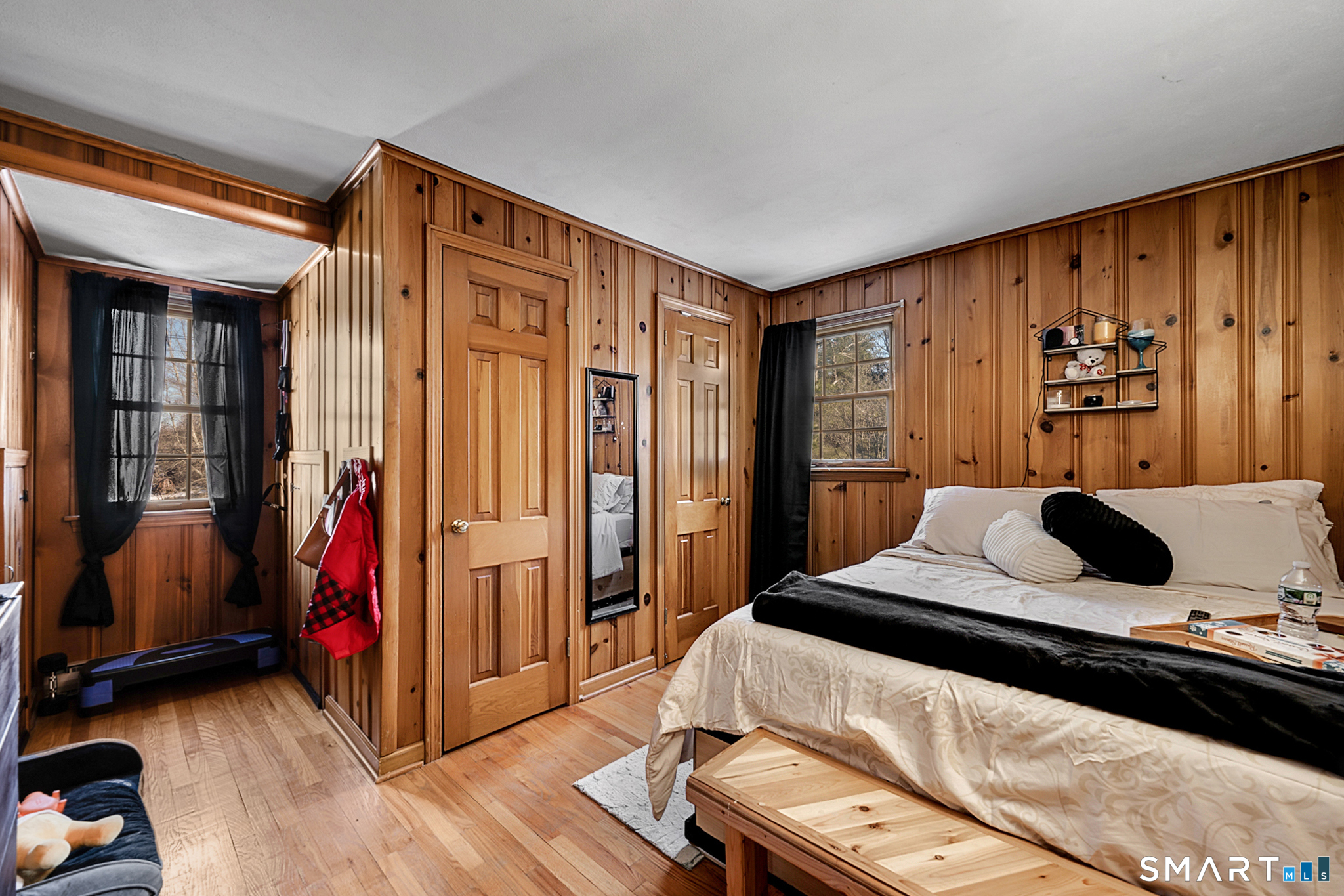 This beautiful Cape style home offers 3 bedrooms and 2 full bathrooms with flexible living space throughout. The main level features a spacious eat-in kitchen with built-in cabinetry and a wood-burning fireplace, perfect for everyday living and entertaining. A full bathroom and a versatile additional room ideal for an office, dining room, or guest space complete the first floor and is currently used as a fourth bedroom. Upstairs, all bedrooms offer ample closet space, including two walk-in closets in the primary bedroom. Hardwood floors and warm wood accents enhance the inviting living room. The fully finished basement, completed in 2023, provides additional living or recreational space and includes a mini-split system and an extra wood-burning fireplace for year round comfort. An extended two-car garage with a walk-up loft offers excellent storage. Solar panels installed in 2023 add energy efficiency. Set on 2.7 acres near Burr Pond, Highland Lake, and West Hill Lake, this property offers both privacy and convenience.storage. Throughout the home, rich wood finishes create a cozy and timeless ambiance. The spacious living room is enhanced by hardwood flooring, offering an open and comfortable space for gathering and relaxing.