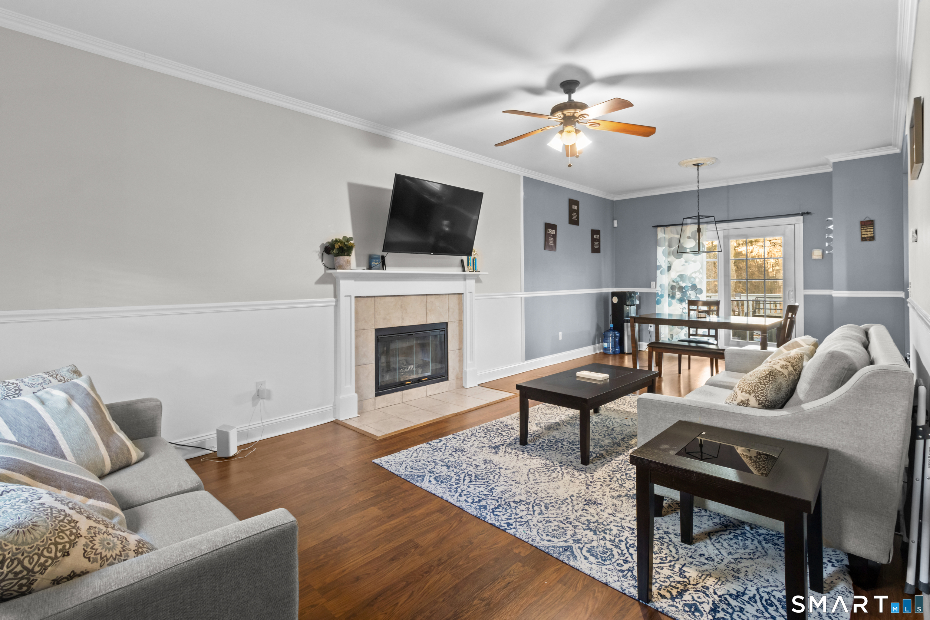 Located in the desirable PUD community of Highland Woods, 19 Highwood Circle in Colchester is a well-maintained Colonial-style home offering over 1,500 square feet of livable space and a flexible, move-in-ready layout. This 3-bedroom, 2.5-bath residence features multiple bonus areas, allowing the home to easily function as a 4-bedroom to suit a variety of living needs. The main level is highlighted by nine-foot ceilings throughout the living, dining, kitchen, and powder rooms, complemented by crown and chair rail molding that add timeless character. Sliding doors from the dining area led to a deck overlooking a large, flat, fully fenced backyard and patio-ideal for outdoor entertaining, play, and everyday enjoyment. The upper level includes three carpeted bedrooms, two full baths, and a spacious 200+ square foot bonus room located above the two-car garage. The primary bedroom suite offers two closets, including a walk-in, and a full bath with shower, while the additional bedrooms feature generously sized closets. The finished lower level provides additional heated living space with decorative molding, built-in desks, and wall-to-wall carpeting, making it well-suited for a family room, home office, or guest area.Additional features include a newer hot water heater installed within the past year, a 2020 air conditioning system and condenser, an oil-fired furnace, central vacuum, a 100-amp electrical panel, a wired alarm system, and a portable generator that conveys with