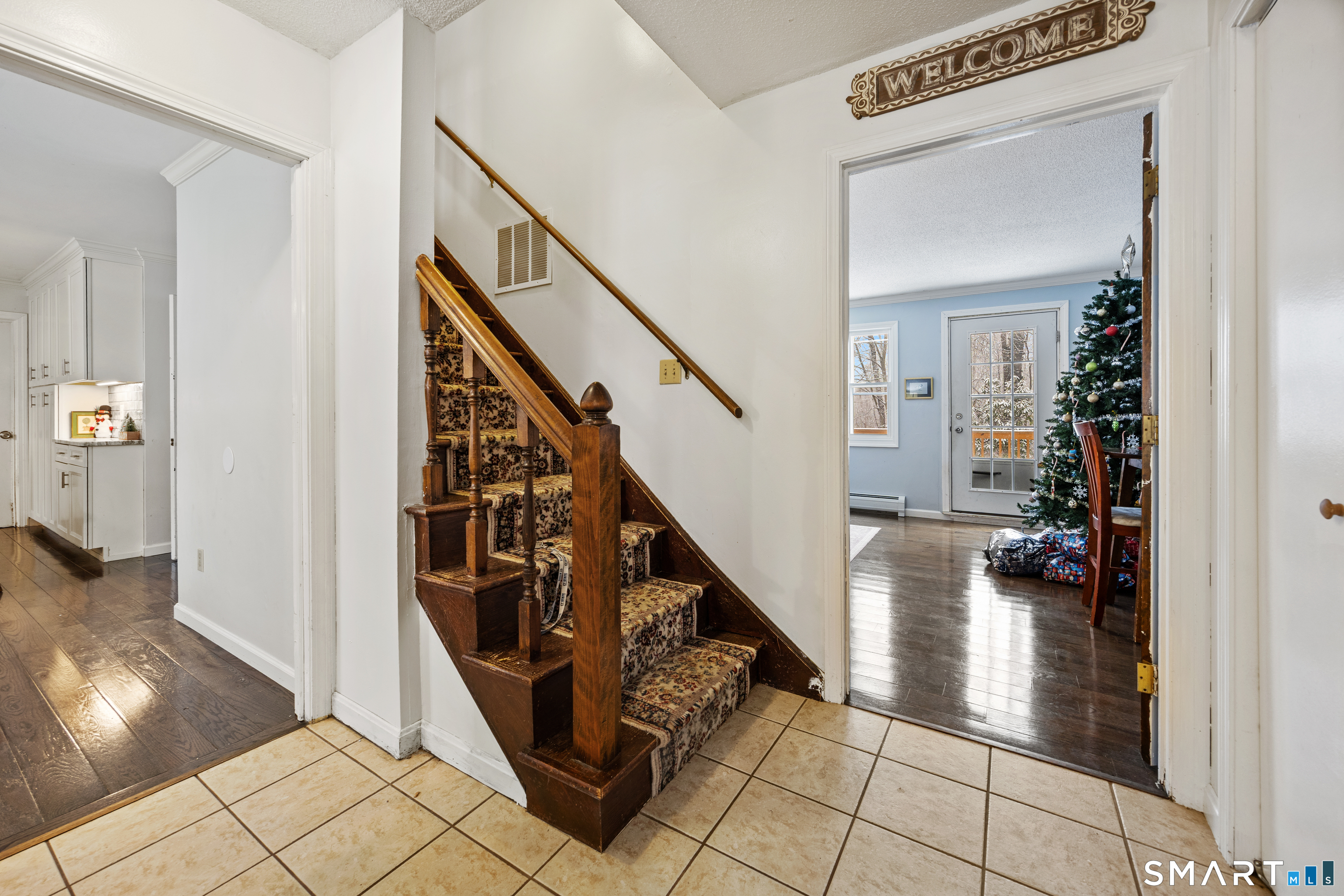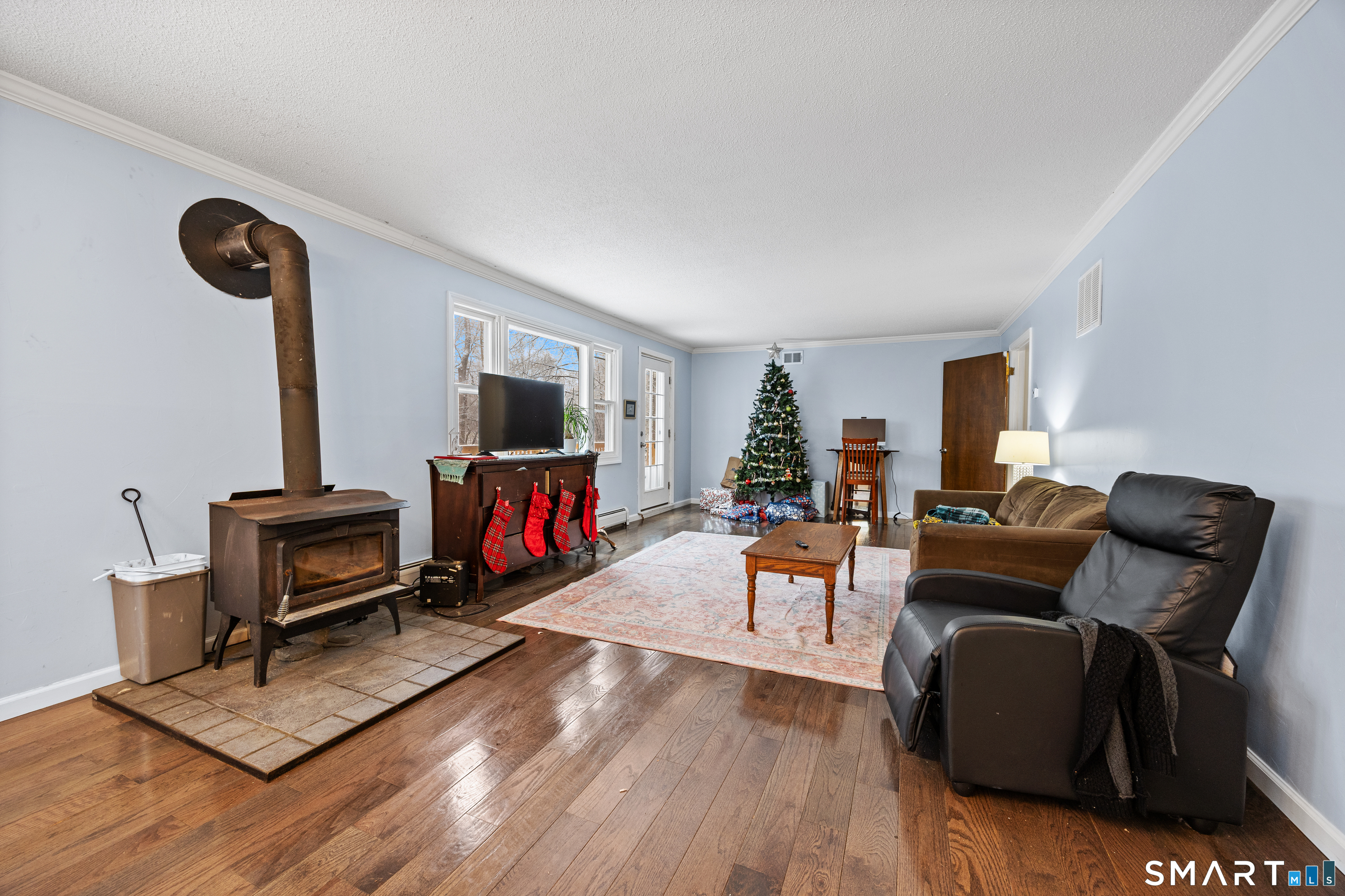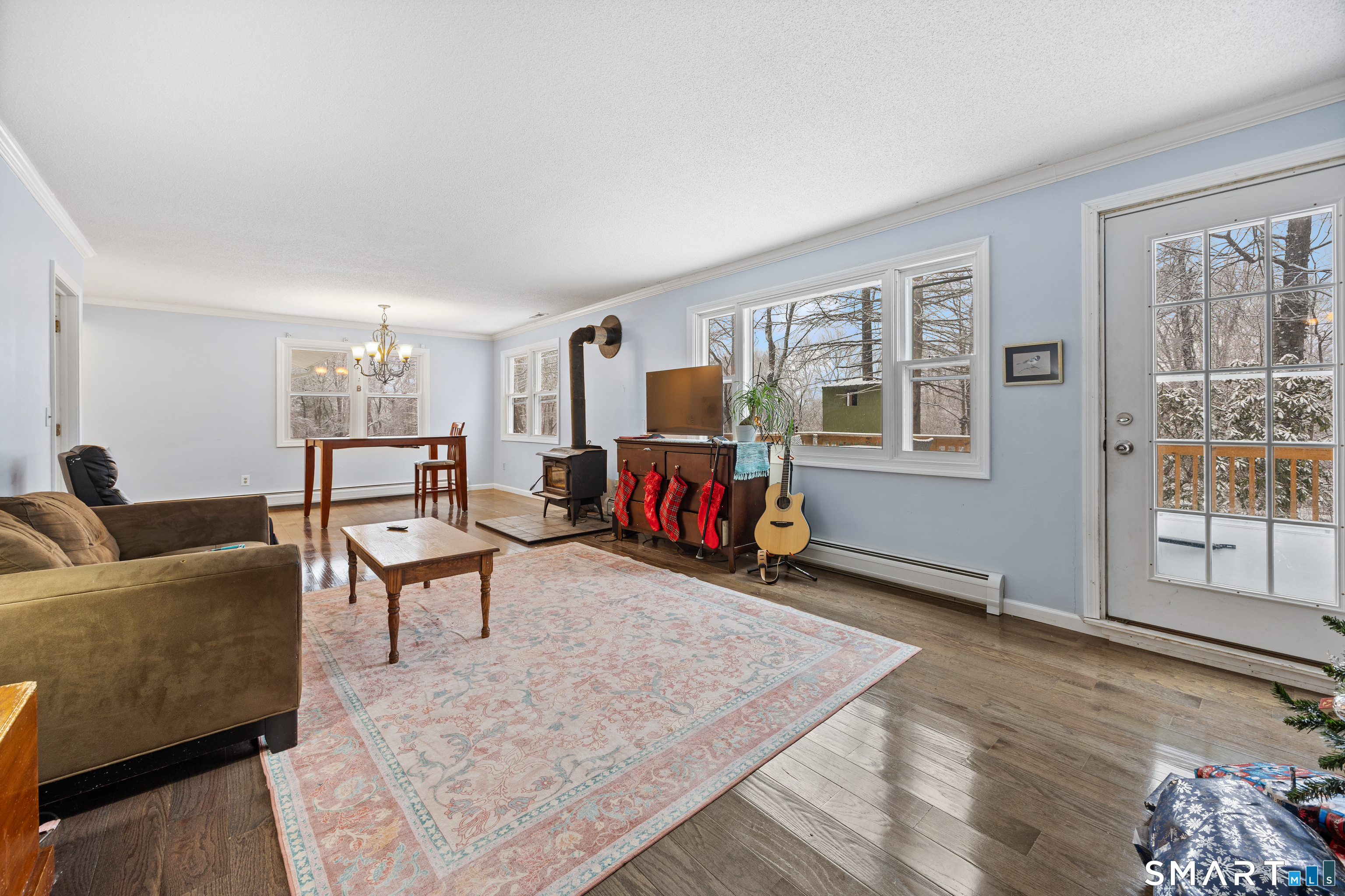 This four-bedroom Colonial is tucked away at the end of a quiet cul-de-sac on a private lot with stone walls and nature fields. The home features a beautifully remodeled kitchen, a spacious living room with a fireplace, and a comfortable family room with a wood stove-perfect for cozy evenings. Enjoy the peace and privacy of the setting while still having plenty of space for everyday living and entertaining.Two car garage. Recent updates include new septic tank (2025), boiler & water heater (2024) renovated kitchen and hardwood floors in main level (2023), roof & rear (2020) Large unfinished basement offers plenty of storage and walk out to rear yard. Seller is motivated! Cosmetic updates and personal touches await for the new homeowner in this private cul de sac situated close to town but offers that country setting.