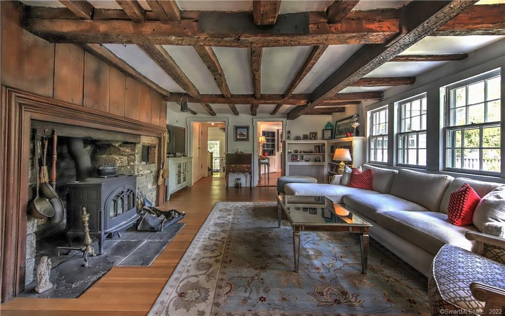 Historic charm meets refined living in this award-winning Old Hill residence. Charming, sophisticated, and rich with history, this exceptional 4-5 BR vintage residence is one of Westport's most notable homes, ideally situated in the prestigious Old Hill area. Known as the David Judah House, the property has been painstakingly and lovingly preserved and restored and is the recipient of the Helen Muller Award for Outstanding Property in a Local Historic District. .....A unique and flexible floor plan offers gracious, well-scaled living spaces throughout. Highlights include a living room with beamed ceiling, a banquet-sized dining room with built-ins, and a beautifully appointed kitchen with high-end appliances, Carrera marble counters, breakfast bar, and sunlit breakfast nook with French doors opening to a deck overlooking a private backyard, in addition to two patios. An adjoining lounge with wet bar is ideal for entertaining, while the expansive great room/studio provides an additional gathering space. The main-level en-suite primary bedroom features a fireplace, dressing area, abundant closets, and a second fireplace. Three bedrooms are located upstairs, with an additional lower-level ensuite BR/ office perfect for a guest suite or au pair. 3 car garage with EV charger included. Close to town, train, shopping, and beaches. Pets considered on a case-by-case basis. Credit check and references required. Rare opportunity to lease a home of true architectural distinction.
