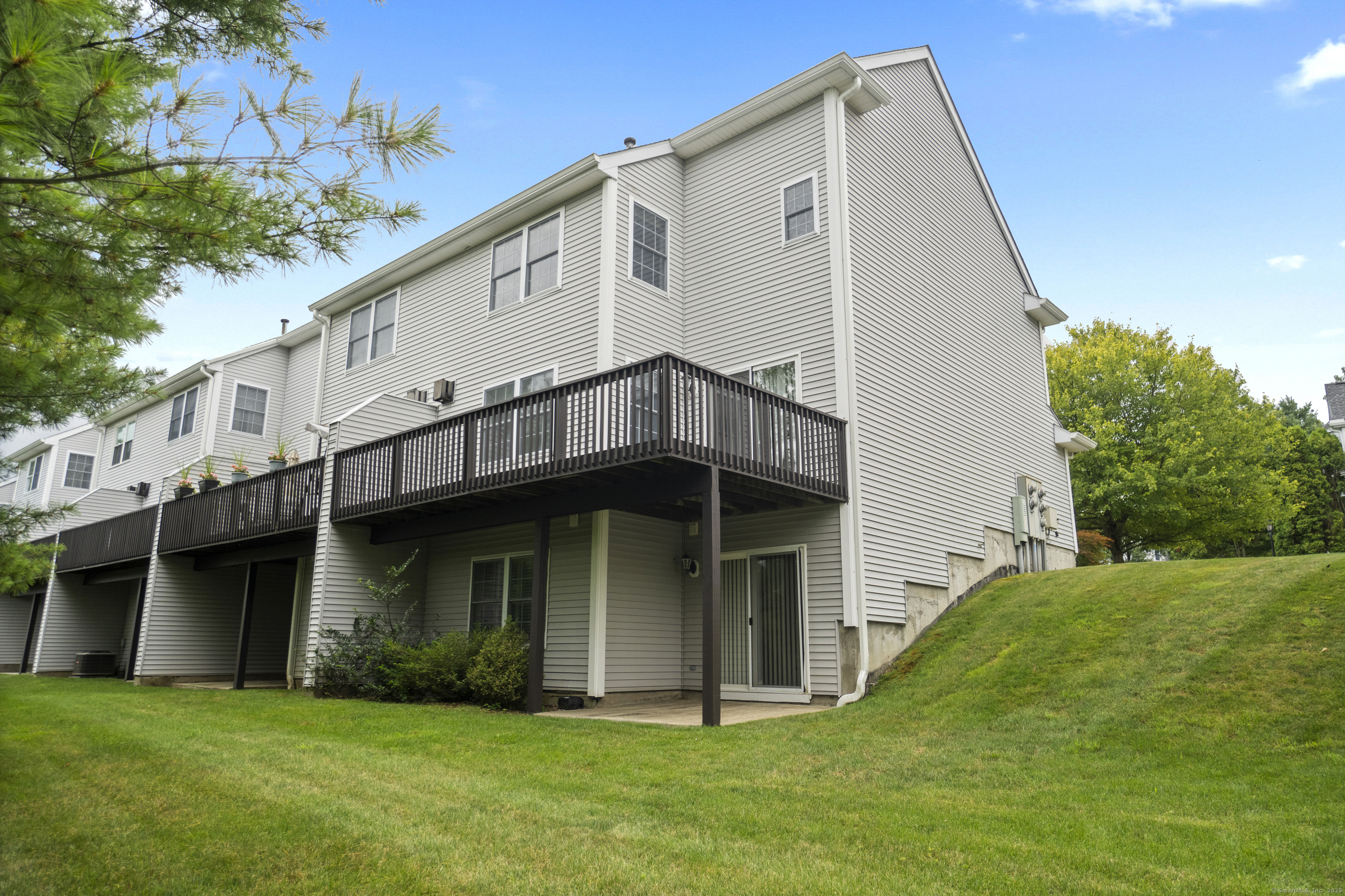 Tucked away on a quiet cul-de-sac in the desirable Sterling Woods community, this beautifully maintained 2-bedroom, 2.5-bath end unit offers the perfect blend of privacy, natural light, and modern comfort. Step inside to find hardwood floors throughout, creating a warm, elegant atmosphere. The open-concept main level features a bright and airy living and dining area anchored by a cozy fireplace. From the main level, enjoy direct walk-out access to a private deck-perfect for morning coffee, grilling, or outdoor entertaining. The home also features a spacious eat-in kitchen with modern appliances and ample cabinetry, ideal for casual meals and everyday living. A convenient half bath and in-unit laundry closet complete the first floor. Upstairs, you'll find two generously sized bedrooms, each with its own en-suite bathroom and plenty of closet space-ideal for guests, family, or a home office. The finished walk-out basement offers a versatile additional living area, ideal for a family room, home gym, or media space. It opens directly to a lower-level patio and green space, extending your living area into the outdoors. Enjoy the benefits of cul-de-sac living in a vibrant, well maintained neighborhood-just minutes from shopping, dining, and major commuter routes. This turn-key end unit combines space, style, and convenience in one of the area's most sought-after communities.