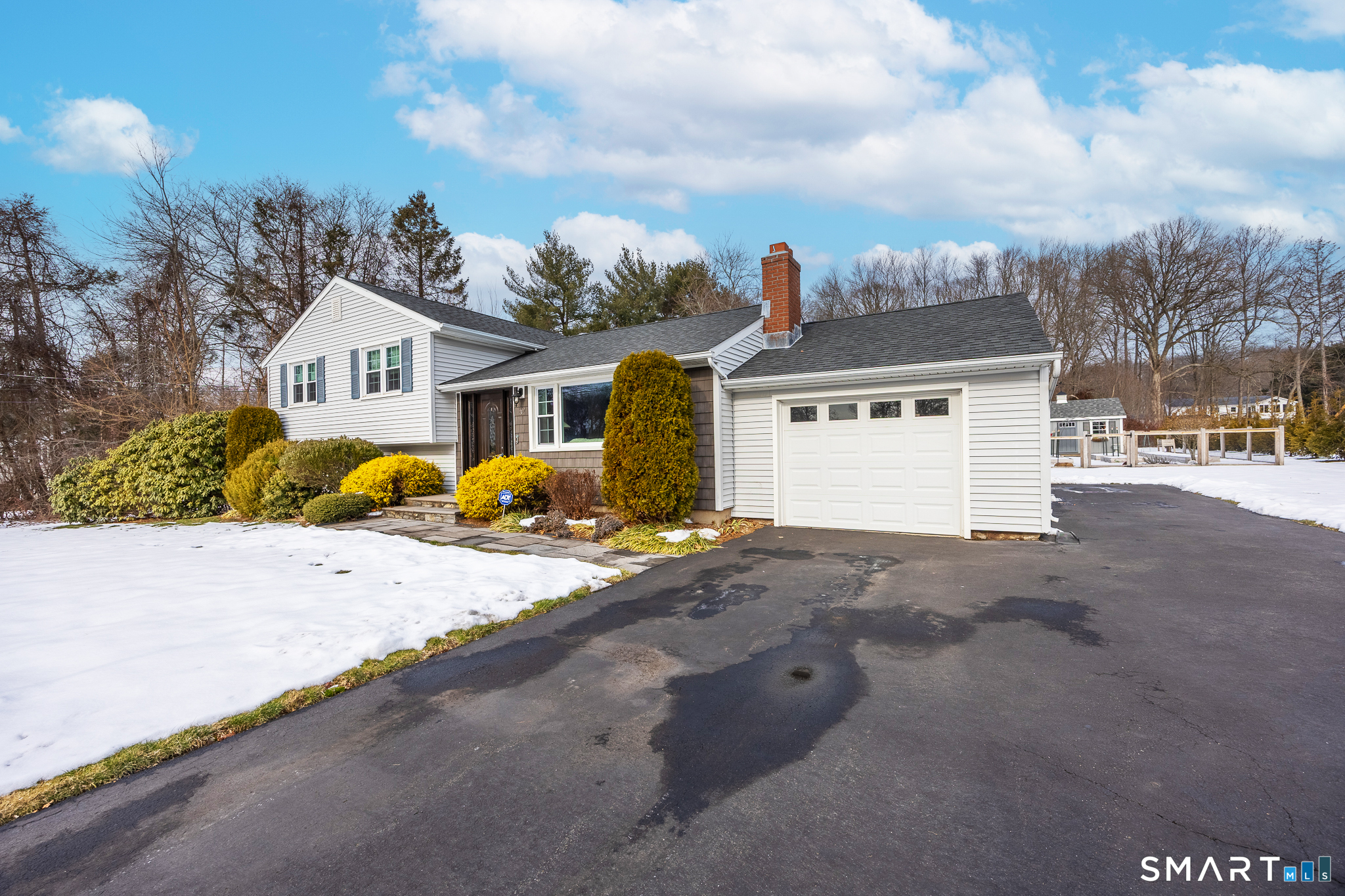 From the moment you enter you'll feel the warmth and comfort that makes this 3 Bedroom, 2 Bath Split-level house a true home! The inviting Living Room is bright and spacious with a wood-burning fireplace for added comfort. The Kitchen is well appointed with tile flooring and back splash, quartz counters, newer stainless appliances and solar skylight. The Dining Room is a perfect spot for family dinners and leads to a spacious 3 season porch. Additional living space is found in the lower level of the home with a Family Room, Office, Laundry Room and an updated full Bath. The 3 Bedrooms and updated full hall Bath are located on the upper level. The main level and upper level have gleaming, recently refinished hardwood flooring. The nicely landscaped level yard features a deck off the 3 season porch for ease in grilling and a stone patio with pergola, a perfect spot to enjoy your summer days. A large area with cedar raised garden beds surrounded by cedar fencing attached to an ample shed will be the delight of any gardener. This home impresses both in the interior and in the beautiful outdoor space. Newer roof, windows, HW heater, electrical panel, oil tank, CA, whole house 17kW generator and motorized window shades and solar skylight. Don't miss your chance to see all this home has to offer! Move right in and enjoy your first Spring and Summer in your new home!