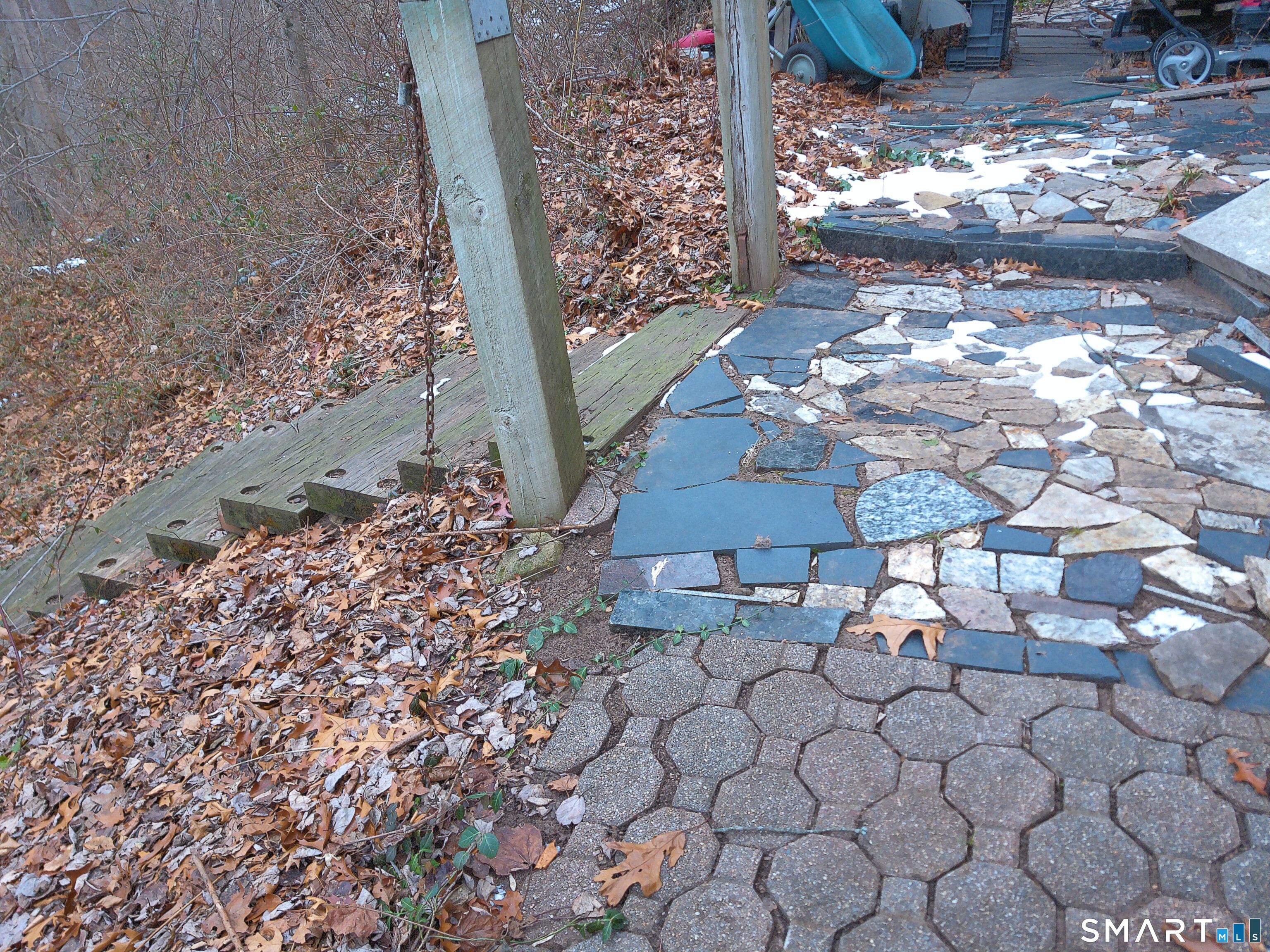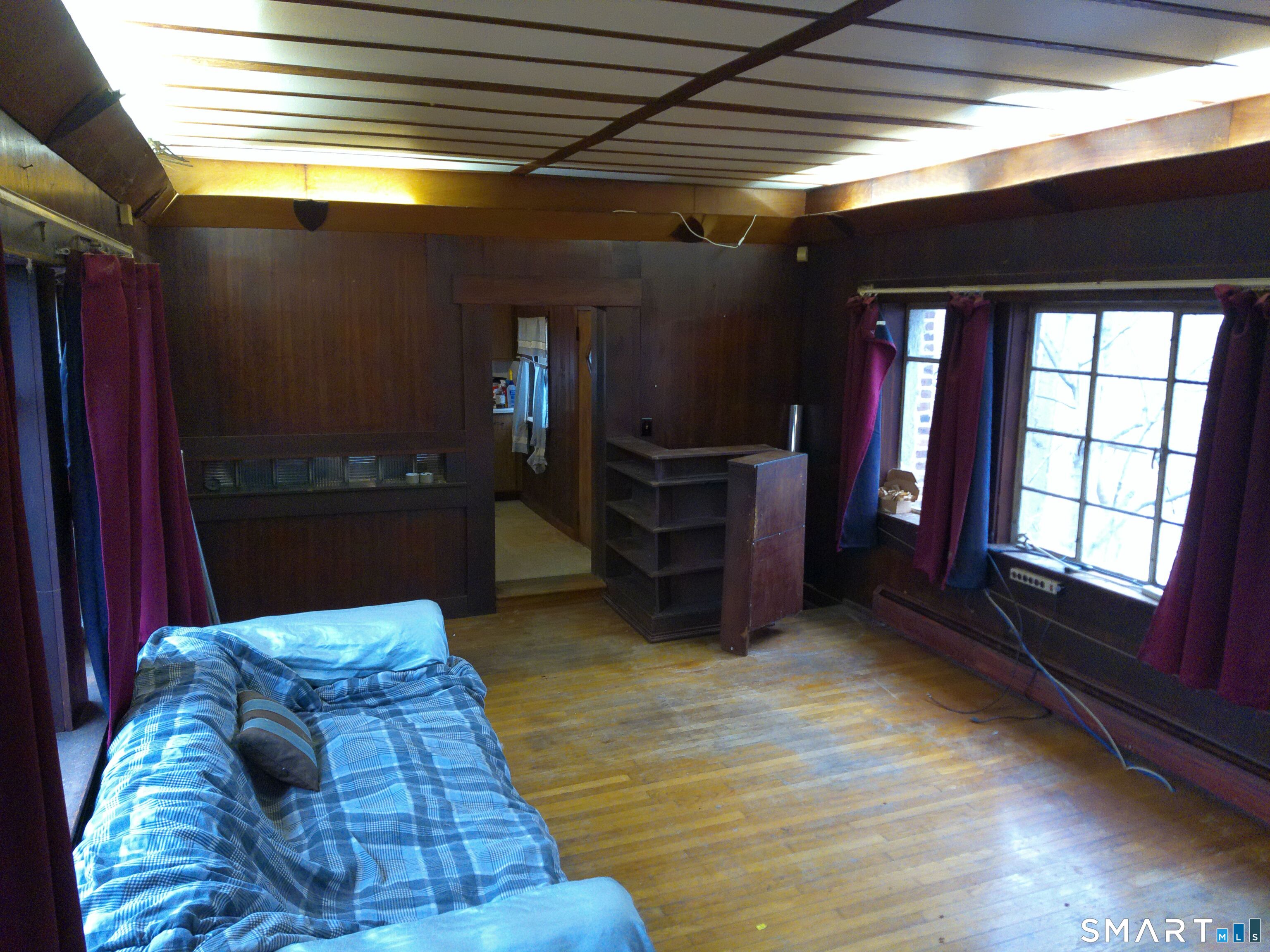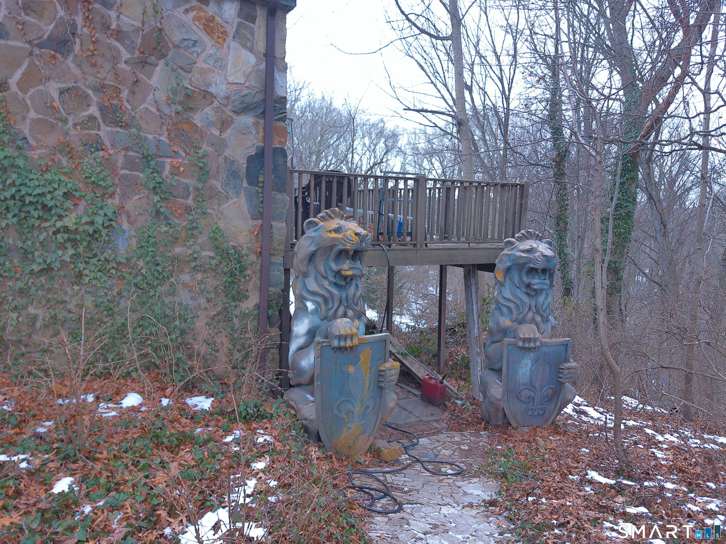 Double Play! Mid century modern stone ranch ready for your creative vision to make this your own. Great bones, solid oak hardwood floors throughout. If you're craving something a little bit quirky, you'll fall in love with the up lighting, unique fixtures and movable bookshelf. The lower full daylight level with massive windows offers an opportunity for easy expansion, for additional bedroom, playroom or entertainment hub-you decide. Oversized lot with separate 25' ROW (right of way) access at rear may offer an additional building lot (please verify with zoning) Or meander through your wooded area on stone paths enjoying nature's bounty at home.