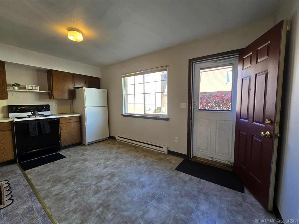 This spacious 2-bedroom townhouse features a bright living room, a convenient half bath, and a kitchen with a breakfast bar for additional seating. The second floor includes two large bedrooms, a full bathroom, upstairs laundry, and ample storage, including an attic with pull-down stairs. Off-street and visitor parking! The property is located near East Mountain Park, Brass Mill Center, various shopping options, and offers easy access to Route 8, I-84 and Route 69. Available immediately. Good credit required. No prior evictions. Small pets may be considered.