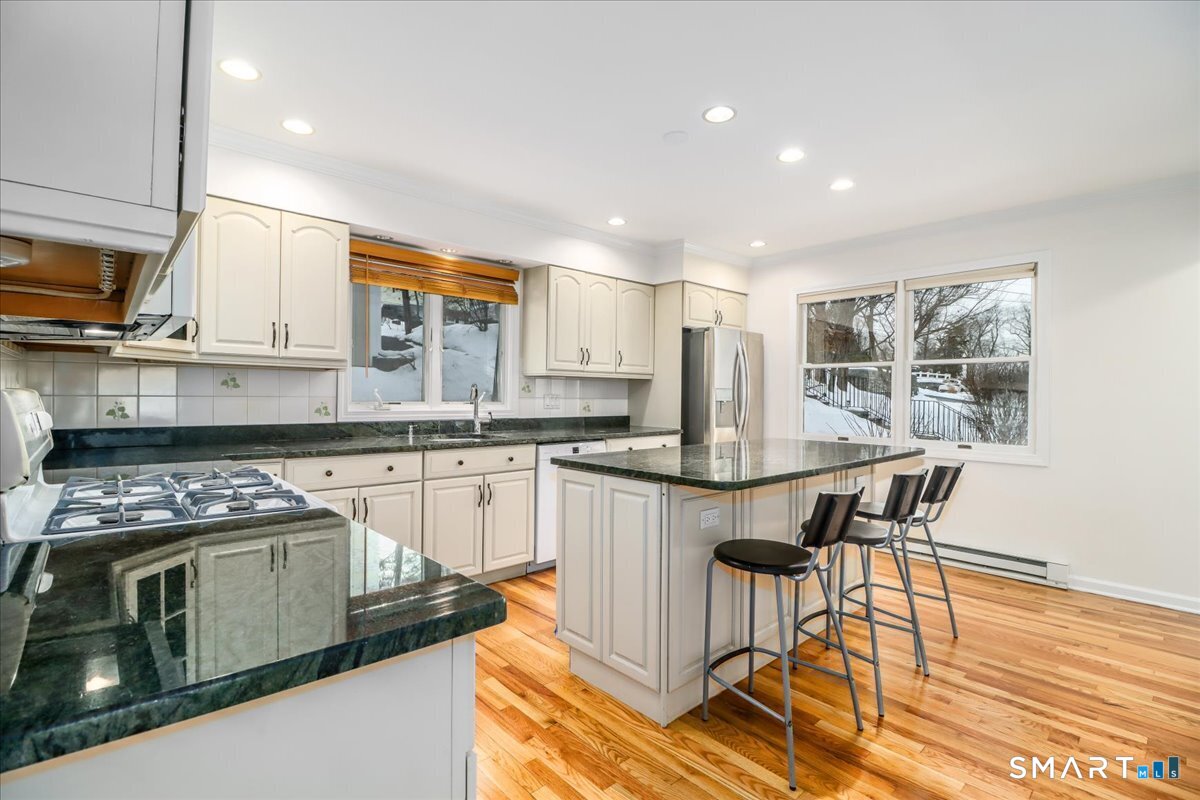 Nestled along the shore of sought after Candlewood Lake, this direct waterfront Contemporary home delivers the ultimate lake living experience! The full-length living room has gleaming hardwood floors, and two sets of sliders that lead to the expansive deck showcasing the wonderful waterfront and loads of natural light. The remodeled kitchen features a center island, ample cabinetry, and an easy flow to the living and dining areas. Offering 3 bedrooms and 2 1/2 baths, this home has the opportunity for the possible addition of a primary bathroom to create an enhanced owner's suite. The finished lower level includes welcoming guest space, perfect for visitors, extended family, or a recreation room with walkout access to the waterfront. A spacious deck, balcony, and patio areas create effortless indoor-outdoor flow for entertaining or relaxing. The expansive, large 2-car garage is ideal for vehicles and lake equipment and provides exciting expansion possibilities for added parking space or a workshop. A private dock makes boating, swimming, and sunset cruises part of your everyday routine. Whether as a year-round residence or a weekend retreat, this property offers a rare chance to enjoy Candlewood Lake at its best!