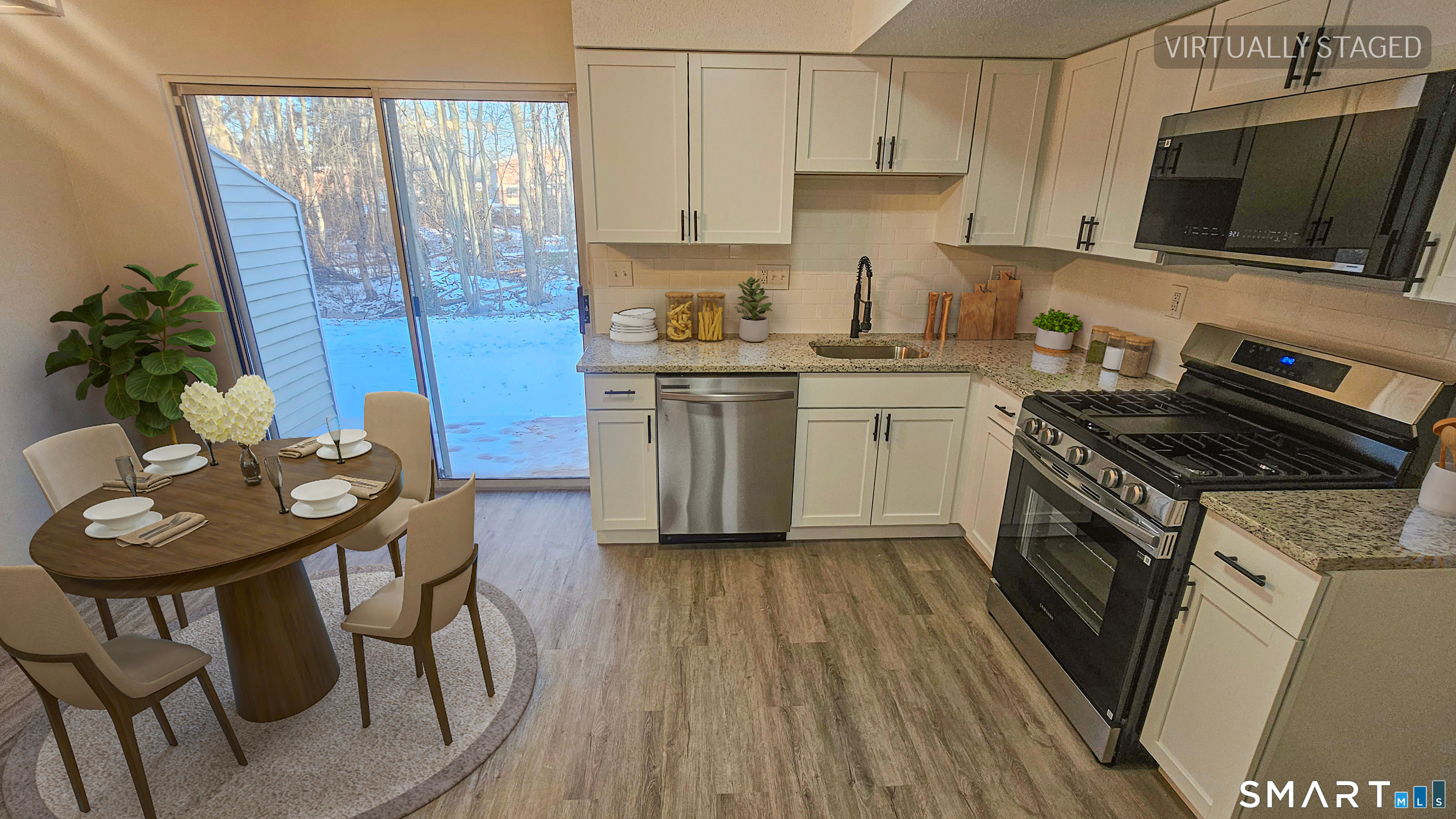 Move in ready townhouse style condo in a desirable East Haven location. This 2 bedroom, 1.1 bath unit has been tastefully updated throughout, featuring brand-new luxury vinyl plank flooring, fresh paint, and central air. The updated kitchen offers classic white shaker cabinets, granite countertops, stainless steel appliances, and a slider leading to a private rear patio. Ideal for outdoor relaxation. Bathrooms have been refreshed. New tankless water heater adds modern efficiency. Set within a well maintained, intimate complex of just 16 units, this condo offers low maintenance living in a convenient location. Situated approximately one mile from East Haven Town Beach and close to major highways, shopping, and dining, this property is truly turnkey, nothing to do but move in and enjoy.