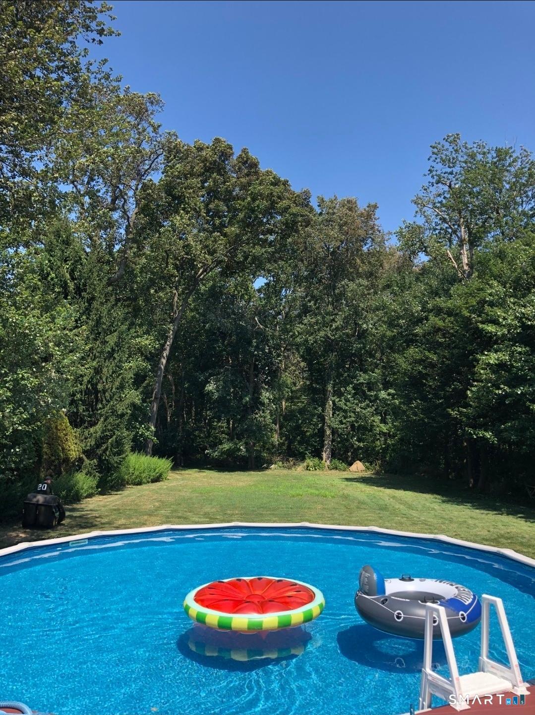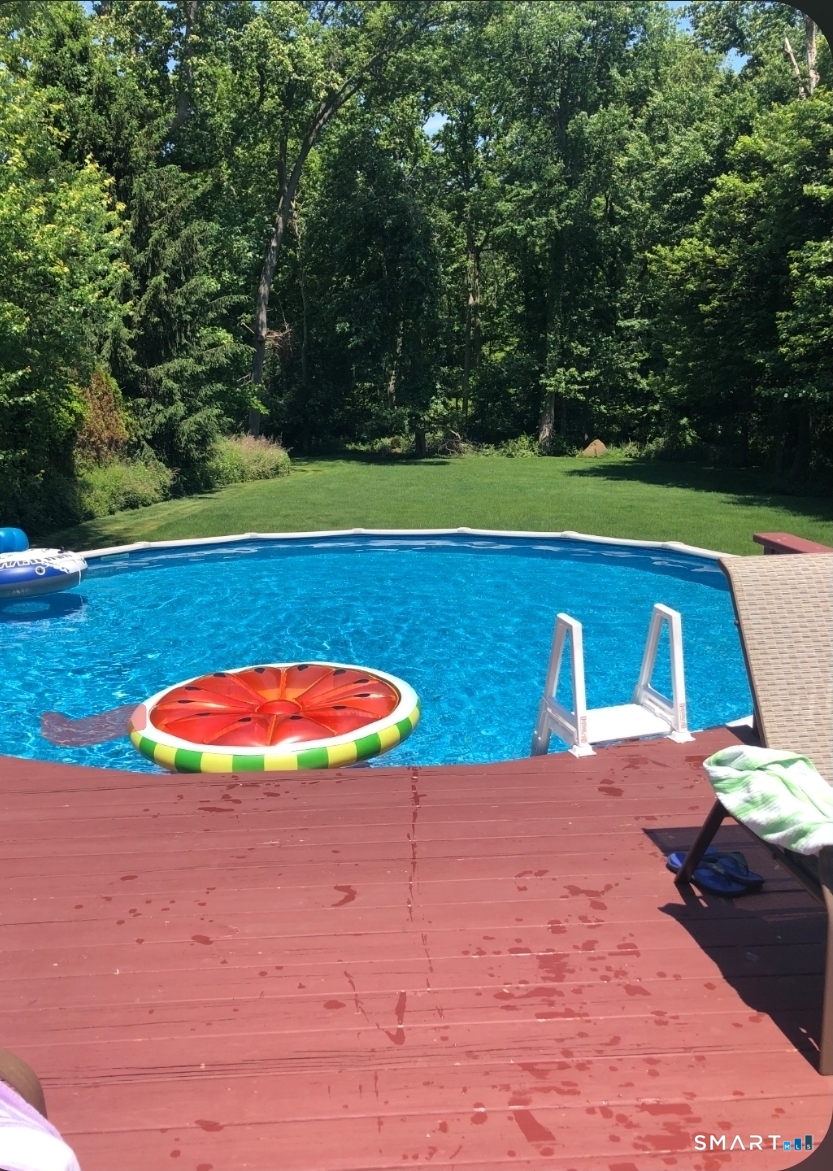 Welcome home to one level living at its best, less than a mile from the beach and under 2 miles to Downtown Milford. This home sits on over an acre of flat, park-like grounds. The property features a partially fenced yard with a huge yard & pool, perfect for relaxing after the beach. There is a two-car detached garage and a wooded area in the rear that provides tranquility and privacy.The inviting living room has hardwood floors and a cozy fireplace. The updated kitchen is a chef's dream, featuring a breakfast bar with quartz counters and stainless steel appliances. The roomy dining room has wood floors, and seamlessly connects to a bright office, accessed through stylish French doors.The den has sliders that open to a deck overlooking the pool and the lovely yard, an excellent space for entertaining.The generously sized primary bedroom boasts a large attached bathroom complete with a separate shower and luxurious jacuzzi tub, ensuring comfort and convenience.There are two other bedrooms, one with an attached half bath. The family room, located in the lower level, serves as a perfect retreat for relaxation. Central air and economical gas heating round out the allure. The home's conveniently located to Downtown Milford, where you can hop on a train to the city, attend one of the many festivals or activities that Milford is famous for or have a drink or some dinner, close to home! Don't wait, this one will not last! Agent related to seller. Security cameras on the property.
