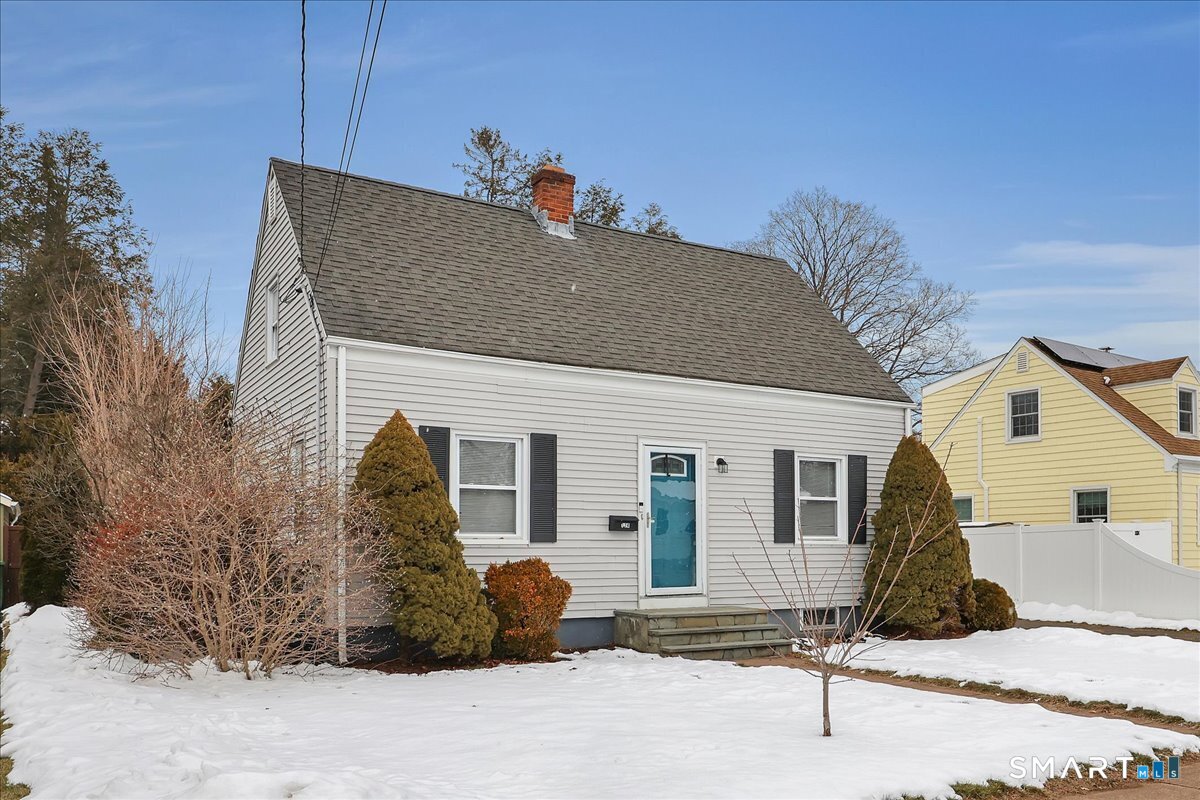 Adorable Cape-style home ready and waiting for you to move right in! Step inside and fall in love with the beautifully updated kitchen featuring generous cabinet space, granite countertops, stainless steel appliances, including a gas range stove, and tile flooring. Just off the kitchen, a cozy sunroom filled with natural light offers the perfect spot to relax. The main level features a front-to-back living room, a dining room perfect for entertaining, and a convenient half bath with laundry space. Upstairs, you'll find two bedrooms and a recently remodeled full bathroom. Hardwood floors shine throughout both levels of the home. Even more to love: a detached garage - no more brushing snow off the car! Plus, a fenced-in yard with patio space, central air conditioning, and a full basement providing ample storage. All of this is set in a lovely neighborhood with easy access to highways, restaurants, shopping, parks, and more!