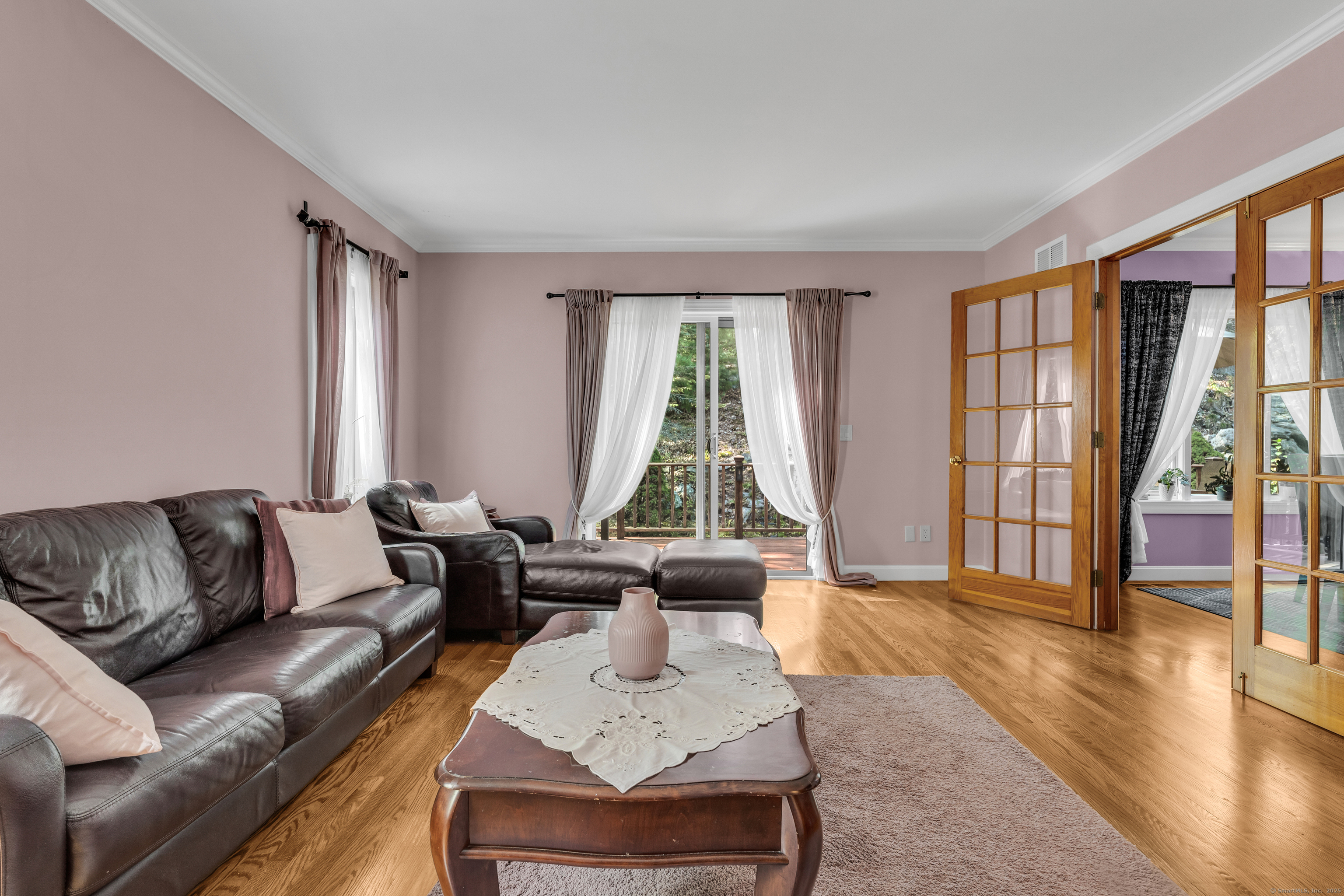 Welcome to 155 Stony Creek Road! A beautiful custom designed home nestled on 1.5 acres of park-like grounds offering serenity and privacy. Step inside to discover a 2-story cathedral foyer with chandelier, hardwood floors, and light filled rooms throughout. The thoughtfully designed kitchen has a wood burning fireplace, center island with granite countertop and stainless-steel appliances. The dining room with French doors opens to the family room that features a slider to the large deck and pergola which is great for entertaining or enjoying your morning coffee. The second floor features 4 rooms, 3 bedrooms and one large bonus space which is perfect as an office or recreational space. The generous primary suite offers a peaceful retreat with a sitting room, large full bathroom with jetted tub, marble tile, shower and double sink. Each room has been designed with comfort and versatility in mind with ample storage throughout. The lower level has an additional 600 sq. ft. of living space adding flexibility for a playroom, home gym or media room. Minutes from Stony Creek Village with public beach, shopping and restaurants and easy access to downtown Branford, railroad station and I-95. Enjoy coastal living at its finest!
