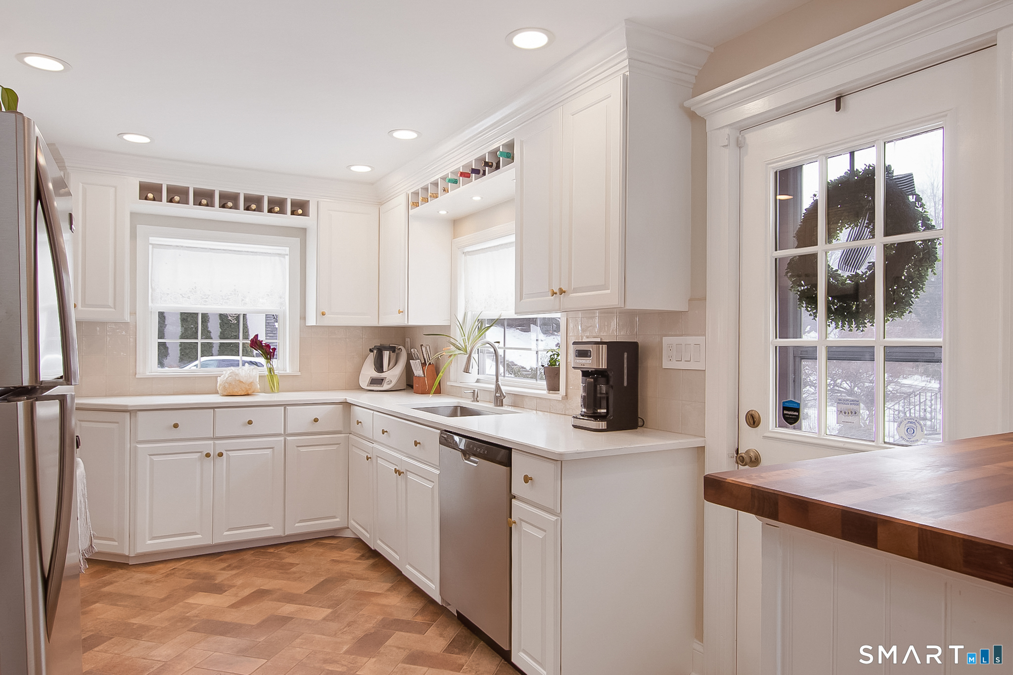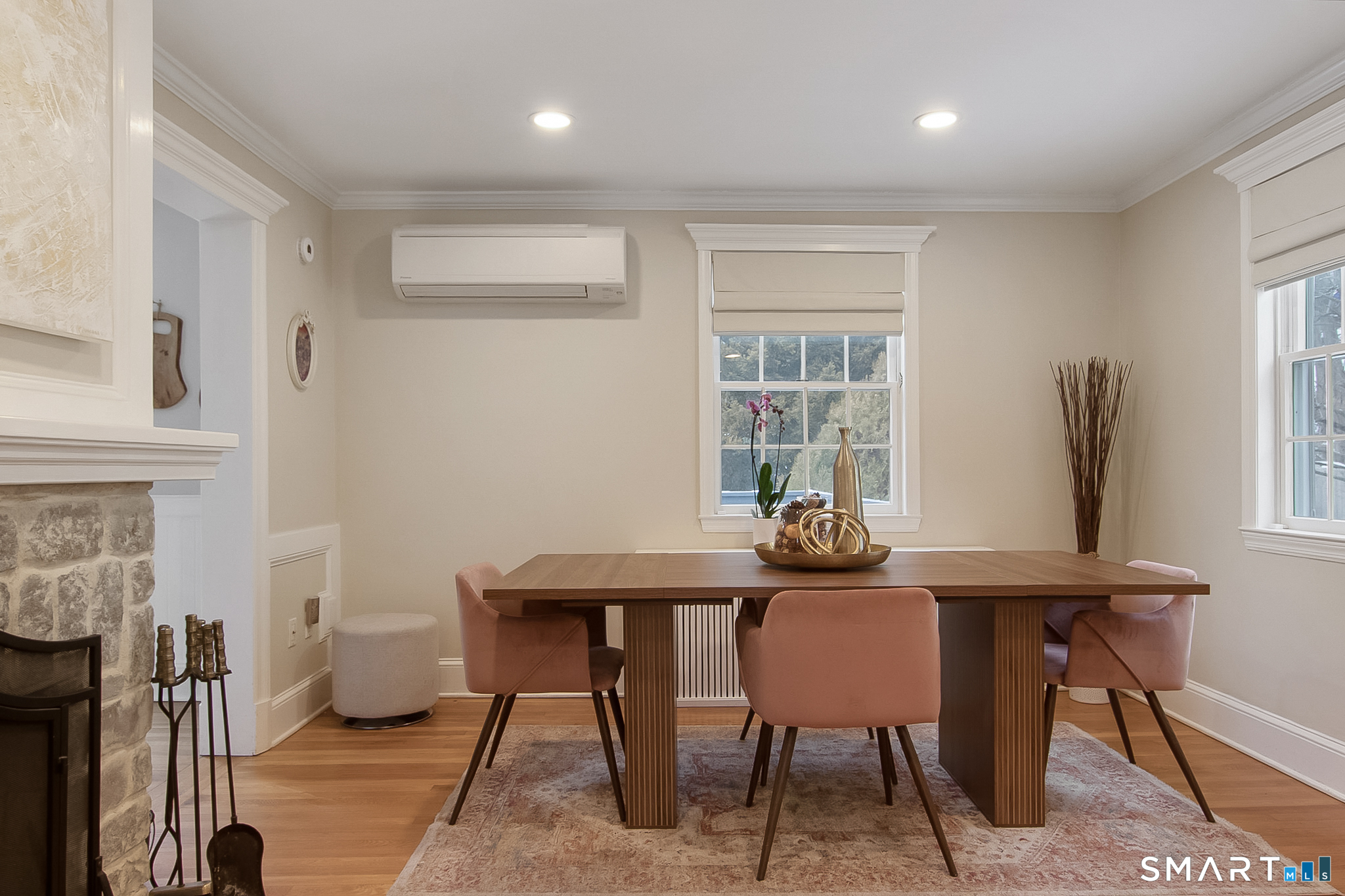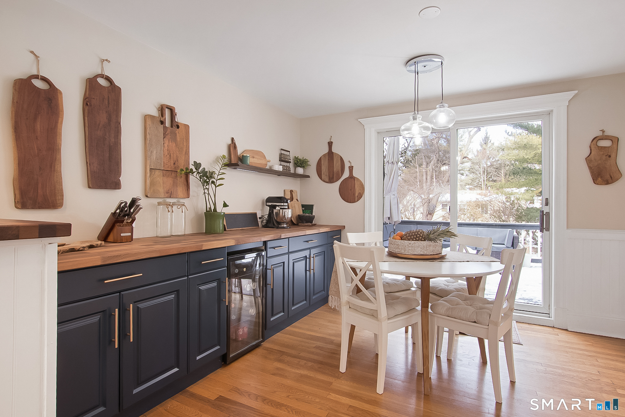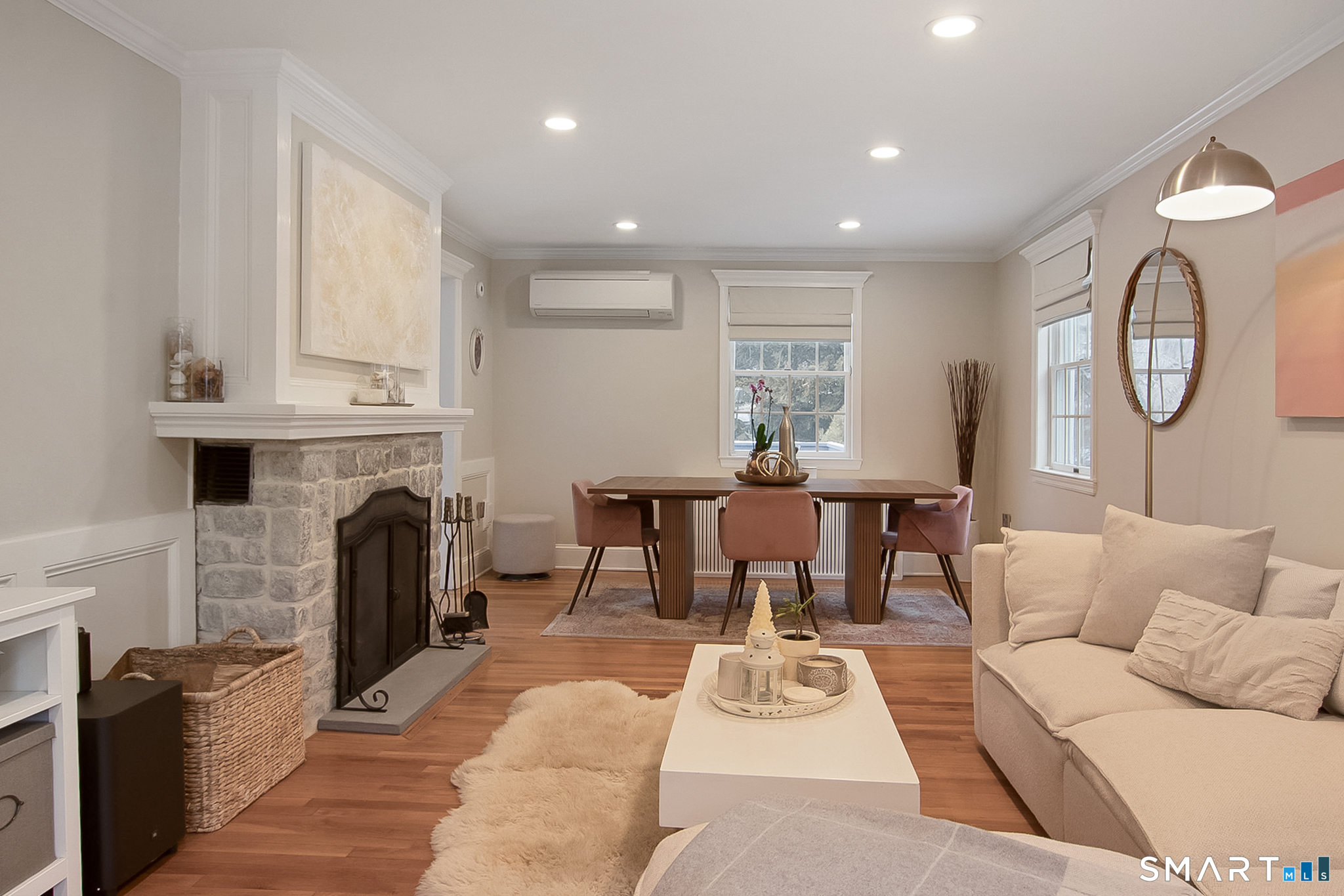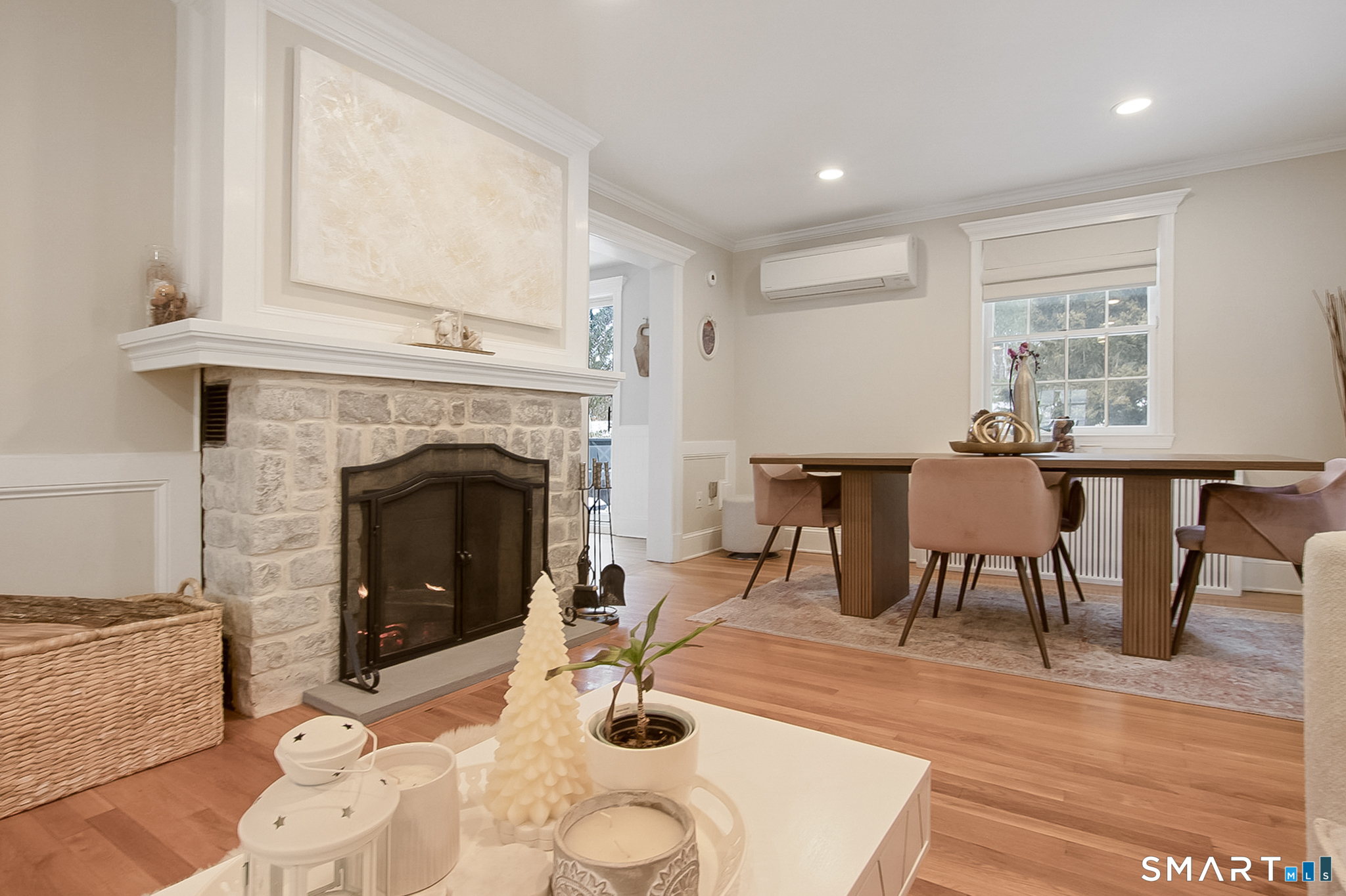 Welcome to 45 Lockwood Lane, a beautifully refreshed Cape set in the vibrant Bettswood neighborhood of East Norwalk. Bright, cheerful, and thoughtfully updated, this home blends classic charm with modern comfort-just minutes from everything Norwalk has to offer. Step inside to an updated kitchen featuring new quartz countertops, refreshed cabinetry, tile flooring, a stylish backsplash, and recessed lighting creating a timeless look. The kitchen flows seamlessly into the remodeled breakfast room, featuring custom cabinetry, butcher block counters, a wine fridge, + sliders that open to a wood deck overlooking the gardens. The living room features a wood-burning fireplace and new bluestone hearth, combining classic character with refined updates. Additional improvements include LED recessed lighting, custom blinds, + new mini-split AC system. Upstairs, two spacious bedrooms offer generous closet space + additional mini-split units, while the fully updated bathroom includes a new vanity, modern tile work, updated fixtures, and sleek glass-partitioned shower for a spa-like feel. The walk-out lower level includes laundry, half bath + fireplace, with excellent potential for expansion-ideal for a family room, home office, gym, playroom, or guest space. A true commuter's dream, this home is conveniently located near the East Norwalk Metro-North station, as well as Stew Leonard's, Calf Pasture Beach, and the town Green. Don't miss the opportunity to make 45 Lockwood Lane your home!