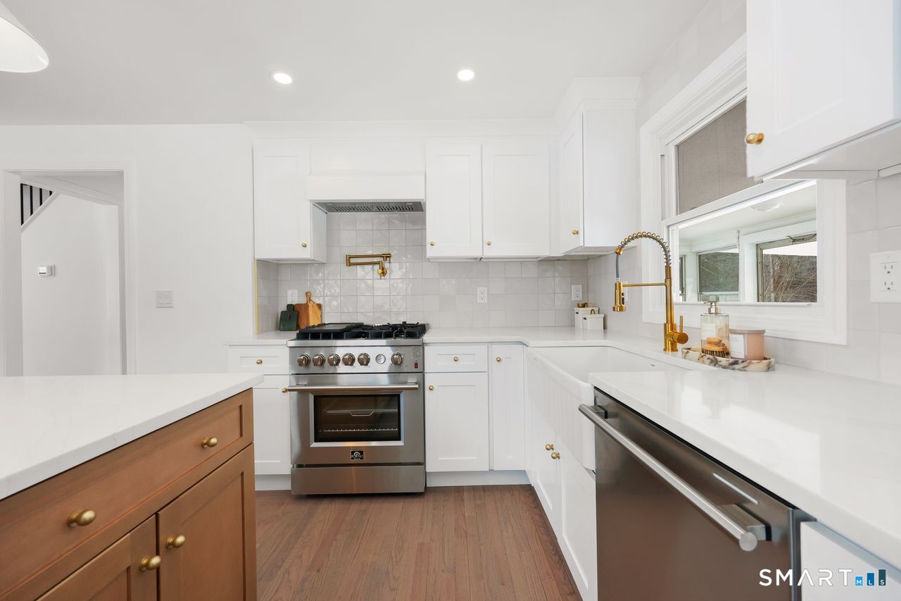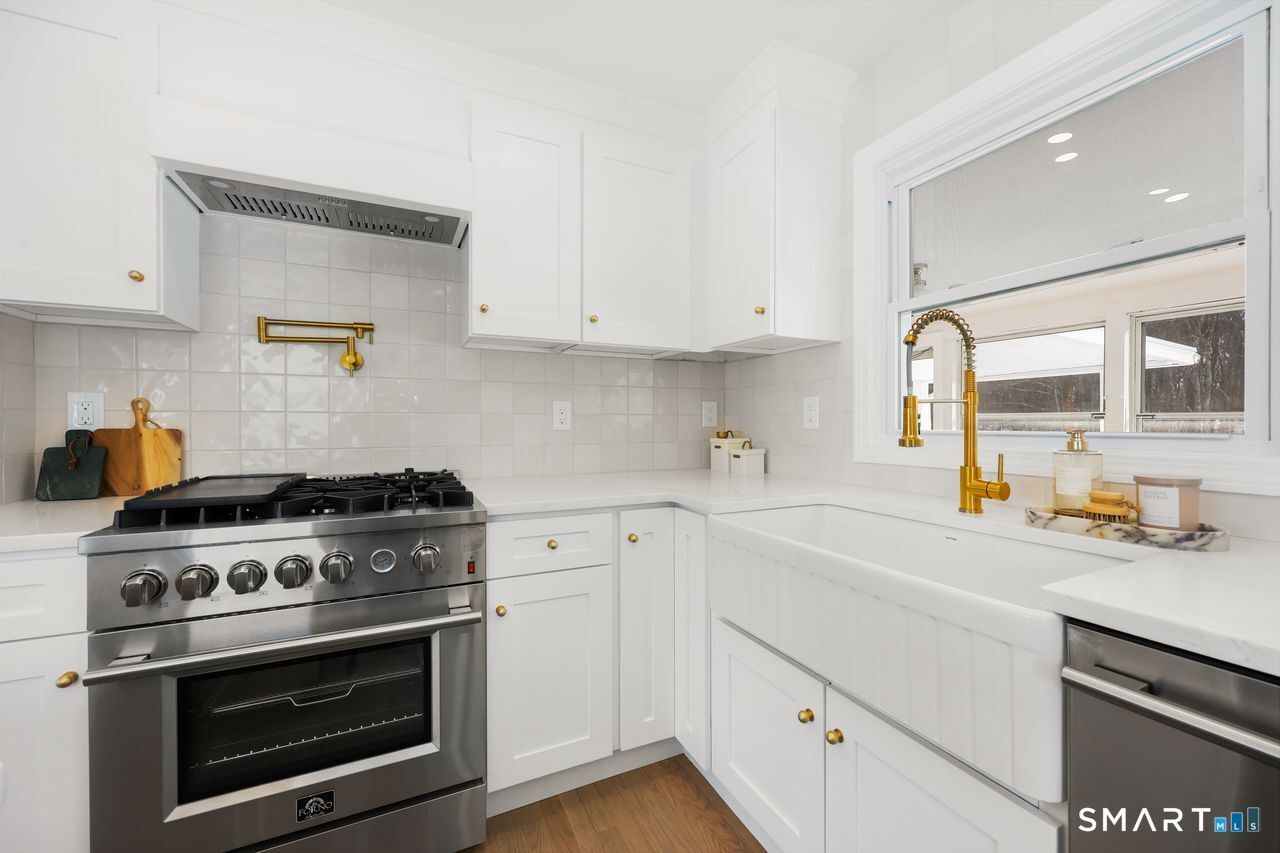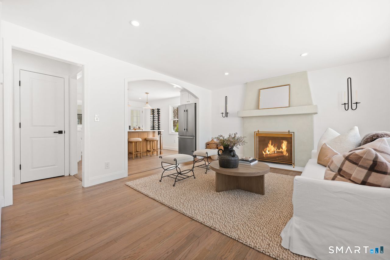 This beautifully renovated 1,344 square foot Cape blends modern updates with timeless charm. Offering four bedrooms and two full bathrooms, the home has been fully permitted by the Town of Shelton and thoughtfully upgraded throughout. New hardwood flooring spans both levels, complemented by a newer roof, brand new plumbing and electrical, a brand new well, and new central air conditioning for year-round comfort. The kitchen delivers a fresh, stylish look with new cabinetry, quartz countertops, and stainless steel appliances. Both bathrooms feature new marble flooring and updated fixtures for a clean, elevated feel. Additional improvements include new light fixtures and receptacles, a full interior paint refresh, and newly installed bluestone patio and walkways that extend the living space outdoors. A stucco wood-burning fireplace anchors the main living area, adding warmth and character. This is a vibrant, move-in-ready home with quality craftsmanship and a confident, modern finish.