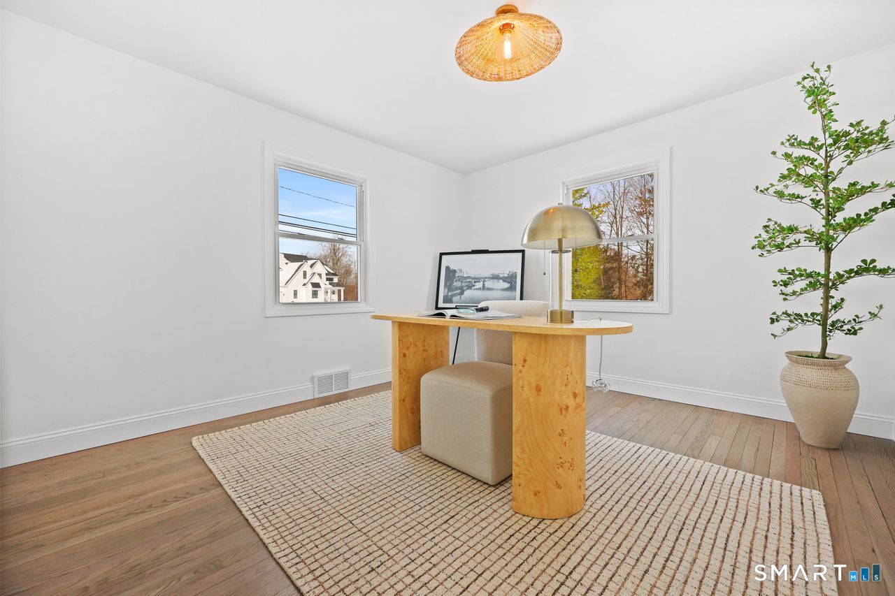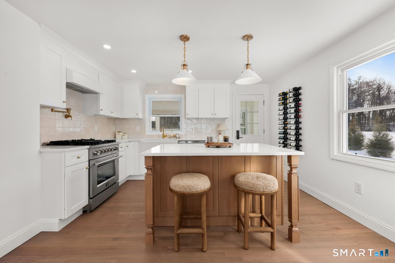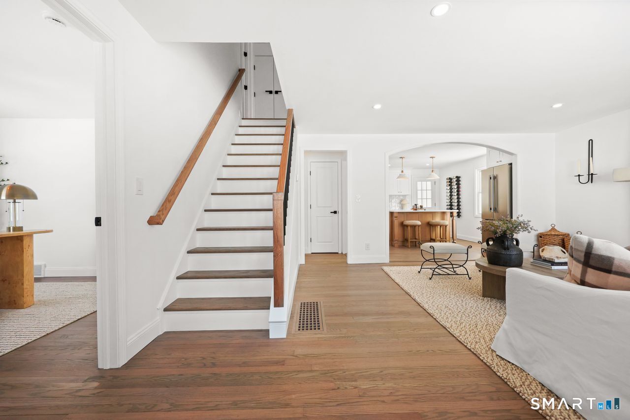 This beautifully renovated 1,344 square foot Cape blends modern updates with timeless charm. Offering four bedrooms and two full bathrooms, the home has been fully permitted by the Town of Shelton and thoughtfully upgraded throughout. New hardwood flooring spans both levels, complemented by a newer roof, brand new plumbing and electrical, a brand new well, and new central air conditioning for year-round comfort. The kitchen delivers a fresh, stylish look with new cabinetry, quartz countertops, and stainless steel appliances. Both bathrooms feature new marble flooring and updated fixtures for a clean, elevated feel. Additional improvements include new light fixtures and receptacles, a full interior paint refresh, and newly installed bluestone patio and walkways that extend the living space outdoors. A stucco wood-burning fireplace anchors the main living area, adding warmth and character. This is a vibrant, move-in-ready home with quality craftsmanship and a confident, modern finish.