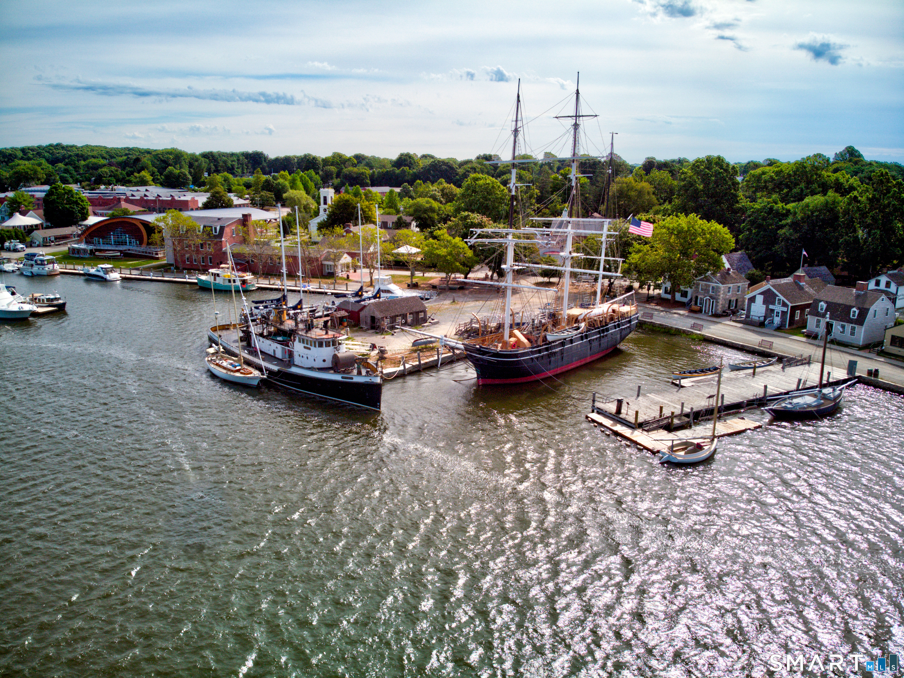 Unobstructed Water Views! Welcome to a rare offering in the Heart Of Downtown Mystic where timeless New England charm meets coveted waterfront living. Relax and unwind on your magical Front Porch and watch the boats sail by with unobstructed water views of The Mystic River and The Mystic Seaport Museum. This beautifully maintained 3-bedroom, 2.5-bath residence is nestled on .30 acres with attached 2 car garage and private off-street parking. It boasts sweeping water views from every window and direct access to the Mystic River. Current owners use a mooring in the Mystic River. Perfectly positioned between Mystic Seaport and the iconic bascule drawbridge, this exceptional home places you at the center of one of Connecticut's most beloved coastal communities. Stroll to renowned restaurants, boutique shops, and vibrant riverfront attractions, all just steps from your door. Whether you're seeking a serene waterfront retreat or an active coastal lifestyle, this home delivers the very best of Mystic Living Historic, Walkable, and Undeniably Special. Peaceful yet lively, historic yet effortless-this is authentic New England coastal living at its finest!