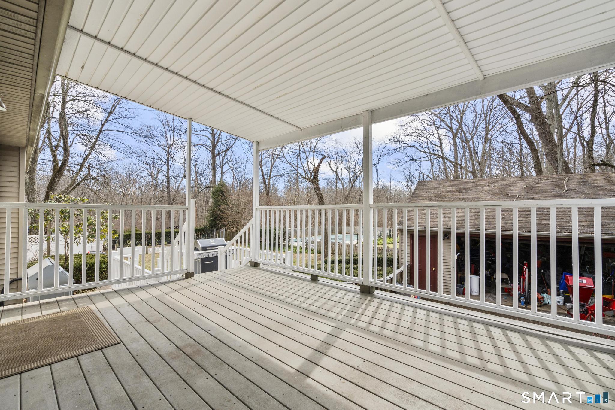 There's something special about a home that gives you the freedom to add your own personal touches while already offering everything you could want-and this is that home. 45 Ridge Acres, a property that truly has it all. Tucked away at the end of a quiet cul-de-sac, this home sits on a private, 1.03-acre lot backing up to town/state-owned land, providing seclusion. The flat, level yard is perfect for outdoor entertaining & the amenities are impressive: an oversized 24x32 two-car garage w/additional rear storage, dual driveways, dual-level decks (including a covered section) & the ultimate showstopper-a fabulous heated in-ground pool. Inside, the home offers over 3,500 sq ft of living space across 2 levels, including an in-law that provides incredible flexibility for extended family, guests, or multi-generational living. The main level features an eat-in kitchen that flows seamlessly into the dining area & spacious living room with a fireplace. This level also includes a large full bathroom w/ dual sinks & 4 bedrooms, one of which includes an attached bonus room currently used as an oversized walk-in closet. The lower level is thoughtfully designed with two living areas. One side is includes a family room with fireplace, a laundry & full bathroom, & a storage/mechanical room. The other side functions as a private in-law suite with its own side entrance, offering a living/dining area, kitchen, full bathroom & 2 bedrooms or flexible spaces.