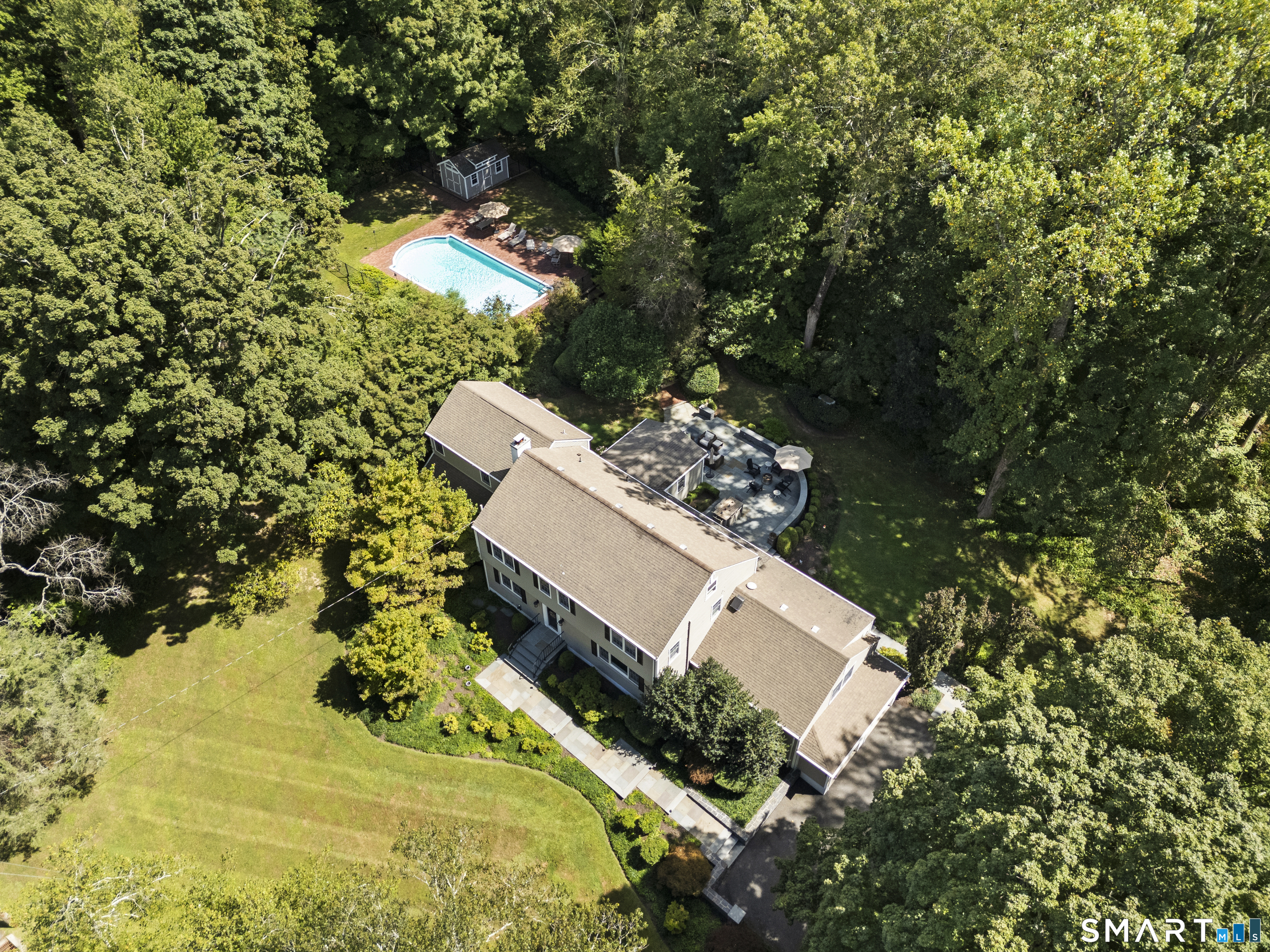 Welcome to 19 Robin Road, a beautifully updated five-bedroom home tucked into professionally landscaped grounds in the heart of Woodbridge. Designed for both entertaining and everyday living, this home offers a wonderful blend of timeless charm and thoughtful modern updates. The chef's kitchen is the heart of the home, featuring top-of-the-line appliances including a Sub-Zero refrigerator, Dacor six-burner cooktop, and Viking hood-perfect for cooking, gathering, and making memories. The first-floor primary bedroom suite provides a comfortable and private retreat with modern finishes and everyday convenience. Step outside and enjoy your own backyard escape, complete with a large bluestone patio and heated in-ground pool-ideal for summer get-togethers, relaxing weekends, or quiet evenings at home. Upstairs, you'll find four additional bedrooms, a home office, two full bathrooms, and a laundry room, offering flexible space for today's lifestyle. With generous living areas, five bedrooms, and inviting outdoor spaces, 19 Robin Road is a place to truly feel at home. Ideally located near scenic walking trails and just minutes from downtown New Haven's restaurants, arts and culture, and Connecticut's beautiful shoreline beaches.