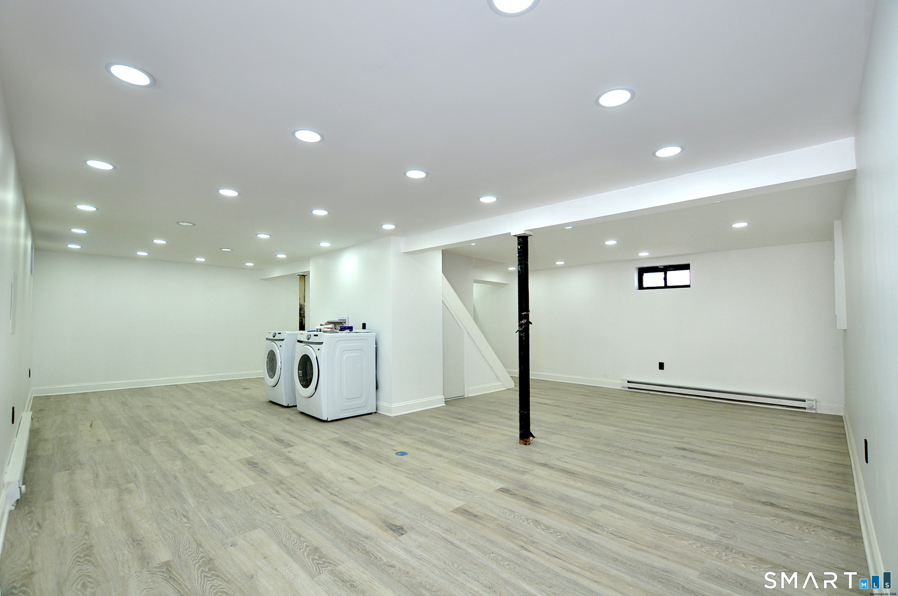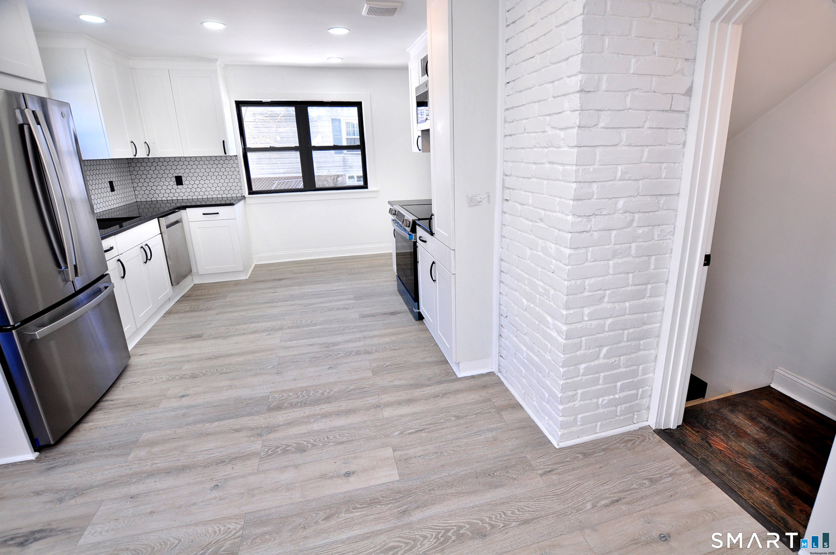 Fully Renovated and ready for YOU to move in!! This 3 bed, 2 bath home offers a modern design and thoughtful upgrades throughout. Completely remodeled from top to bottom, this home features a bright, contemporary interior with white cabinetry, striking black quartz countertops, and a flattering laminate flooring throughout. The open and functional layout includes a first-floor primary bedroom with direct access to a full bathroom, conveniently shared with the kitchen/dining area. The finished lower level adds valuable living space and includes brand-new appliances-washer, dryer, refrigerator, dishwasher, and microwave-all covered under warranty. Major system upgrades provide peace of mind, including a newer roof (just over one year old), new electrical and plumbing, conversion from oil to energy-efficient electric split system units, public sewer and private well. This turn-key home blends modern style with efficiency and functionality, making it perfect for everyone. Nothing to do but move in.
