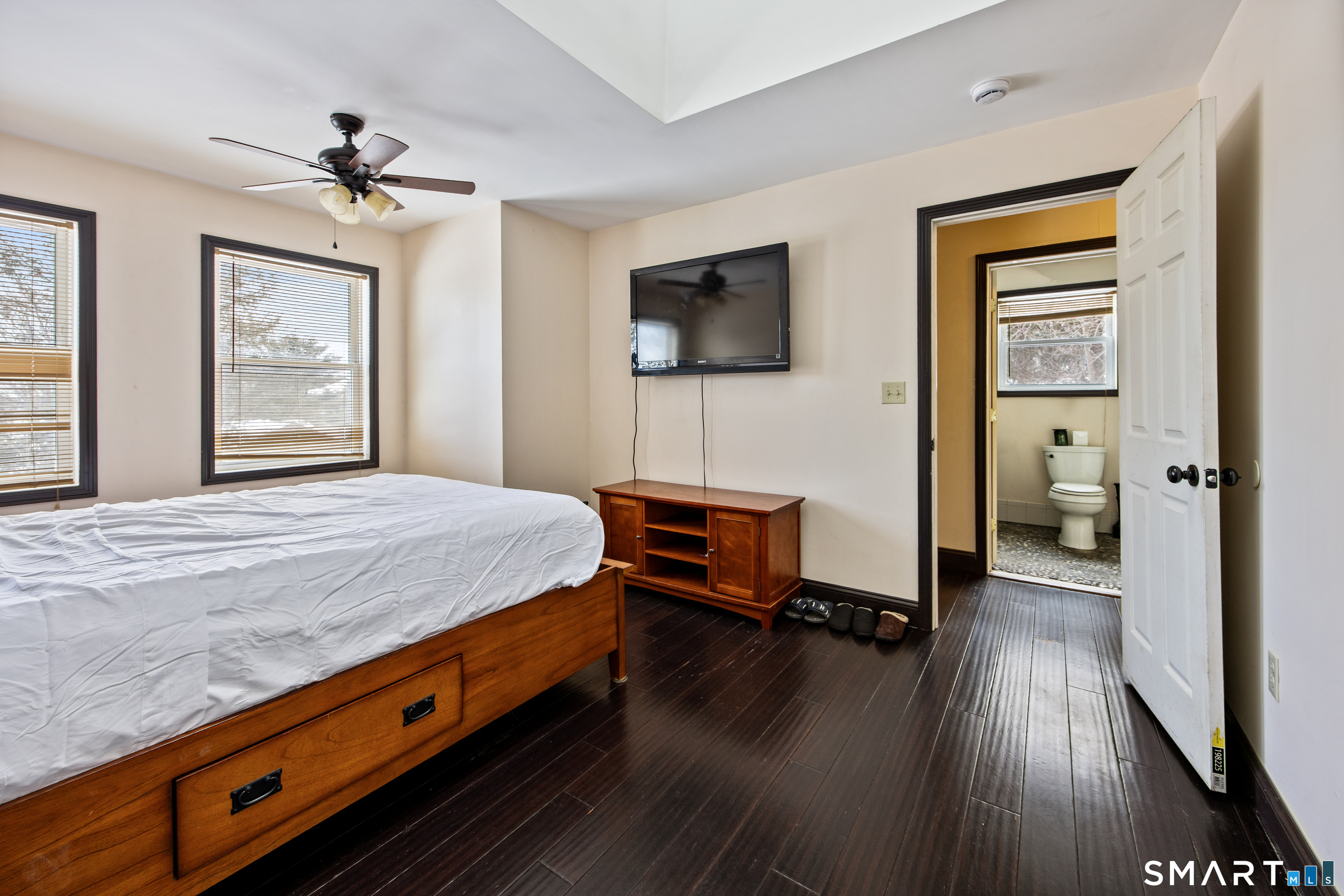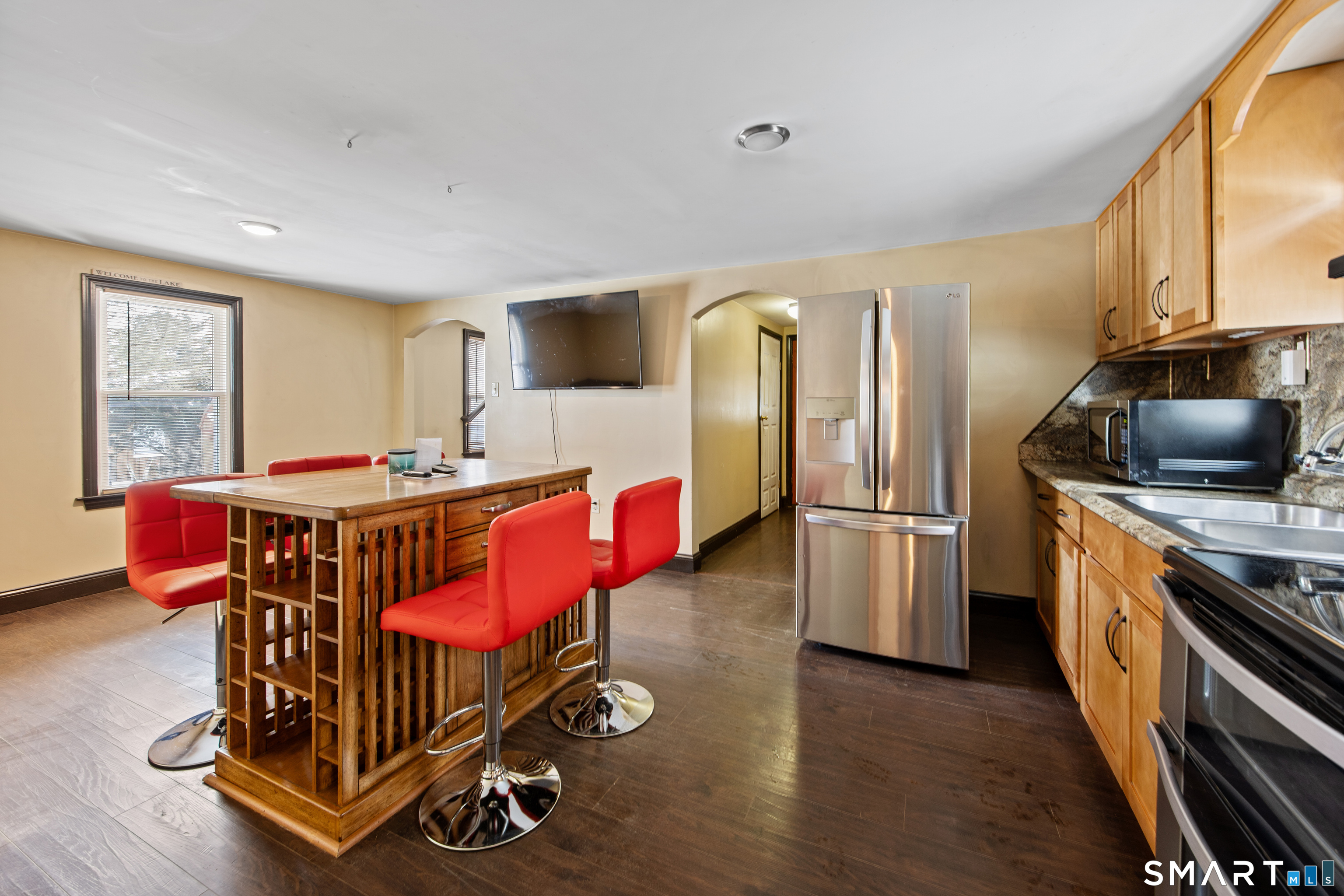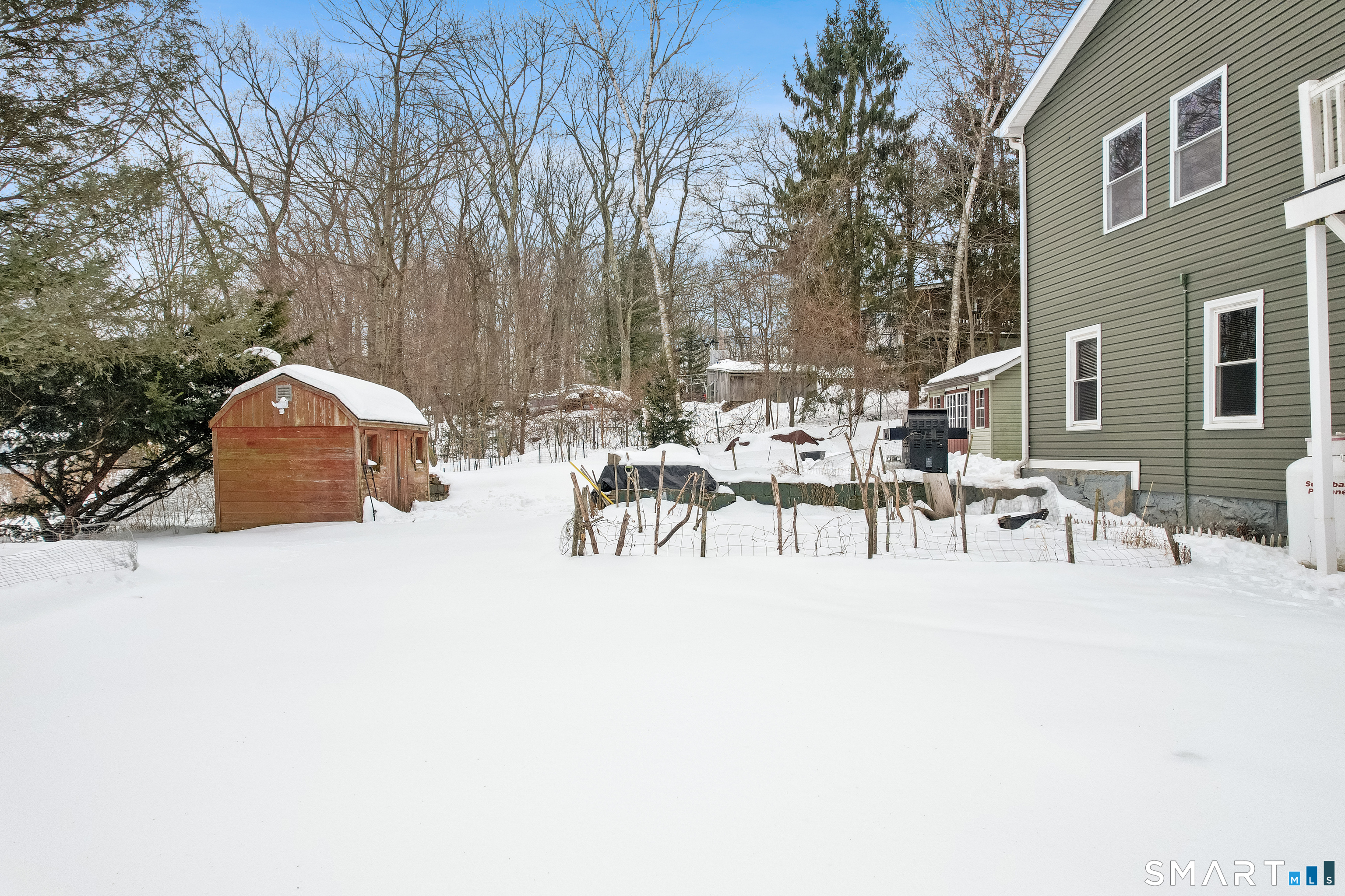 Charming two-bedroom Colonial tucked away in a sought-after private area of Watertown with picturesque views of Lake Winnemaug. Step inside to a cozy living room featuring a beautiful stone, wood-burning fireplace, perfect for relaxing evenings. The bright kitchen offers pine cabinetry, stainless steel appliances and luxury Formica countertops. The main level is complete with a laundry area and full bath. Upstairs, you'll find two nicely sized bedrooms and an additional full bath. Hardwood flooring throughout both levels. This home features propane-fueled forced hot air heat with central air conditioning, along with numerous updates including a newer well pump and holding tank, propane furnace, central A/C system, electrical service, plumbing, roof, and windows, plus skylights throughout. Enjoy the added bonus of a finished outbuilding offering extra heated recreational space. Low taxes complete this exceptional opportunity. MOVE QUICK!