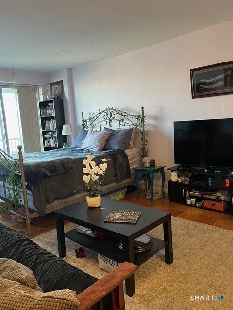 Enjoy affordable, low-maintenance living in the heart of downtown New Haven with this bright and spacious studio apartment. The open living area showcases stunning city views and offers plenty of room to relax or work from home. A functional kitchen, generous closet space, and smart layout make everyday living easy and efficient. Located in a secure, well-maintained building with a front desk reception area, residents enjoy convenient amenities including on-site laundry, designated garage parking, a shared on-site library space, and a welcoming community room. During warmer months, unwind at the newly renovated heated pool complete with a pool house and outdoor showers. This home is ideal for anyone who loves city life, with museums, theaters, dining, and entertainment all in close proximity. Also perfectly situated near Yale New Haven Hospital, making it an excellent option for medical professionals, residents, or staff to be close to work.