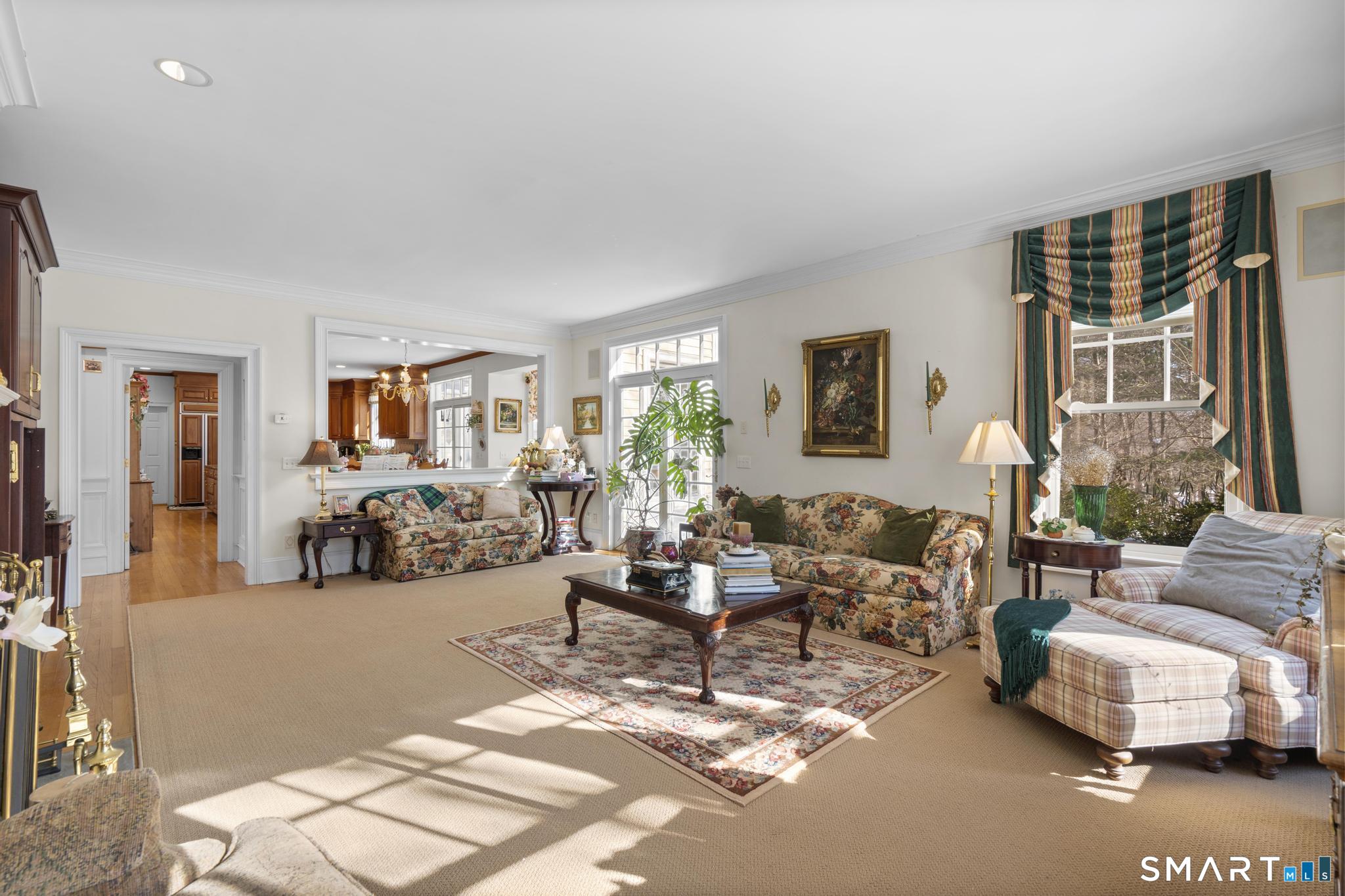Welcome to 9 Perkins, an extraordinary residence tucked away on a quiet, setback street in Woodbridge. Offering over 6,000 square feet of refined living space, this home blends timeless elegance with exceptional versatility. A grand foyer sets the tone, flanked by a formal living room and dining room, perfect for entertaining. A stately home office provides an ideal work from home retreat. The expansive kitchen features abundant cabinetry, generous counter space, and a sunlit breakfast nook designed for everyday gatherings. Just off the kitchen is an exquisite, flexible living area complete with a fireplace, full bathroom, and laundry room offering endless potential as a first floor en-suite bedroom, additional entertaining space, or multi-generational living suite. Above this area lies a large unfinished attic, ready to be customized to suit your vision. The second floor hosts four spacious bedrooms, including a luxurious primary suite with an en-suite bath and walk-in closet. A second bedroom also enjoys its own en-suite bathroom and walk-in closet, followed by two additional well appointed bedrooms & full shared bathroom.