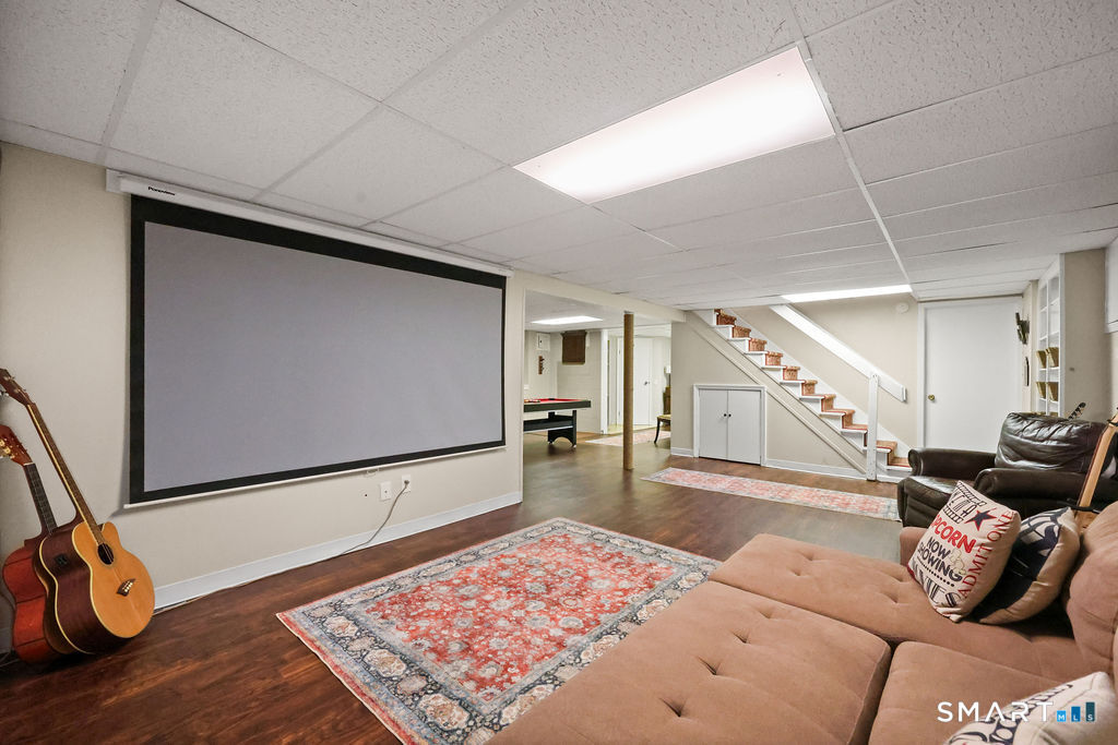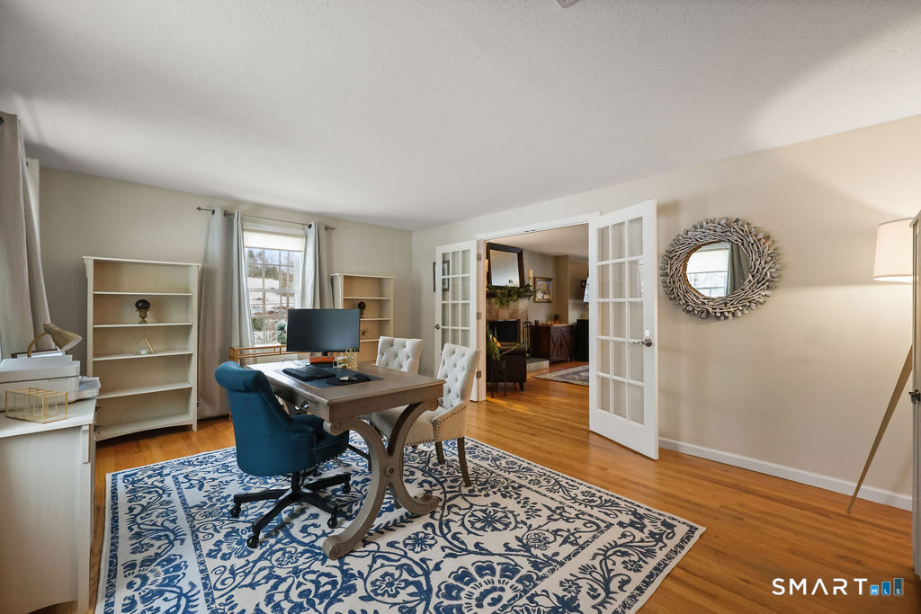 Welcome to 37 Belle Woods Drive, a beautifully maintained 4 bedroom, 3.1bath spacious Colonial in Glastonbury, Connecticut, consistently ranked as one of the state's most sought-after communities for its top-tier schools, exceptional quality of life w/convenient access to Hartford commuter routes via I-91 and Route 2. Stylish and updated home offers roof new as of 2015, windows, gutters an open and functional floor plan featuring a remodeled kitchen with granite center island, stainless appliances, and casual eating space that flows seamlessly into the family room with floor-to-ceiling stone fireplace. Hardwood floors & abundant natural light are features in the formal living and dining rooms, while the spacious primary suite includes a private ensuite full bath & generous closet space. 1st floor laundry and a dedicated home office w/ French doors on the main level provide the flexible room uses today's buyers demand. Lower level delivers approx. 800 additional finished square feet including bonus/game room w/potential 5th bedroom and full bathroom/storage. Energy-efficient updates include central air, fiber optic wiring for smart home features, Ring security system, and a newer repaved flat driveway. The private, professionally landscaped yard is perfect for summertime fun; offers a level, usable outdoor living space with deck, Goalrilla basketball hoop with night light, and electric dog fence. Sidewalks! **SCROLL DOWN**