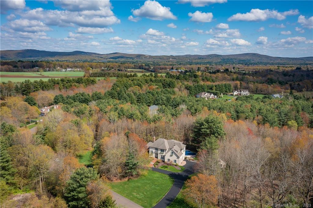 Imagine driving home to Hall Hill Estates where Luxury & privacy are met with captivating mountain views,manicured lawns & magnificent homes. This charming 4 bed 3.5 bath European style chateau w a newly paved circular driveway has it all! Enjoy stone work,stucco,new landscaping&the majestic vibe of this 3.48 acre compound. Enter a dramatic 2 story foyer w turned staircase,wood floors,archways &marbled tile.Sun streaming in is tamed w newer custom made pleated shades. Interior designer (2022) remodeled the 2 sided fireplace w marble &wood to be admired in both the Living room & large open kitchen which boasts a Vaulted LRoom ceiling&french doors opening to a huge outside deck making indoor/outdoor entertaining seem less. The cooks kitchen has stainless steel gas stove, double ovens, granite ,big island & w/i pantry. Another fireplace & new custom built ins make a cozy den in a big space.Dine formally amid crown molding& tray ceilings or casually by the fire.The library offers quiet time w french door. Upstairs, find museum sized art work commissioned for the wall. Owners Primary suite w Double Doors has matching Hand Painted Walls by same artist,SittingArea,Fireplace,Juliet Balcony, Walk in Closet &renovated,gorgeous spa area w stunning DoubleDoor shower, tile work,double sinks, jacuzzi, remote control customshades&watercloset. A true ZEN space! Chic LL has StoneFireplace*Winenook*Bar*Bath*3ft Sportpool (cont'd in Public Remarks Addendum)