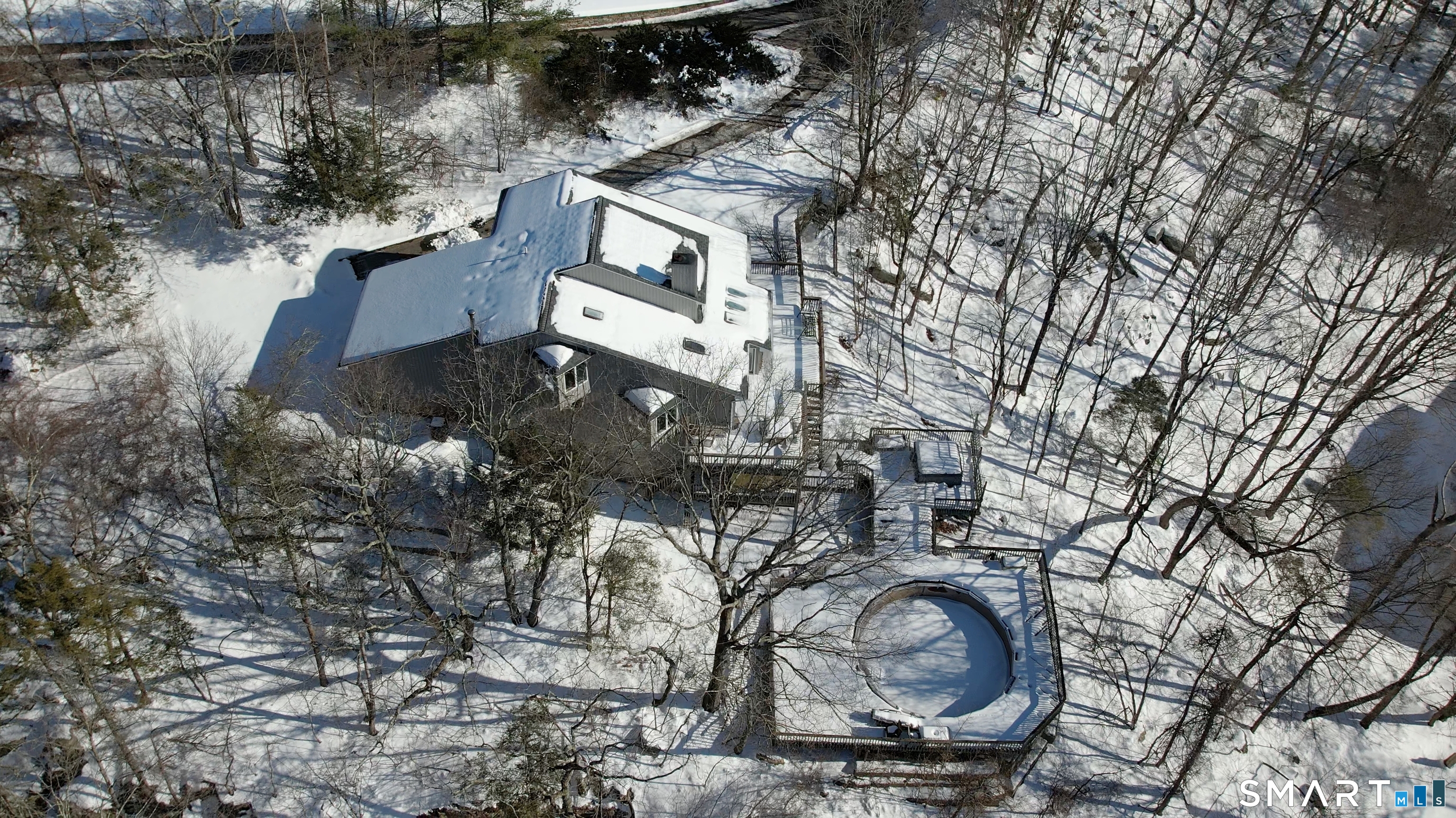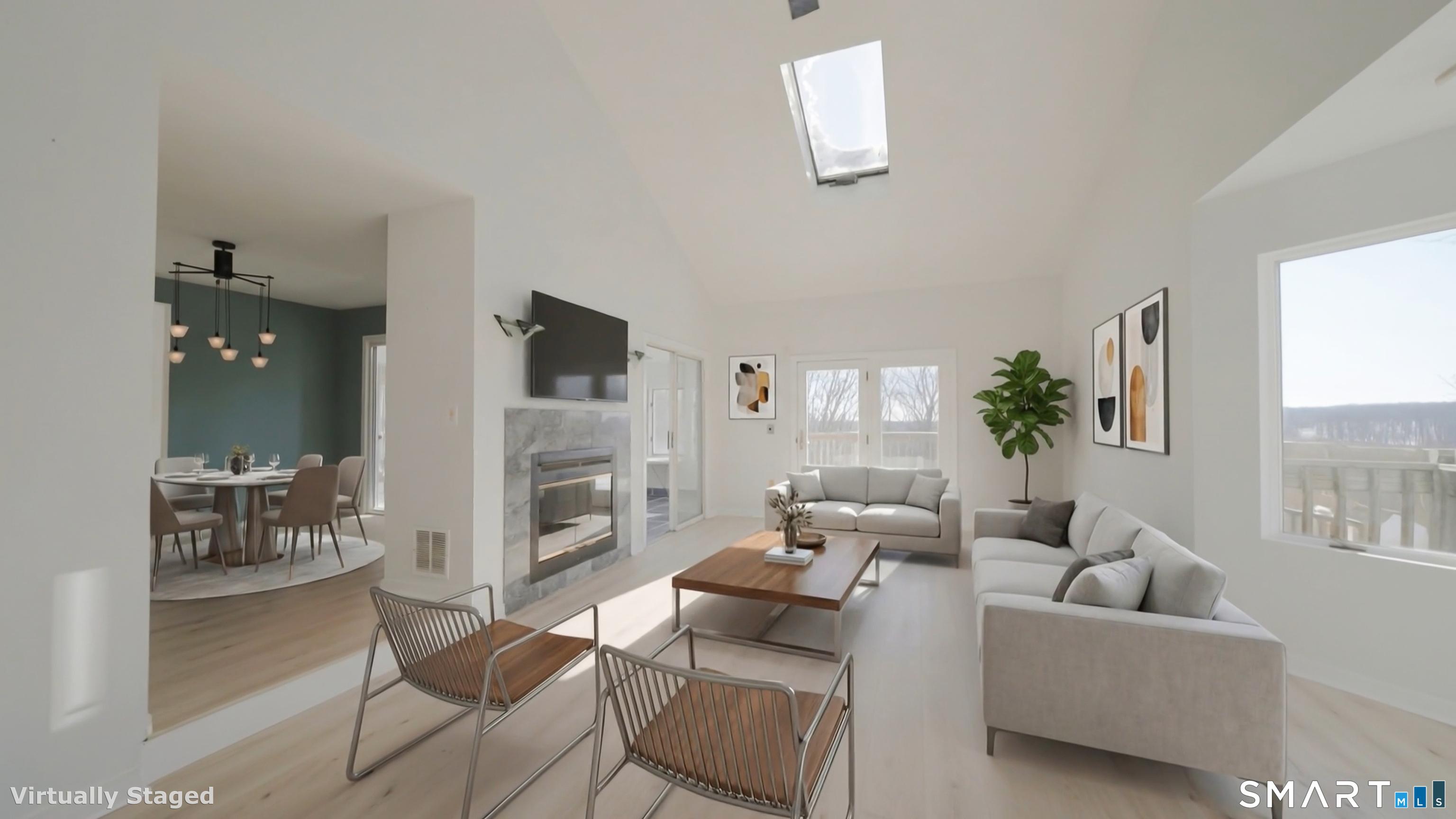 Perched atop a scenic hill on four acres, this 4 bed, 3 full bath home with nearly 3,000 sq ft of living space overlooks the majestic Lake Quonnipaug. Enjoy breathtaking sunset views and seamless indoor-outdoor living with expansive decks and natural surroundings. Abundant sunlight pours through large windows, framing ever-changing seasonal views of the surrounding bluffs and woodlands. Inside, the home balances striking architectural drama, featuring soaring ceilings, with thoughtfully designed living areas. The main level has an open-floor concept. In addition to the Living Room, Dining Room, Family room, and kitchen, there is a convenient bedroom, double sided fireplace, and four-season sunroom - perfect for growing plants year-round. Upstairs there is another bedroom, full bath in the hallway, and the Primary en-suite with large walk-in closet. Completing the upstairs is a dedicated home office, with views of the lake, which can also serve as a bedroom. On the lower level, there is a large walkout basement constructed with high ceilings, making it the perfect place for a studio or gym or to finish for additional living space. A stone's throw away from the sparkling waters of Lake Quonnipaug, you'll have easy access to swimming, boating, kayaking, and fishing. For land lovers, explore nearby hiking trails or cycle through the idyllic countryside.