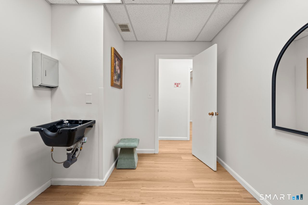 HIGH-VISIBILITY LOCATION DIRECTLY OFF I-91. Situated on the main road at 350 Silas Deane Highway, this property offers excellent exposure, easy on/off highway access, and proximity to major shops and services. Ample on-site parking enhances convenience for both clients and staff. ALL UTILITIES INCLUDED with tenants responsible for electricity and Wi-Fi only. Flexible lease terms. Suite 301 / Room 3 is approximately 200 SF modern office suite located within an elegant, professionally managed building featuring beautifully finished hallways, security systems throughout, elevator service, wheelchair accessibility, and 24/7 access. The suite features a beautiful main waiting room, along with a second waiting area located within the suite, providing added comfort and privacy for guests. Suite 301 includes five total rooms with a flexible layout suitable for a variety of professional or service-based uses. A kitchen/break area with a private bathroom is located within the suite for convenience. Beautiful tan hardwood floors run throughout the space, creating a warm and polished atmosphere, with ample room for guests to wait comfortably in the designated waiting areas. Functional and efficient, the unit offers a turnkey setup ideal for beauty, wellness, or cosmetic use. Contemporary finishes and a polished atmosphere make this property ideal for today's modern businesses. Flexible lease terms available. Turnkey and ready for immediate occupancy.