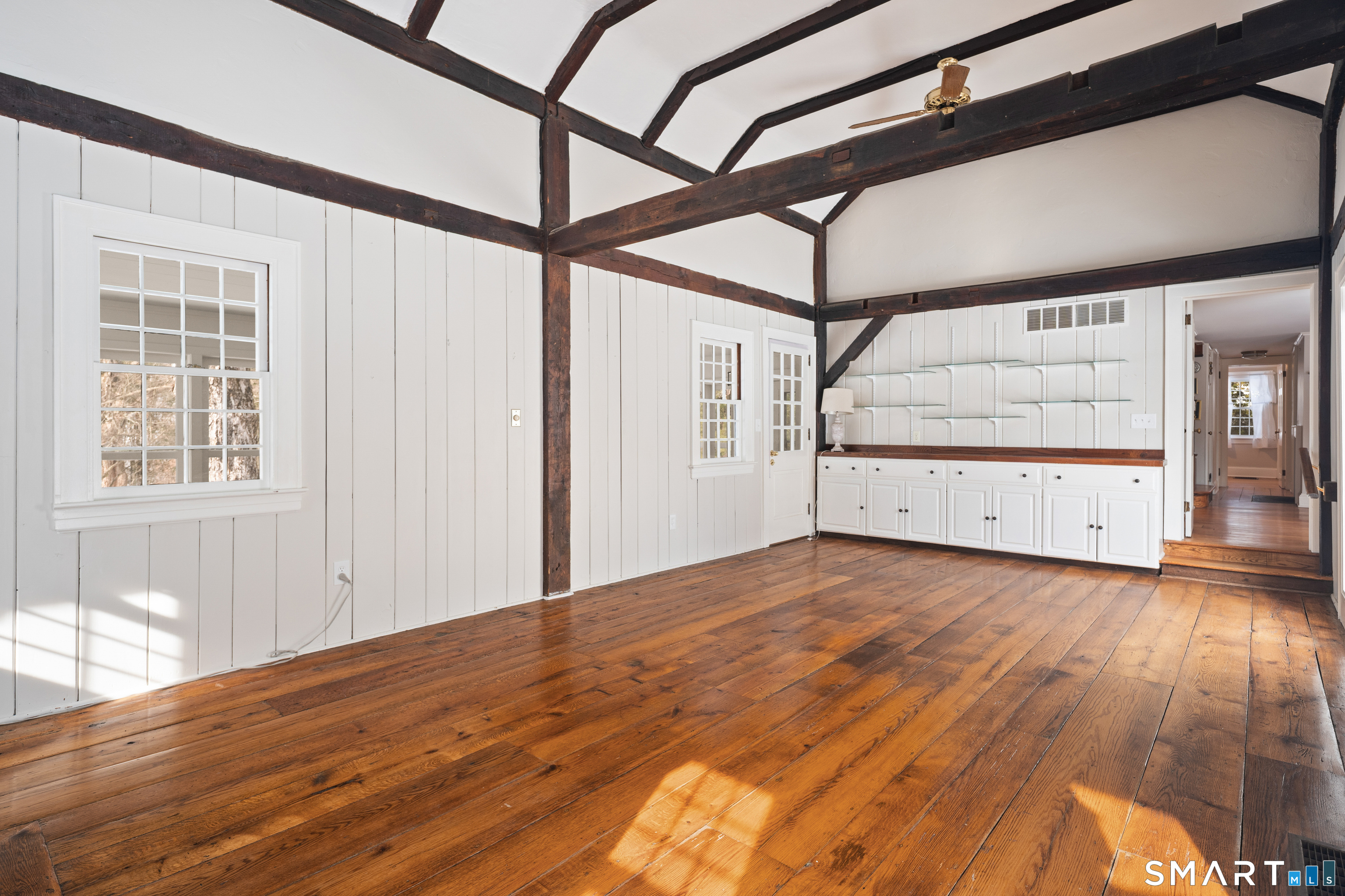 Welcome to Boxwood Glenn - a rare, lovingly restored vintage treasure in the heart of Oxford. Classic New England farmhouse charm meets thoughtful modern updates in this exceptional home, nestled among stone walls, curated gardens, and serene natural surroundings. Step through the slatefloored sunroom, drenched in natural light, where views unfold over the hexagon garden, clipping garden, and a tuckedaway secret garden that reveals itself only to those who wander. Beyond the manicured grounds, the tranquil lawn rolls gently toward the breathtaking backdrop of Kettletown State Park. Just 1 mile away, Jackson Cove offers summer swimming, boating, picnics, playground, hiking trails & access to the abundant nature that defines this beloved community. Inside, character & craftsmanship shine. The family room centers around a grand granite gas fireplace, crowned by soaring ceilings & framed by original wideplank floors & exposed wooden beams. The dining room continues the historic charm with a highly efficient wood stove & an authentic beehive oven-perfect for cooking pizza-all surrounded by vintage millwork, rich with story & texture. The kitchen features handmade terracotta tiles with radiant heat, creating a cozy space to cook in. A mainlevel bedroom & bathroom offer flexible options for a nanny/guest room or a dedicated home office. The living room and primary bedroom both include fireplaces suitable for gas inserts, adding warmth and ambiance for winter evenings.