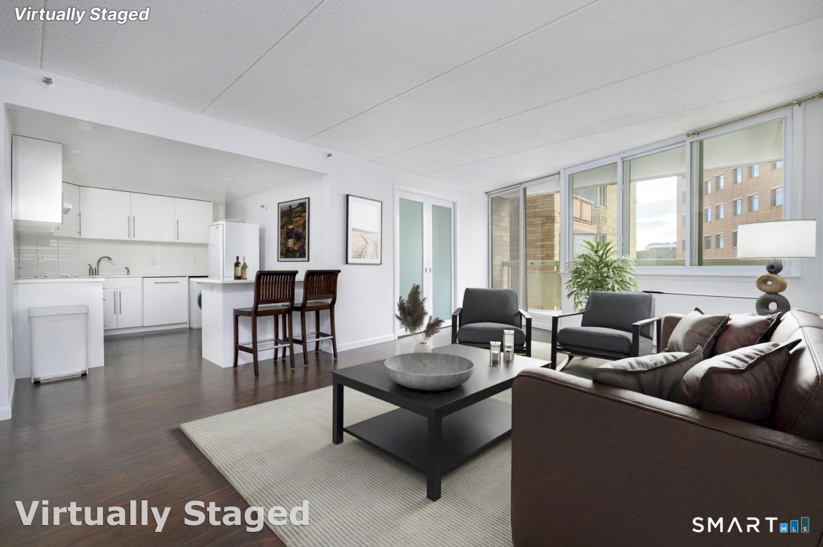 Welcome to effortless luxury at The Buckingham-where style, comfort, and convenience come together beautifully. This sun-drenched, meticulously maintained 1BR + den offers ultimate flexibility. The spacious den easily functions as a true second bedroom, home office, or guest retreat-ideal for today's work-from-home lifestyle. Step inside and be greeted by abundant natural light streaming through oversized windows. The open floor plan showcases an updated chef's kitchen with sleek countertops, modern appliances, and a generous island perfect for meal prep and casual dining. The kitchen flows seamlessly into the dining area and expansive living room, creating an inviting space for relaxation and effortless entertaining. Your private balcony beckons for morning coffee, evening cocktails, and breathtaking sunset views-a rare find at this price point. The spacious primary bedroom boast a double closet with ample storage, while the oversized spa-inspired bathroom impresses with custom cabinetry and a luxurious walk-in tub/shower designed for comfort and accessibility. In-unit washer and dryer. Resort-style amenities include: 24-hour concierge, state-of-the-art fitness center, sauna, sparkling outdoor pool, library/conference room, and vibrant community lounge with full kitchen. One deeded garage parking space and private storage unit included. Walk to shopping, dining, entertainment, library, Metro North. Move-in ready and waiting for you. Owner absorbed assessment.