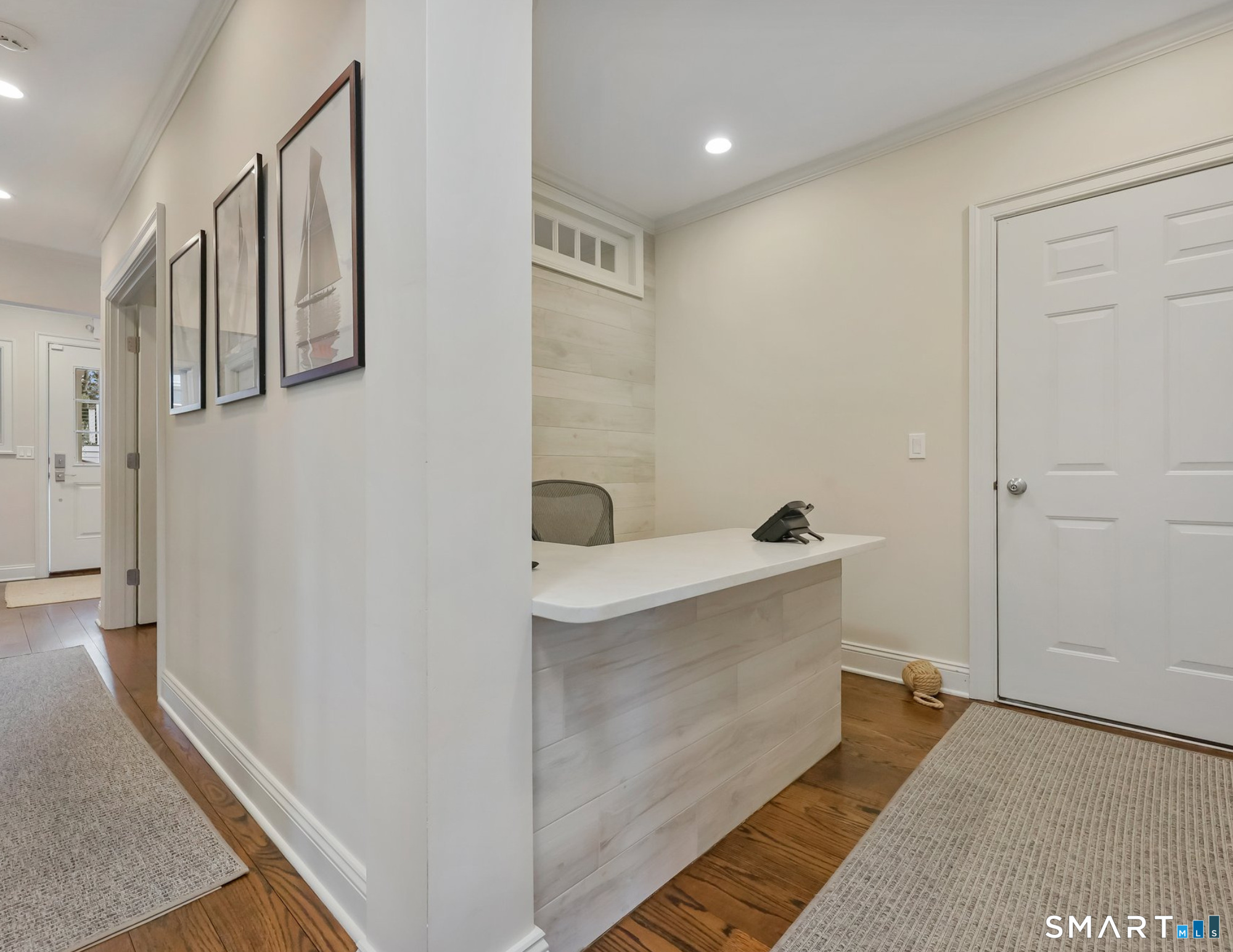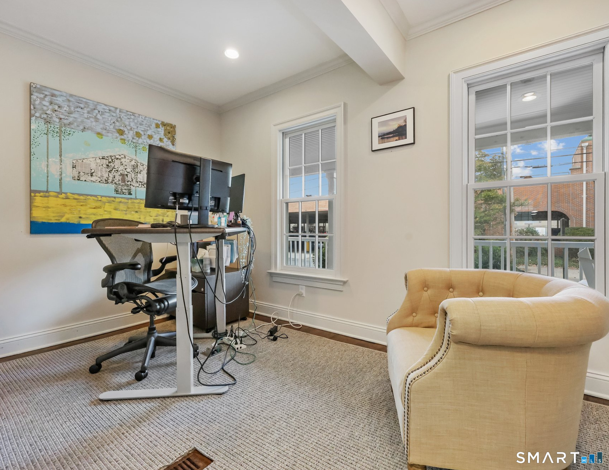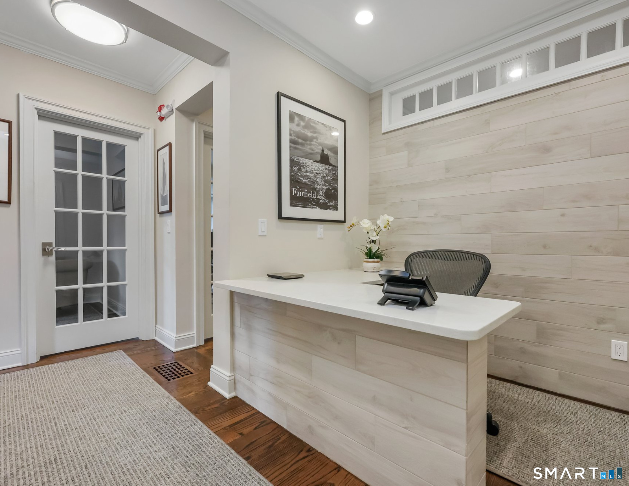 Location, location. IN-TOWN LUXURY OFFICE SPACE just steps from the heart of downtown Fairfield. Walk to train, restaurants, parks and the beach! High ceilings, warmly stained hardwood floors and custom moldings throughout with walls of windows for natural light. Professional and pristine, this sophisticated and well-constructed office space features the perfect location with a ton of parking on the street (and 4 passes to town parking), 3-4 offices (including conference room), reception area, tech niches, break room and full basement for storage. The architecturally appealing building includes spacious offices which have been completely restyled with tons of natural light, abundant recessed lighting, neutral paint palette, crown and detailed moldings, hardwood floors, French doors, accessible restroom, and available partially furnished. NOTE the low utility costs, fiber optics for strong and fast service, and newer major components. Trifecta of utilities: city water & sewer, city gas. Take a break on the rear covered porch, walk to town green, and enjoy the convenience of close proximity to commuting routes and train, dining and every type of shopping, post office and suppliers. You're in good company with other attorneys, accountants, insurance, real estate, financial advisors, etc. along the street and nearby.
