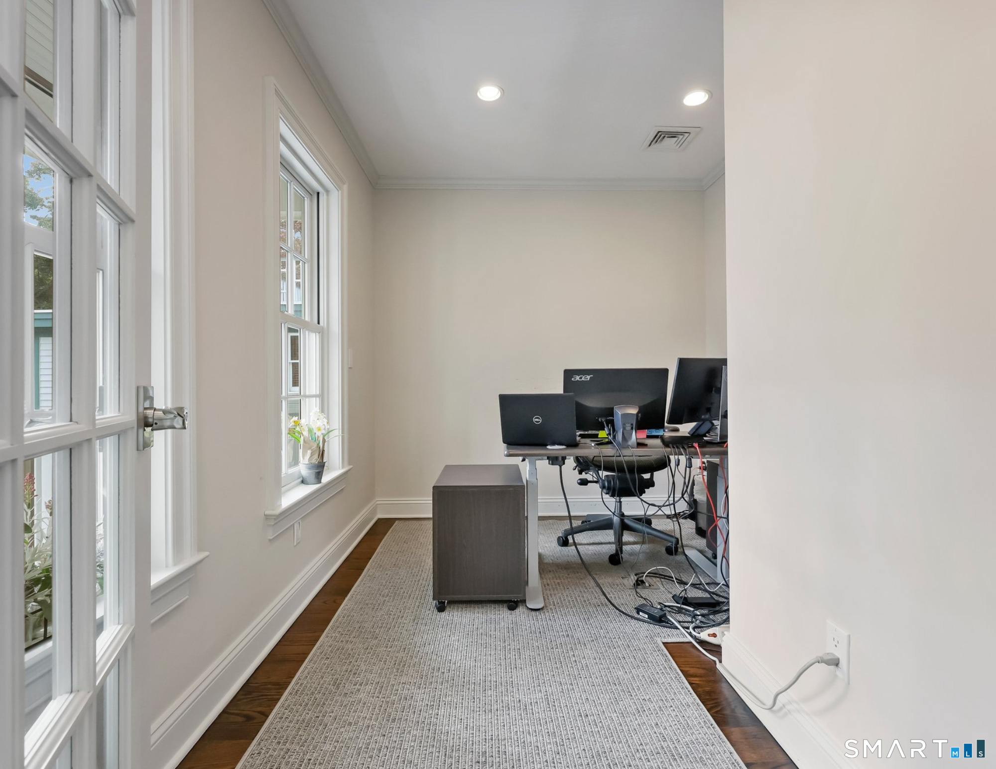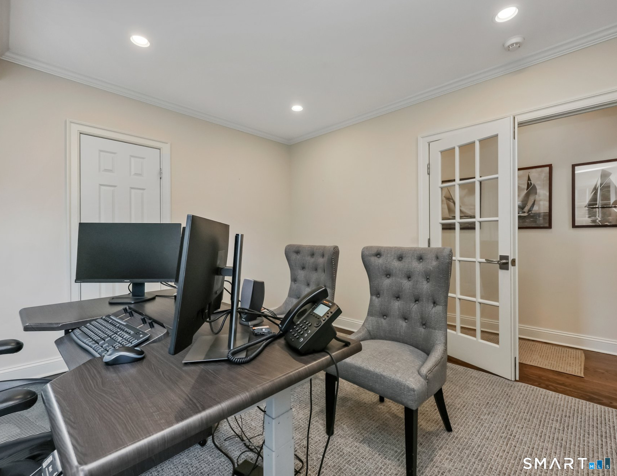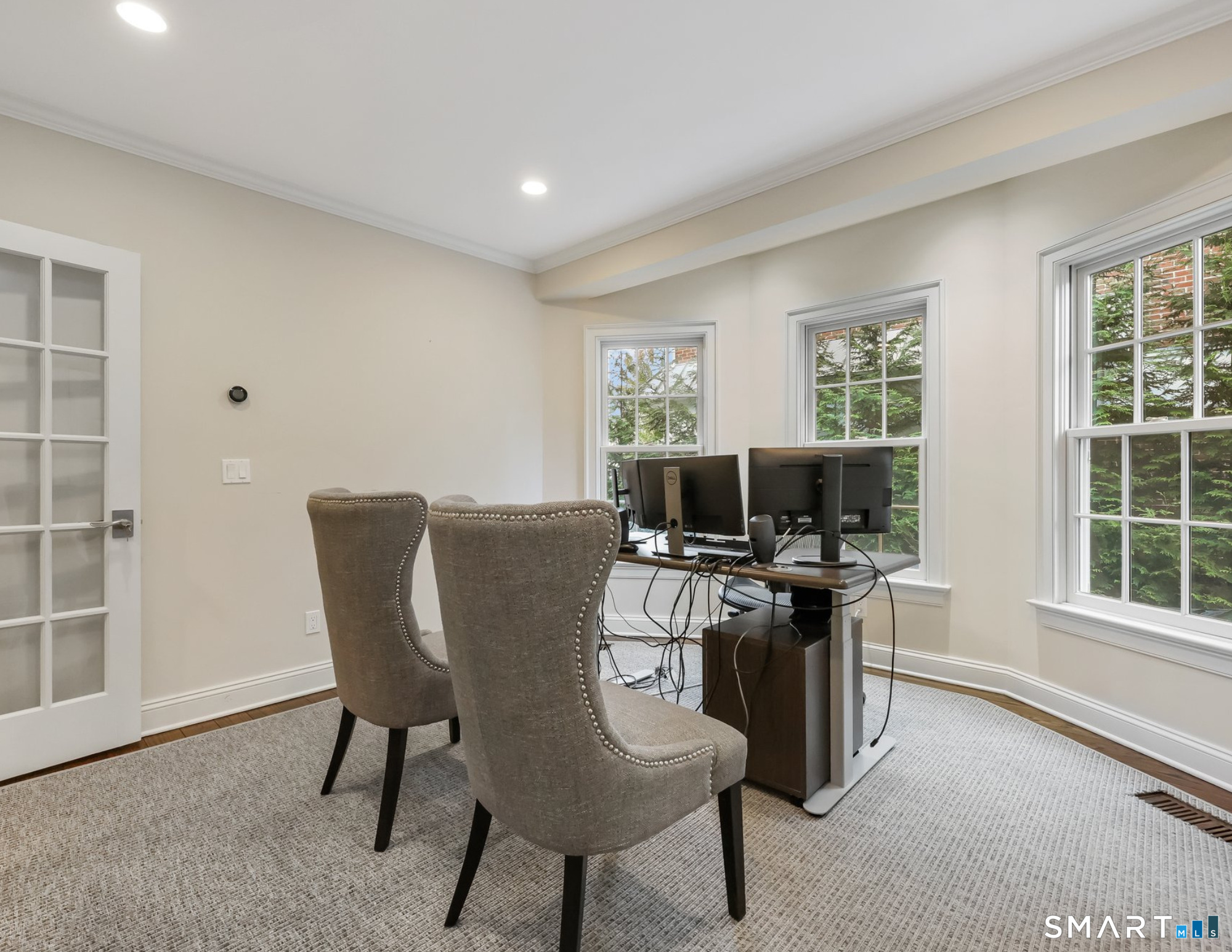 Location, location. IN-TOWN LUXURY OFFICE SPACE just steps from the heart of downtown Fairfield. Walk to train, restaurants, parks and the beach! High ceilings, warmly stained hardwood floors and custom moldings throughout with walls of windows for natural light. Professional and pristine, this sophisticated and well-constructed office space features the perfect location with a ton of parking on the street (and 4 passes to town parking), 3-4 offices (including conference room), reception area, tech niches, break room and full basement for storage. The architecturally appealing building includes spacious offices which have been completely restyled with tons of natural light, abundant recessed lighting, neutral paint palette, crown and detailed moldings, hardwood floors, French doors, accessible restroom, and available partially furnished. NOTE the low utility costs, fiber optics for strong and fast service, and newer major components. Trifecta of utilities: city water & sewer, city gas. Take a break on the rear covered porch, walk to town green, and enjoy the convenience of close proximity to commuting routes and train, dining and every type of shopping, post office and suppliers. You're in good company with other attorneys, accountants, insurance, real estate, financial advisors, etc. along the street and nearby.