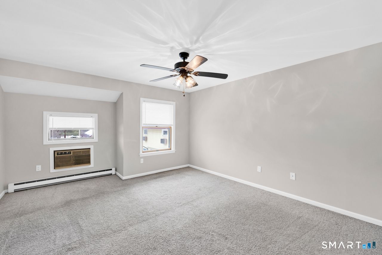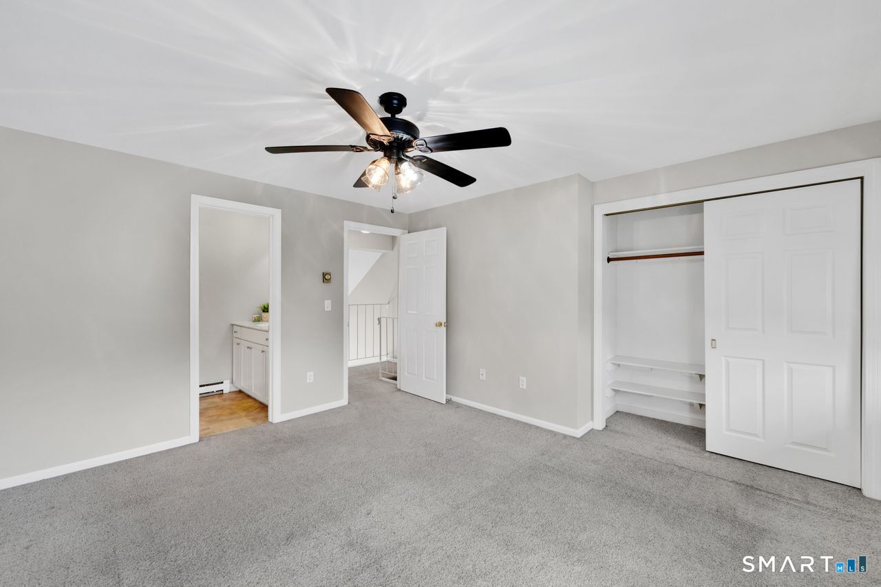 Adorable End-Unit Townhouse - Privacy, Comfort & Convenience Why rent when you can own? This charming end unit offers the perfect entry point into homeownership, combining smart design with everyday practicality. Step inside to an eat-in kitchen with a large pantry and a spacious living room featuring a cathedral ceiling that creates a bright, open feel. A sliding door leads to your private patio, and a convenient half bath completes the main level. Upstairs, the generous primary bedroom with full bath provides a quiet retreat. The lower level includes washer and dryer, plus a partially finished basement ideal for a home gym, recreation room, or additional living space-with plenty of storage. Freshly painted, professionally steam-cleaned carpets, and newer window treatments make this home truly move-in ready. Located near shopping, dining, commuter routes, Interstate 84, and UCONN, this property delivers on style, convenience, and affordability.