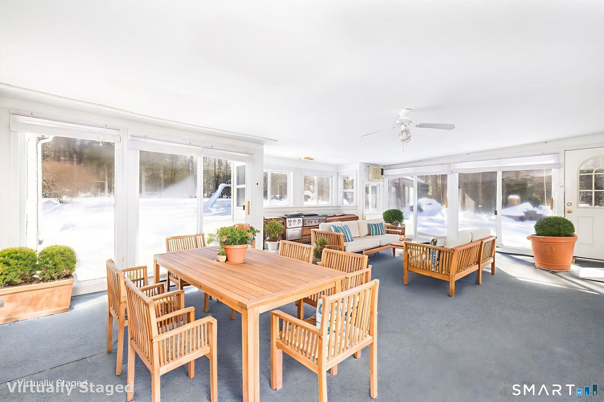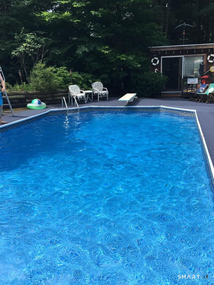 A rare opportunity on Torrington's East Side, this well-built four-bedroom Colonial is set on 8.16 private acres, offering a truly unique, resort-style living experience. The main level showcases a classic, expansive floor plan centered around a granite kitchen with breakfast bar. Elegant formal and informal spaces abound, including a sun-drenched dining room with hardwood flooring, a formal living room with gleaming hardwood floors and a cozy fireplace and an expansive great room, also featuring a woodburing fireplace and ceiling fan. The highlight is the all-season solarium, which houses a private inground pool and a rejuvenating sauna. A convenient half bath and main-floor laundry complete this level. Upstairs, the home is comprised of a private primary bedroom suite with hardwood flooring, three additional guest bedrooms and a full bath. For year-round entertainment, the partially finished lower level offers a spacious game room complete with a pool table and a second family room warmed by its own fireplace. Completing this classic estate is an attached three-car garage with a private in-law apartment above offering flexible living or guest quarters. The outdoor amenities rival a luxury resort featuring a heated outdoor pool and a tennis court. Bring your creative vision and updating ideas to customize and transform this beautiful home into your dream luxury compound.
