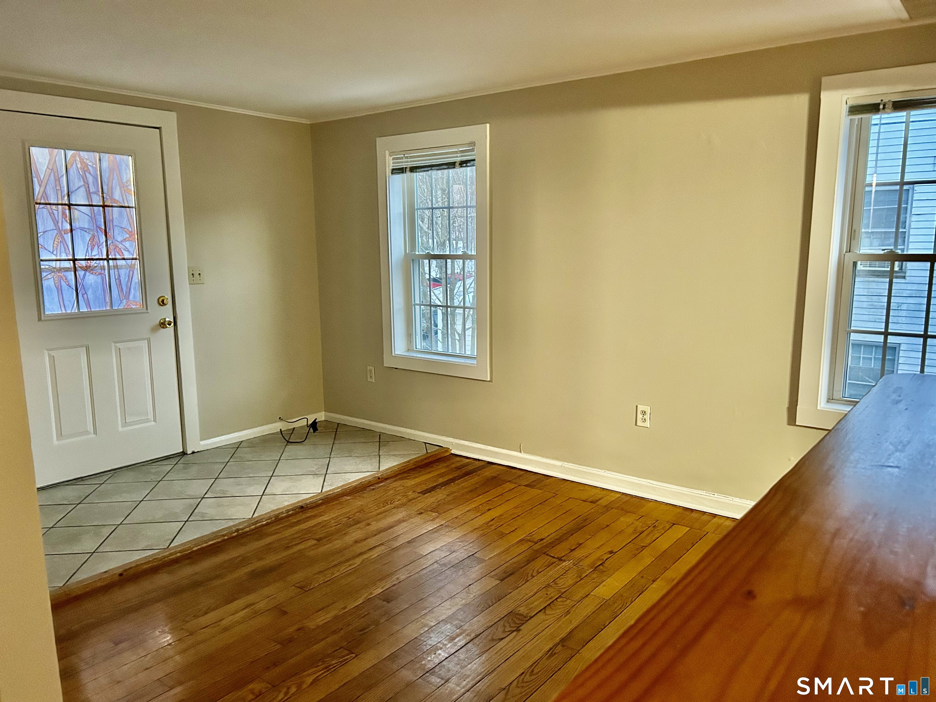 Freshly painted, new counter tops, new appliances - including the one unit washer / dryer, new tub/shower enclosure. Ready for immediate occupancy. Bright, sunny unit - pics show last bit of painting and clean up is being completed, but it's ready to show. One large bedroom, and one bedroom is small, perfect for home office, child, or a large walk in closet!! Living room and bedrooms have hardwood flooring, bar shelf in living room makes for a handy eating space. This is a second floor unit. Square footage is approximate. Preference is no pets, but will discuss on case by case basis.
