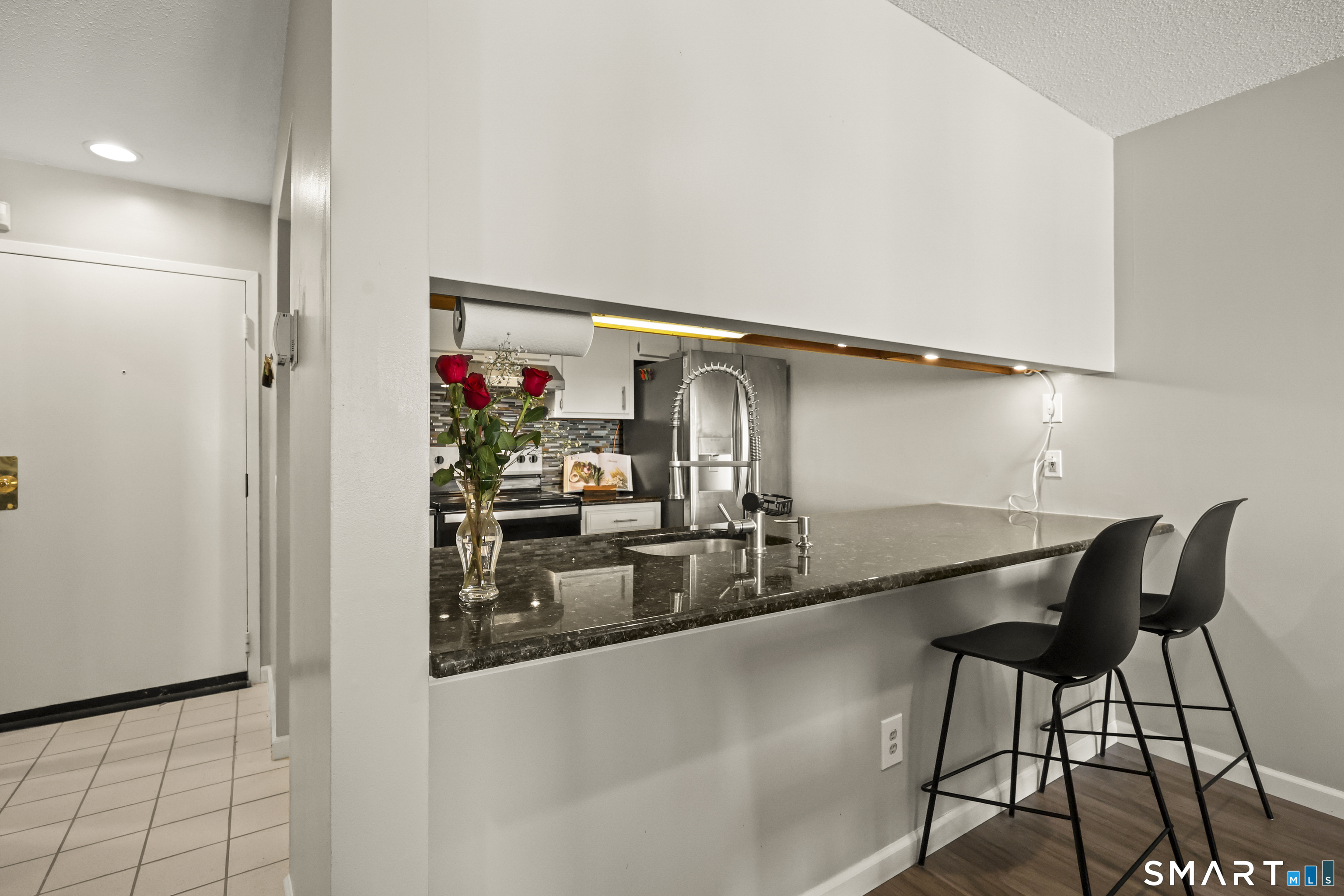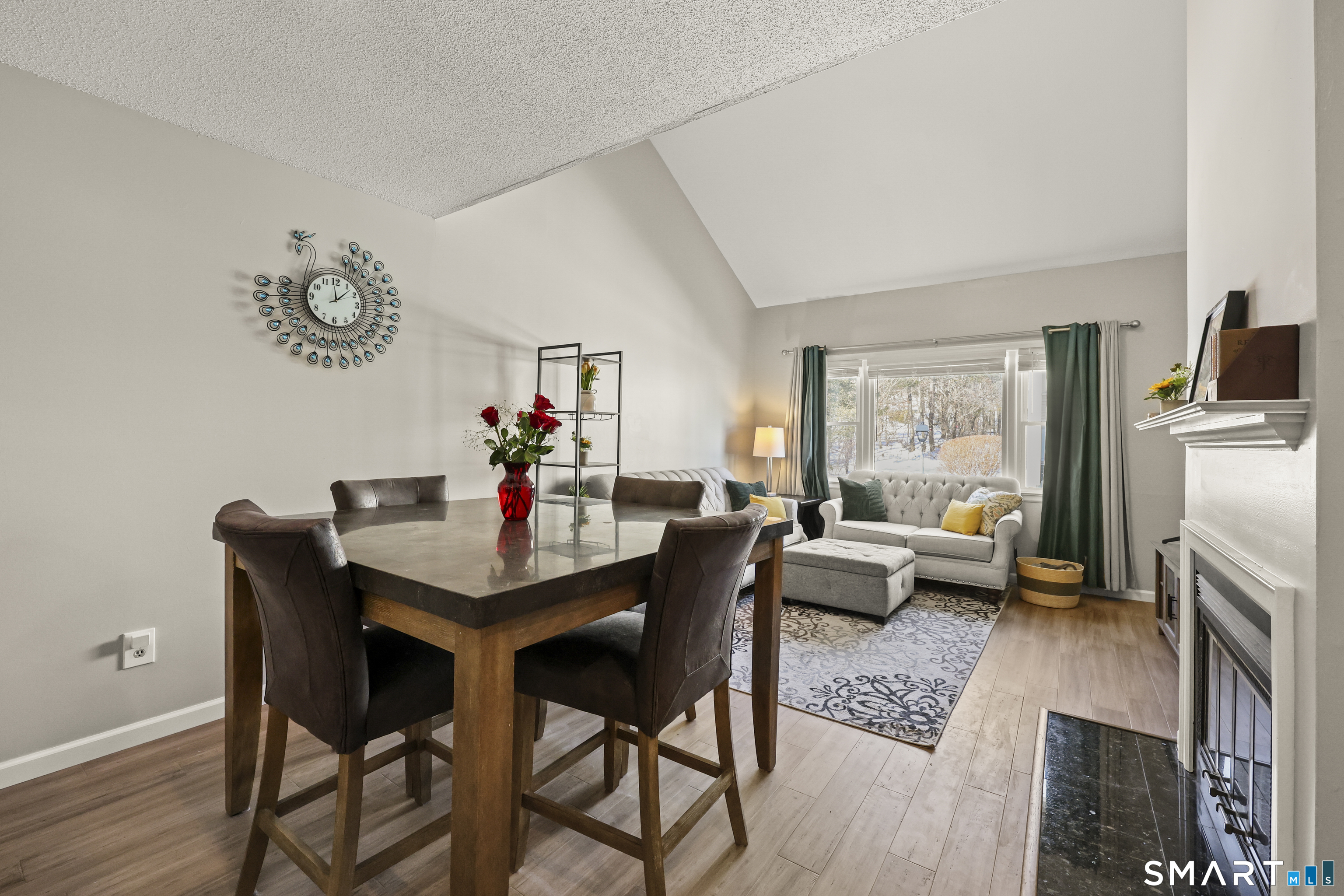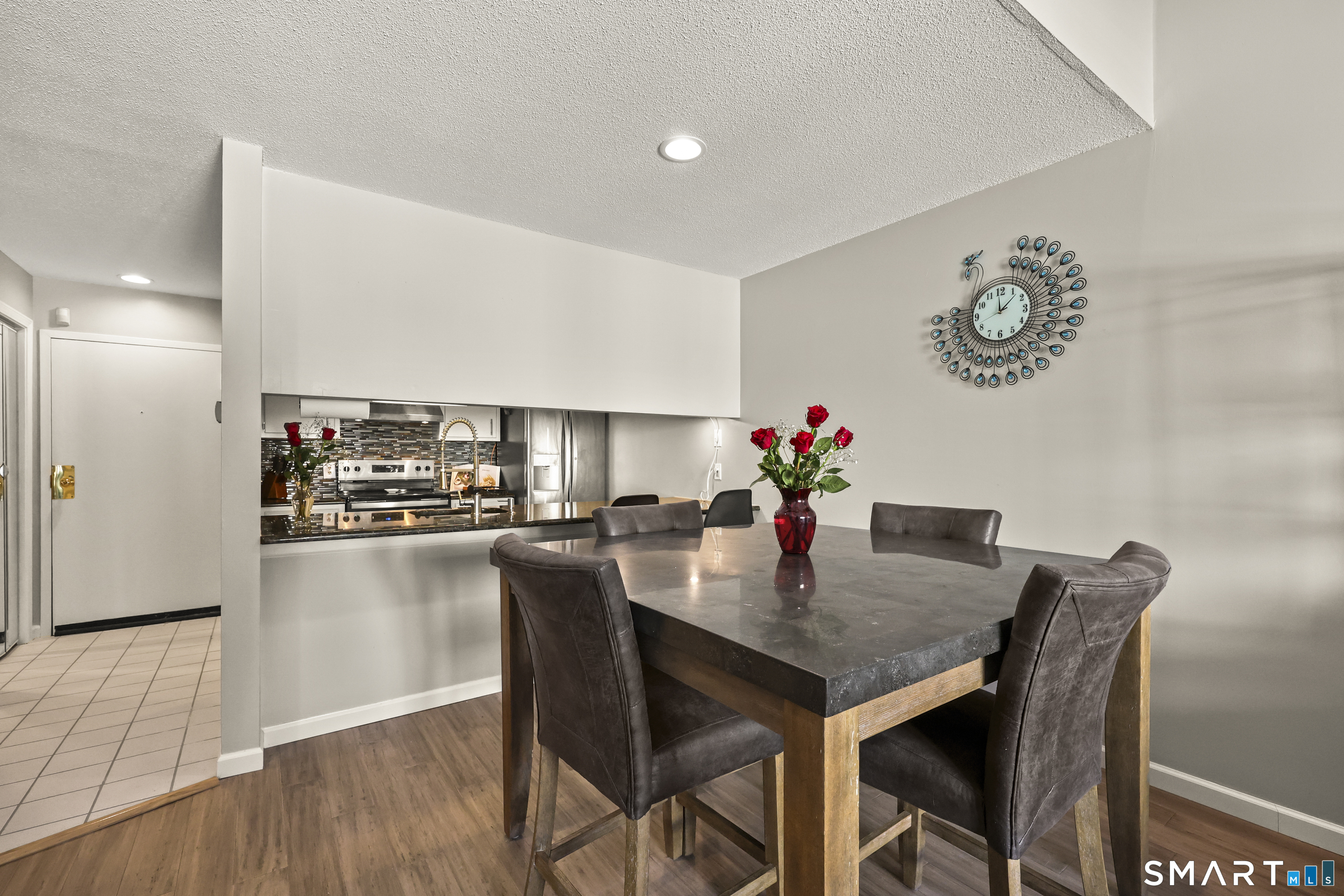 Discover this stunning two-bedroom, two bathroom renovated townhouse condo, rarely available unit in the Cliffside complex! Cliffside is a small community tucked away on the west side of Rocky Hill surrounded by a neighborhood of single-family homes. This spacious condo has many features, new engineered bamboo flooring downstairs in the living & dining area, inviting open floor plan that seamlessly blends living with comfort. As you enter, you are greeted by a tiled foyer complete with a large closet, perfect for storing shoes & coats. The expansive living & dining area is highlighted by a cozy fireplace, making it an ideal space for relaxation or entertaining guests. The galley-style kitchen boasts elegant granite countertops & stainless-steel appliances, along with a generous breakfast bar that invites casual dining. This home features two primary bedrooms, providing flexibility & privacy for occupants (2nd floor has its own separate outside door). One primary bedroom is conveniently located on the main floor(wood floor) while the second, complete with a Walkin closet, is situated upstairs for added seclusion. Don't miss this opportunity to own a beautifully renovated condo that combines style, functionality, & a fantastic layout. Garage(#26) separate &extra storage adds to this condo's appeal.