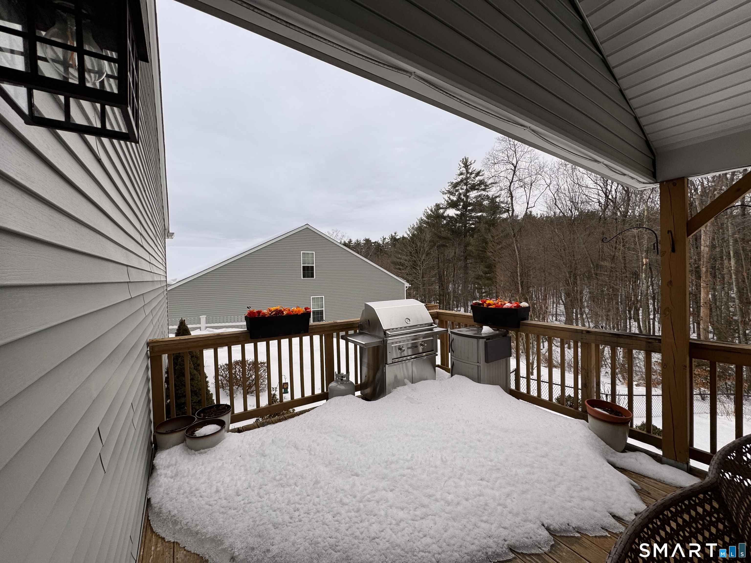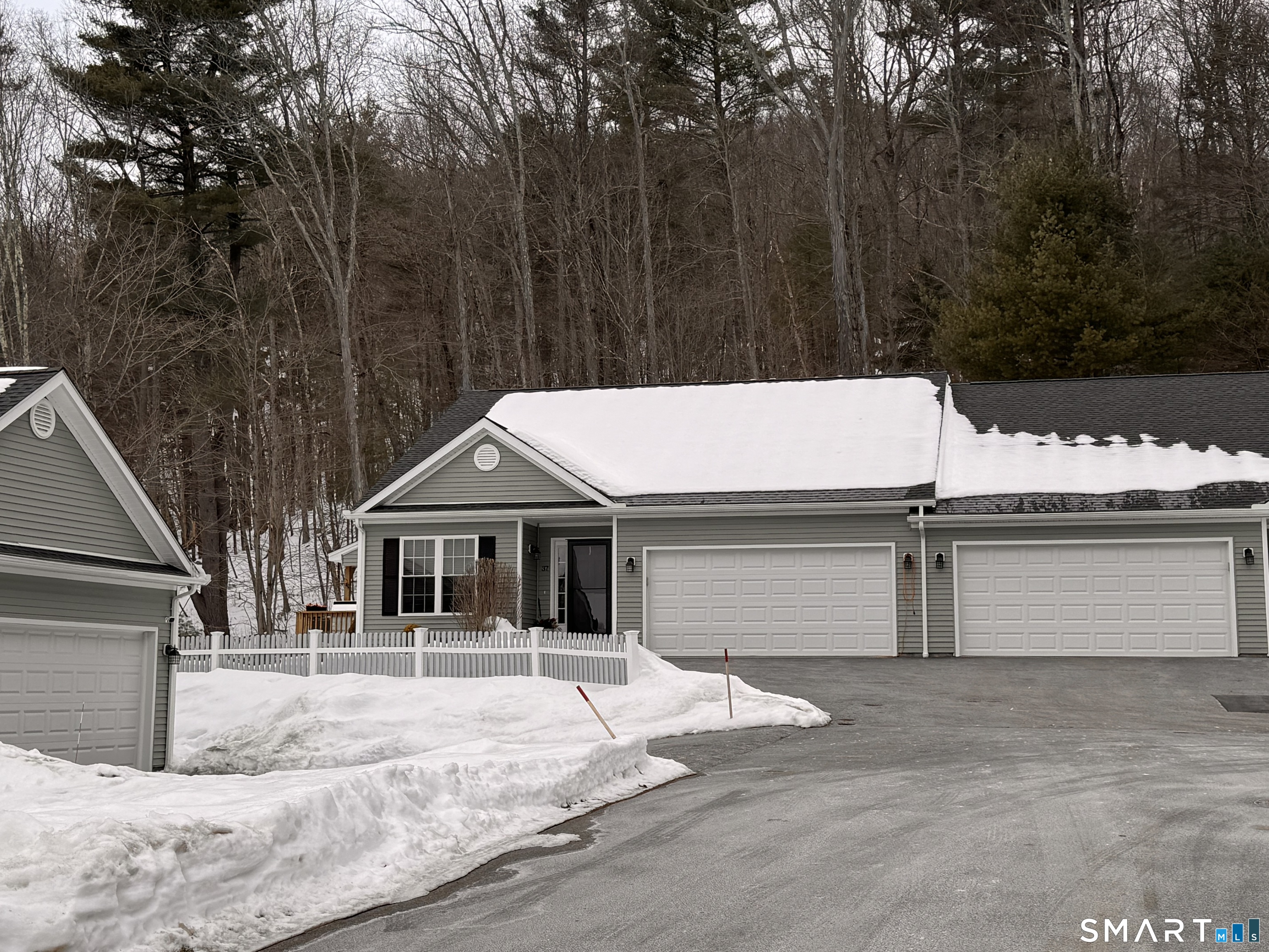 Coming Soon First time offered! Welcome to Whispering Pines Village, a highly desirable 55+ community conveniently located with easy access to major interstates and everyday amenities. This exceptional not quite 7 year unit is the original developer's residence and is ideally situated in a prime location within the complex. The main level offers 1,396 sq. ft. of open-concept living with vaulted ceilings, hardwood floors throughout, and a spacious living room featuring a gas fireplace. The kitchen is appointed with granite countertops, stainless steel appliances, and a slider leading to a private covered deck. The primary suite includes a walk-in closet and full bath, while a second bedroom (currently used as an office), an additional full bath and main-level laundry complete the first floor. The finished lower level adds approximately 740 sq. ft. of versatile living space, including a bedroom, full bath, cozy den, and small home office with walk-out access to a covered patio and fenced-in yard perfect for a small dog. Additional highlights include a two-car garage and ample parking. A rare opportunity to own a thoughtfully designed, spacious home in a peaceful and well-maintained community. Enjoy Low Condo Dues......