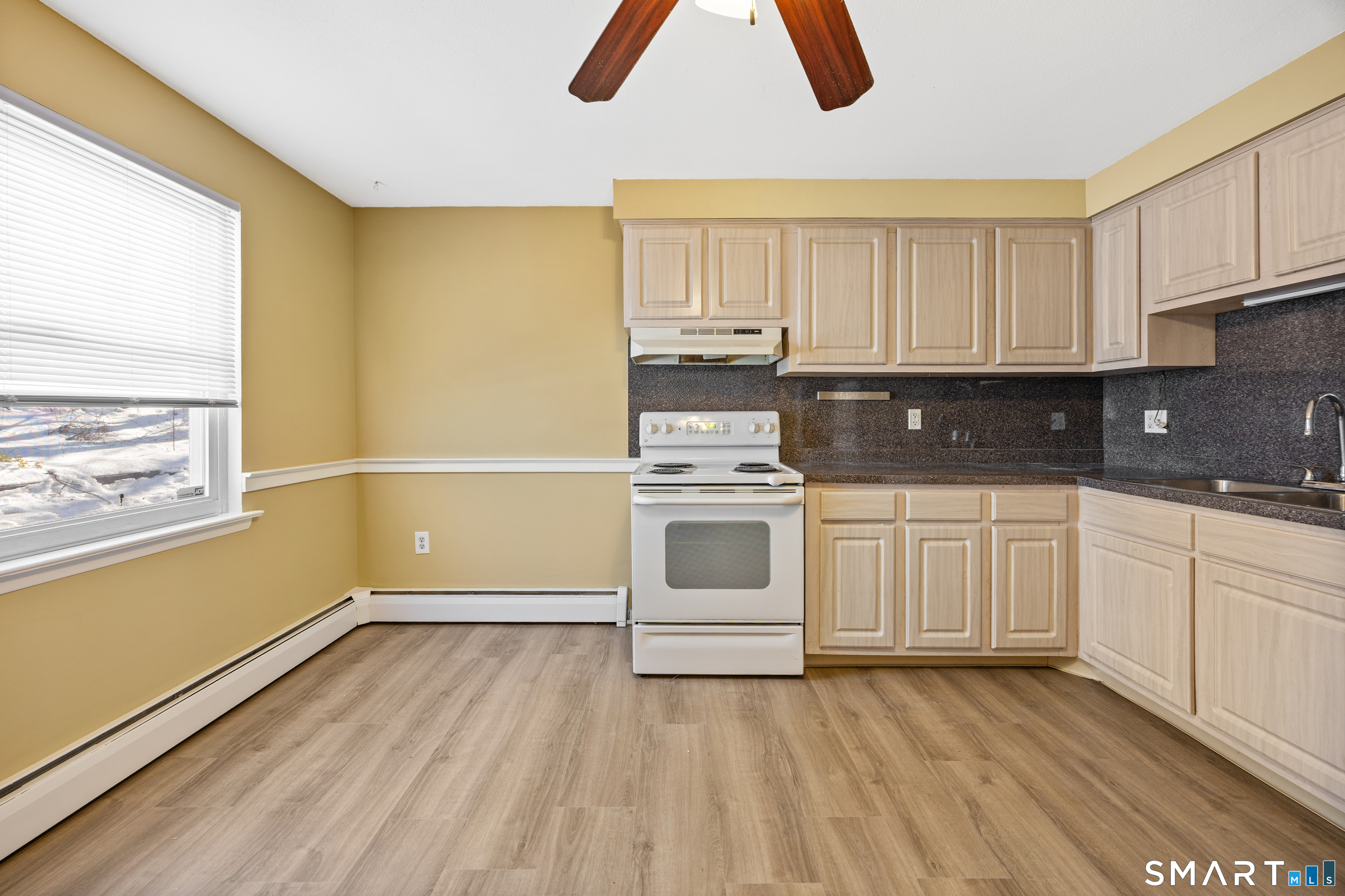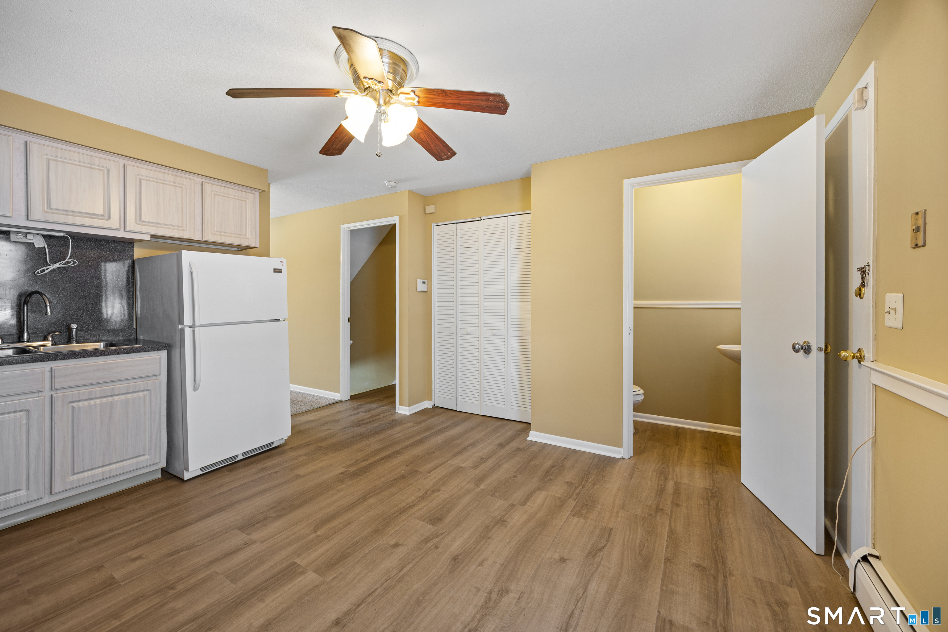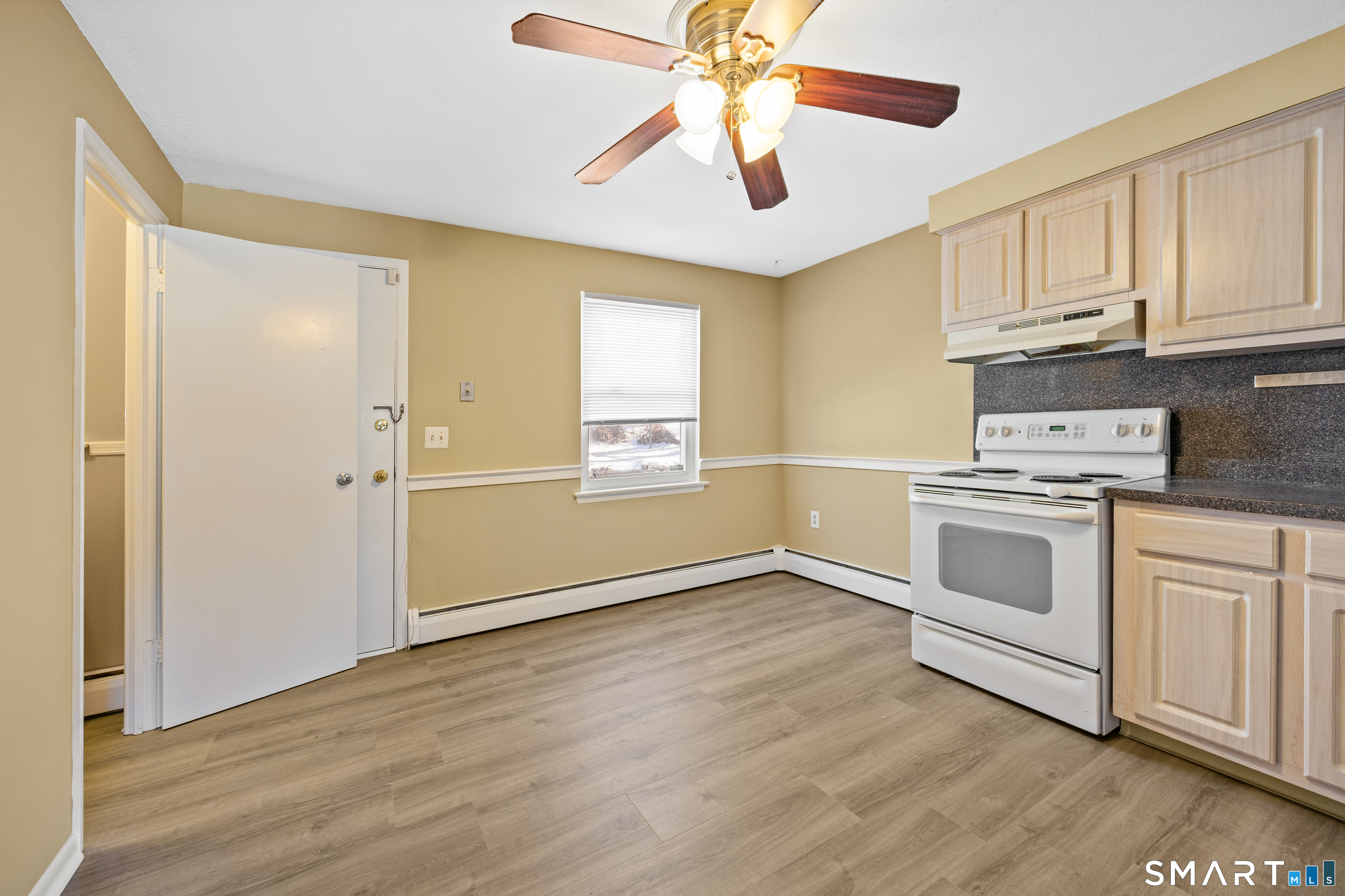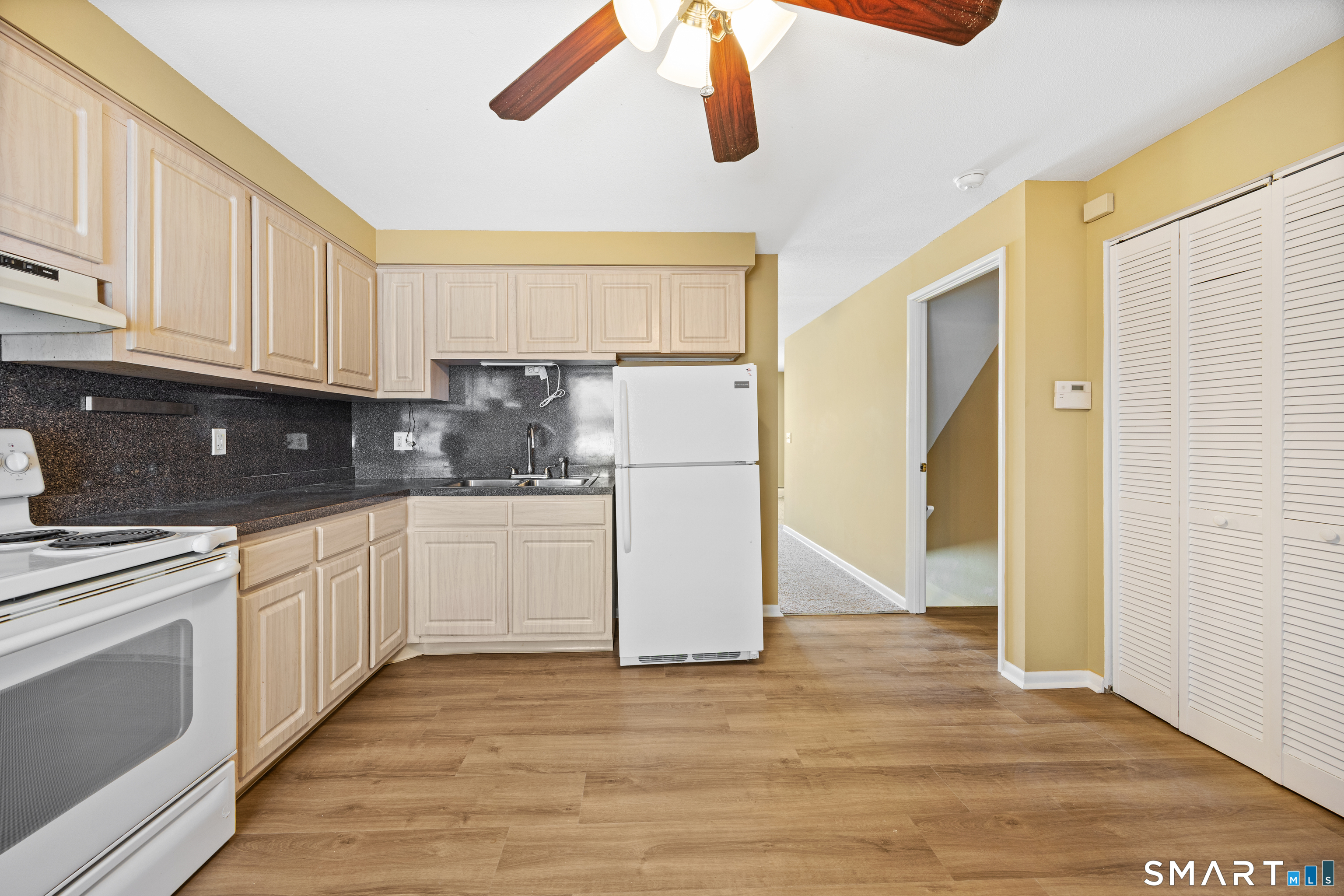Welcome to Terrace Gardens in Wallingford-an affordable townhouse-style unit with smart space, fresh updates, and a location that keeps life convenient. Step inside to a flexible lower level that can adapt to the way you live: create a cozy bonus room, a work-from-home setup, a hobby space, or a home gym. Just behind it, you'll find a laundry room with extra storage to keep things organized and out of sight. Head upstairs to the main living level where the spacious kitchen shines with **brand-new flooring** and a nearby half bath for everyday ease. The open dining and living room combination offers plenty of room for hosting, relaxing, and spreading out-whether it's a quiet night in or a full house for game day. The entire unit has been **freshly painted**, giving it a clean, move-in-ready feel from top to bottom. Upstairs, you'll find two comfortable bedrooms featuring hardwood floors and a full bathroom. With the updates already done, there's truly nothing to do but bring your furniture and settle in. Added value comes from the monthly HOA fee, which **includes heat and hot water**-a big help for budgeting. Plus, Wallingford is known for municipal electric service and overall lower tax structure compared to many nearby areas, adding to the appeal of long-term affordability. Close to shopping, restaurants, and everyday essentials-and just about a minute to the highway for commuting convenience. 1st Buyer irresponsibly rescinded within hours of acceptance.