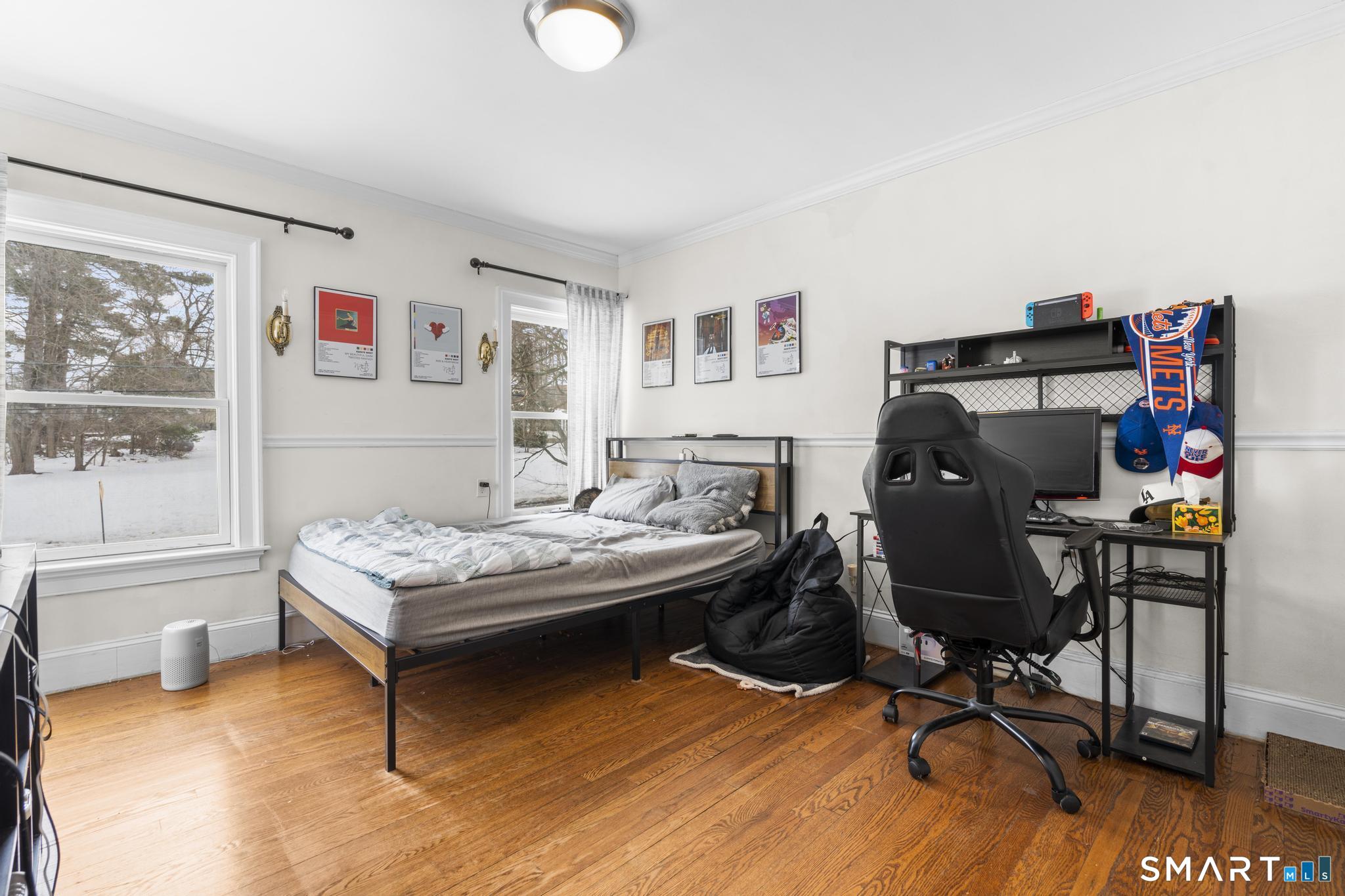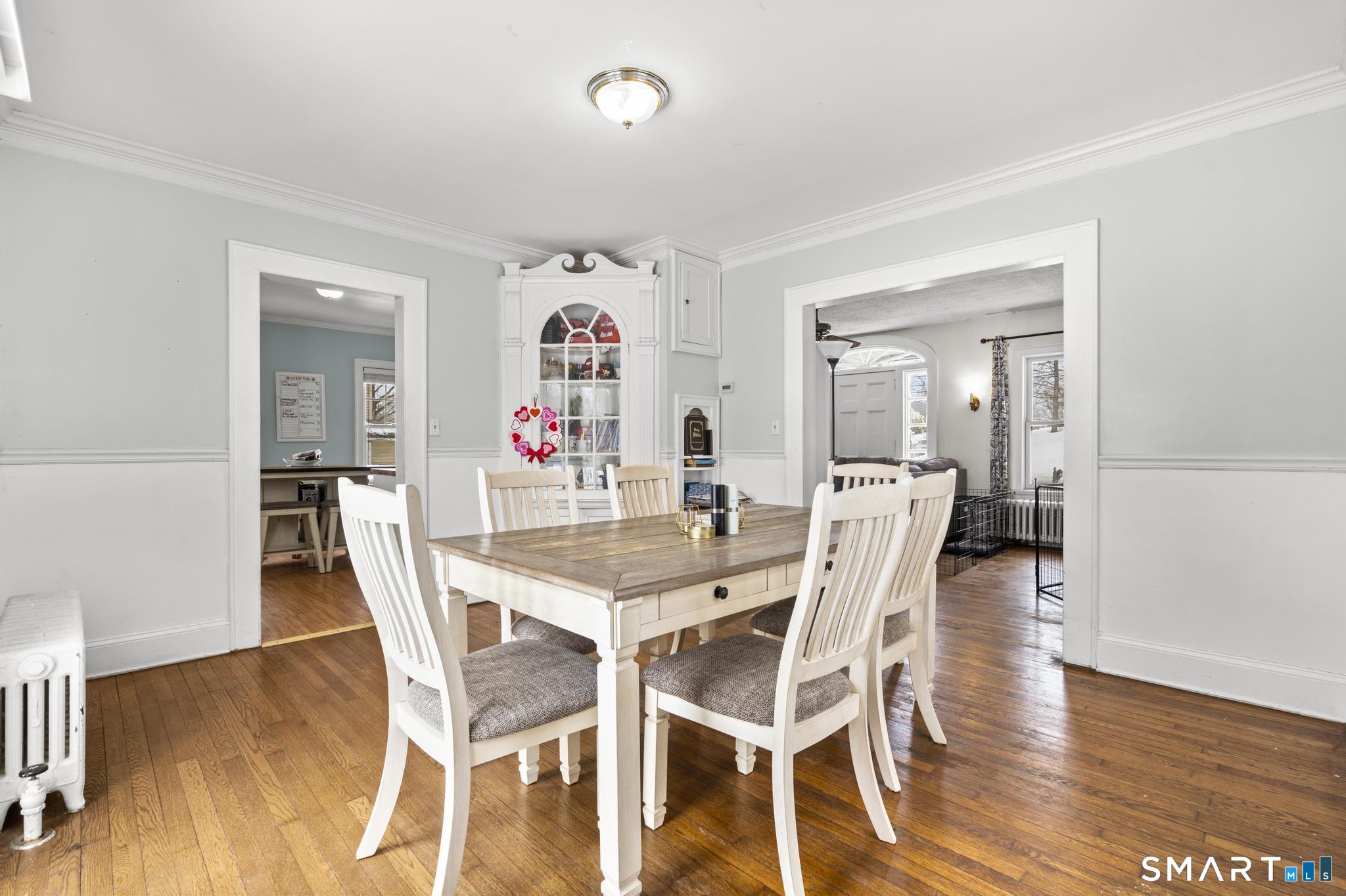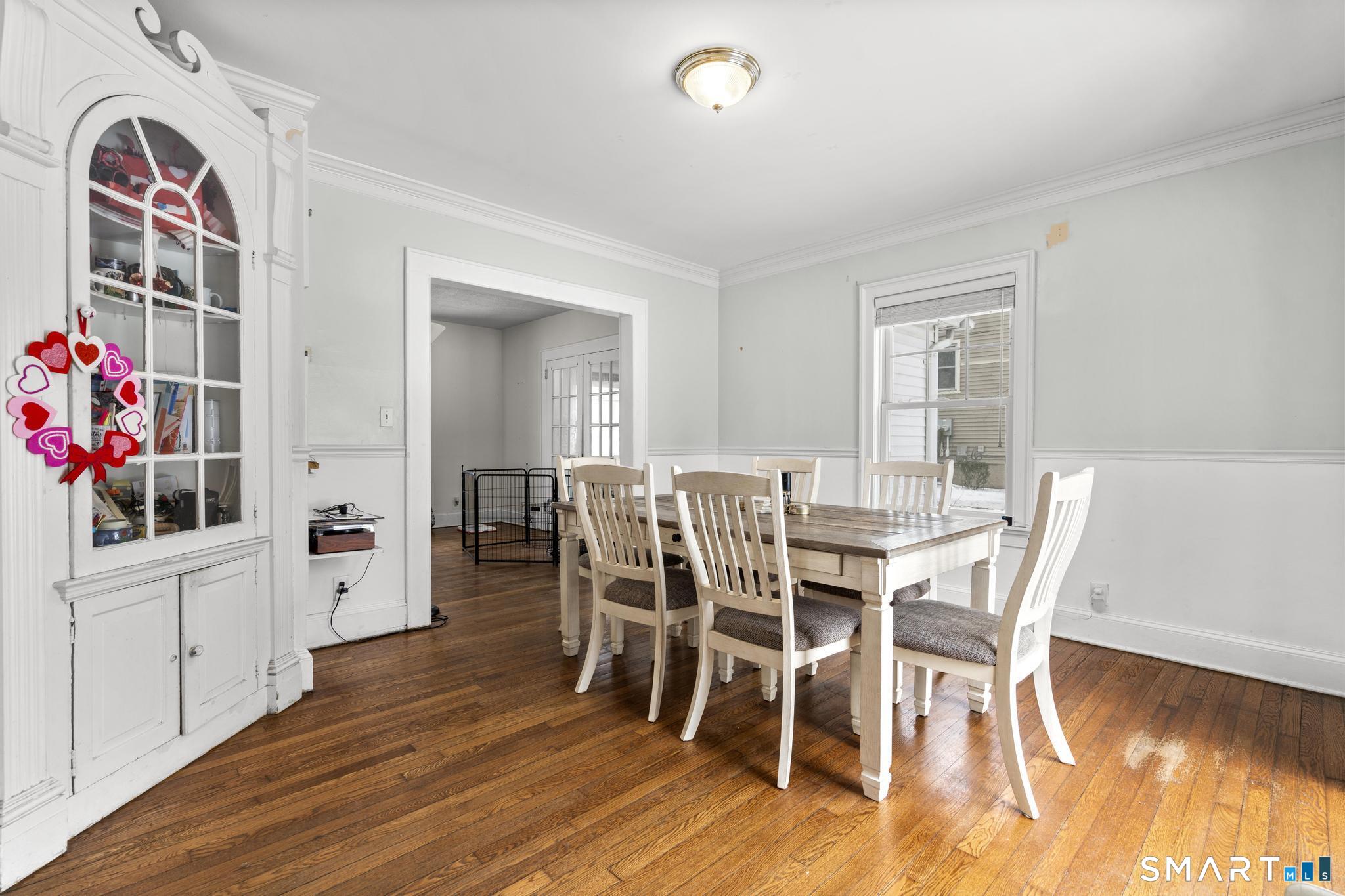 Charming and well-maintained Colonial in a desirable location just minutes to major highways, shopping, and parks. This bright and inviting home features ceramic tile floors, a spacious living room with fireplace, formal dining room, dedicated office, and hardwood floors throughout. Walk-up attic offers great storage or expansion potential. Detached two-car garage, level yard, shed, and fenced garden perfect for outdoor enjoyment. Major updates include Andersen Low-E windows, newer roof, and blown-in insulation for added energy efficiency. Great opportunity to add your personal touch and enjoy the wooden patio all summer long!