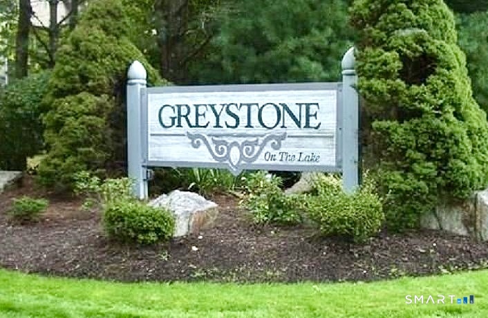 Welcome to Greystone on the Lake, a highly sought-after community offering stunning, one-level living at it's best. This elegant ranch, end unit, features convenient entry with only a few steps from both the attached 2-car garage and front door. The open floor plan showcases soaring volume ceilings, gleaming hardwood floors, clean neutral interior paint, and newer carpeting in all bedrooms. The beautifully updated kitchen features new granite countertops, new tiled backsplash, new sink faucets, new gas oven range, new dishwasher, new microwave, and newer refrigerator. The spacious primary suite offers abundant closets and a luxurious bath with whirlpool tub, walk-in shower, and double-sink vanity. Enjoy peaceful, wooded views from the private deck accessed through sliders from the living room. The living room also has a recently commissioned custom oak trim surrounding the gas fireplace. Main level laundry includes both washer and dryer. A huge walk-out basement provides exceptional storage or future living space. Quiet cul-de-sac location with a short walk to the pool completes this exceptional offering. Please read agent to agent remarks prior to submitting an offer.
