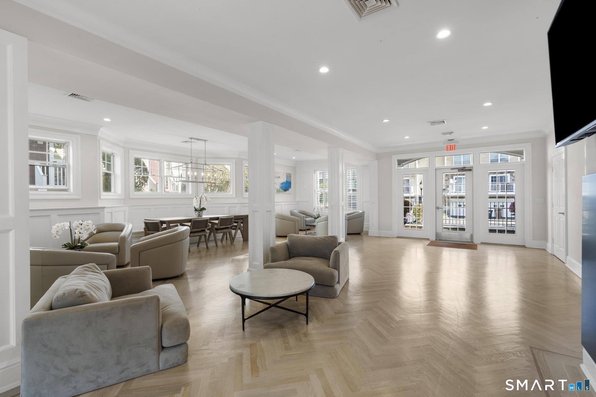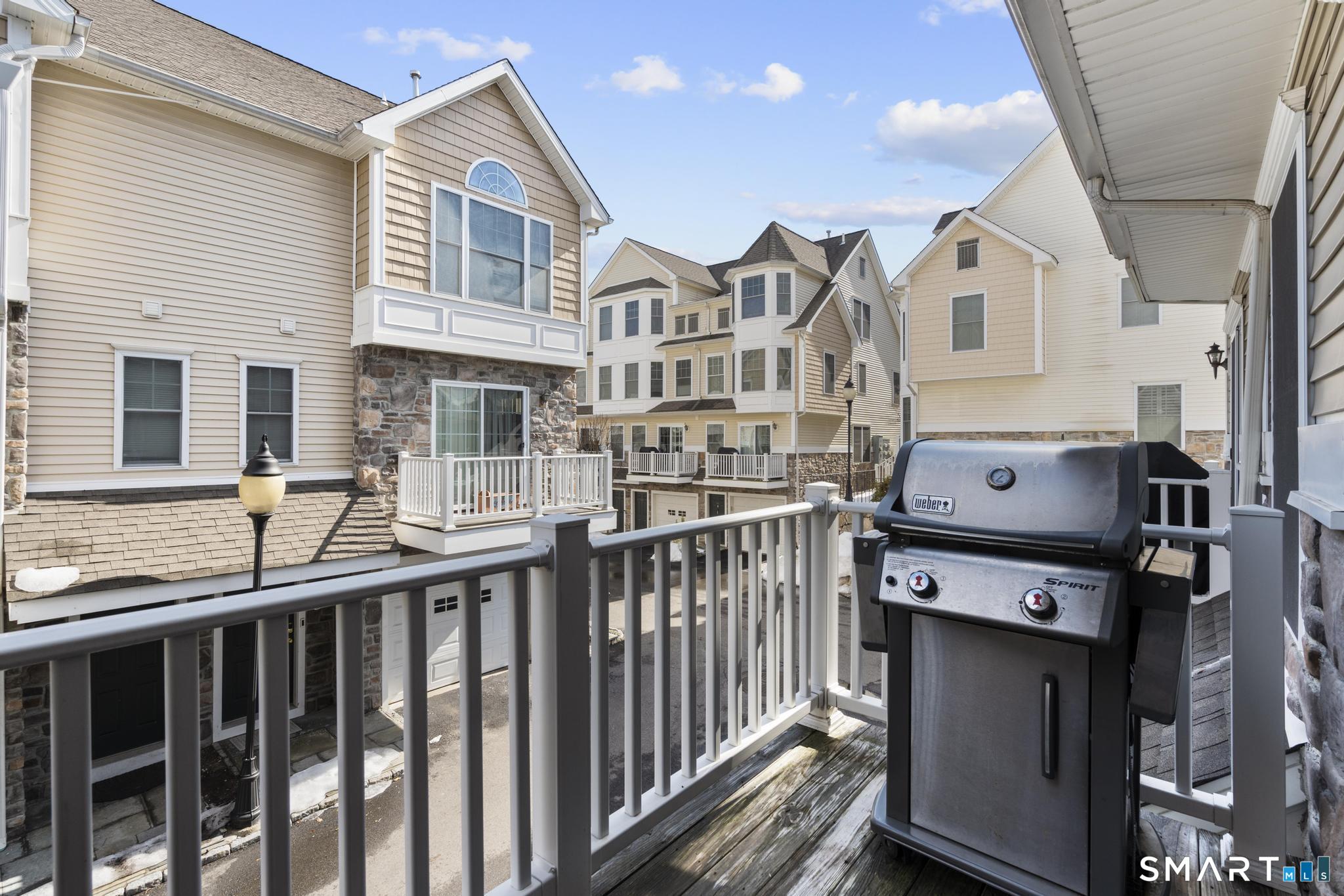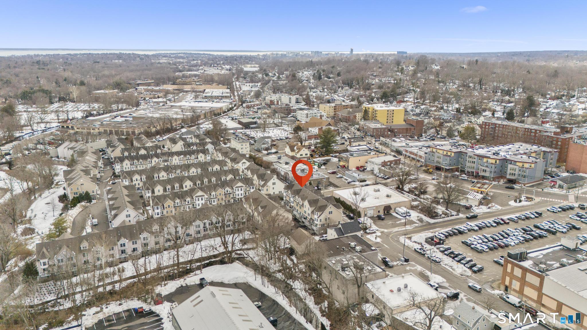 Refined living meets everyday convenience in this beautifully maintained rare 3 bedroom, 1.5 bath townhouse with a versatile 3rd floor offering an ideal third bedroom plus an office, located in the highly desirable River's Edge complex on the Darien/New Canaan border. The main level features hardwood floors, a spacious open-concept living and dining area, and an eat-in kitchen appointed with granite countertops, stainless steel appliances. Sliders lead to a private balcony, perfect for relaxing outdoors. The primary suite is a true retreat, showcasing cathedral ceilings, oversized windows, and a large walk-in closet with custom shelving. Tastefully designed second bedroom features shiplap accent wall & custom window treatments throughout. The upper-level provides exceptional flexibility to suit a variety of lifestyle needs including a 3rd bedroom and an office nook. Additional highlights include a stunning laundry room, abundant storage, and an attached garage. Enjoy resort-style amenities including a pool, fitness center, and newly renovated clubhouse. Ideally situated in Springdale Village, this home offers walk-to-everything convenience-Springdale train, restaurants, shops, parks, library, and more-while remaining just 1.5 miles to golf, 2 miles to the Merritt Parkway, and 3 miles to I-95. A rare opportunity to move right into one of the area's most sought-after communities.