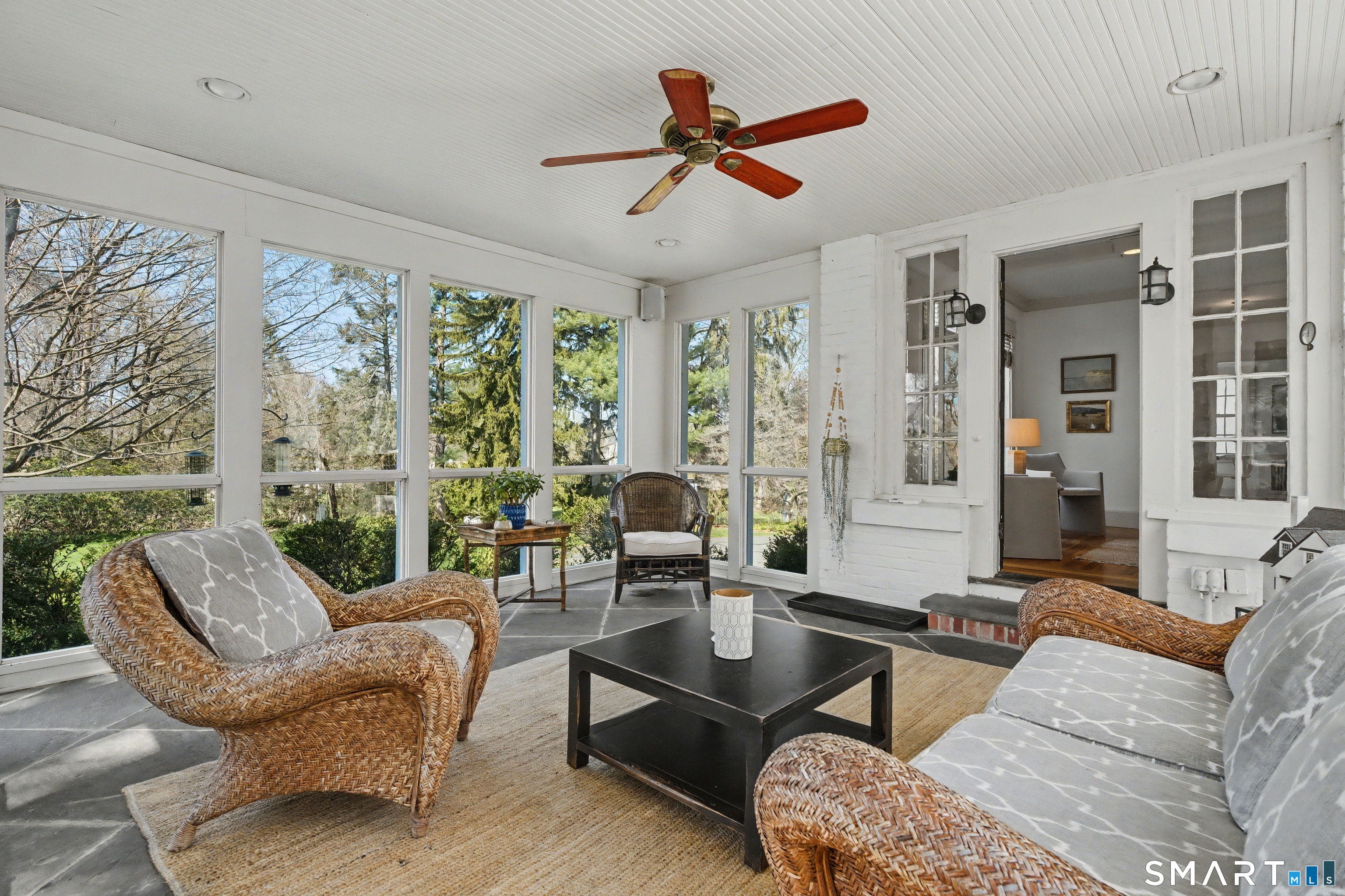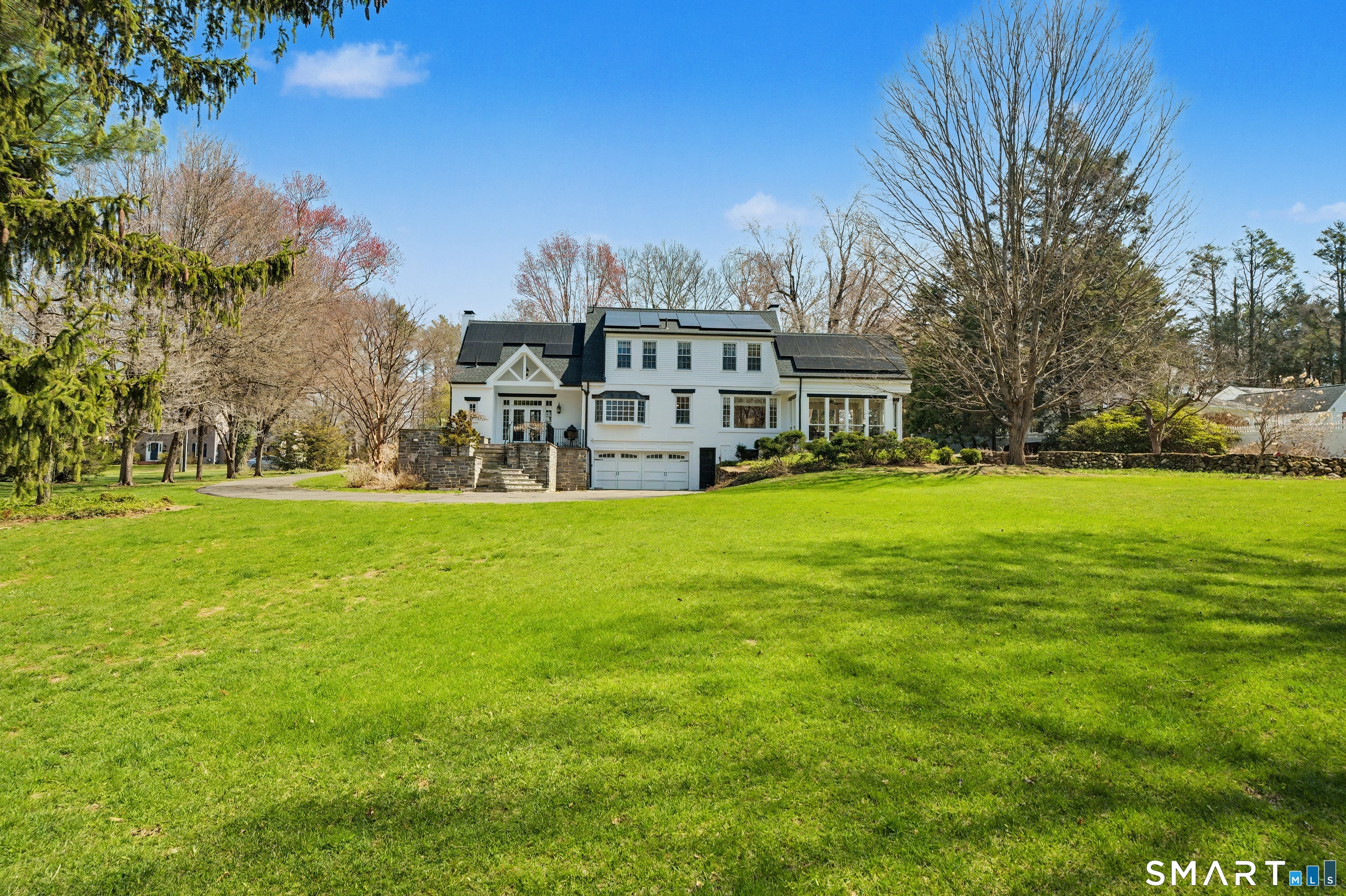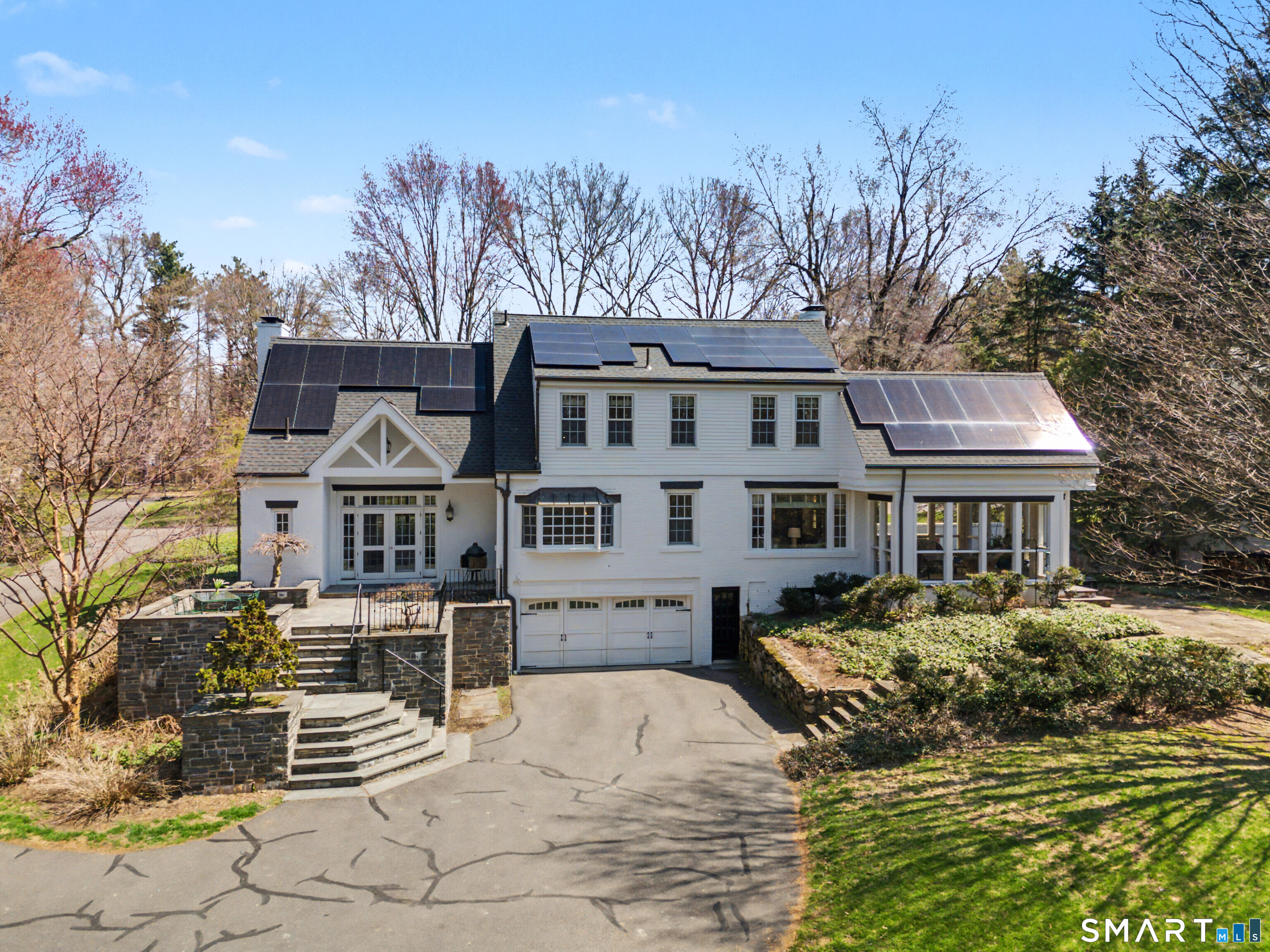 This classic 1927 brick home in the perfect Cheshire location stuns with details and design that are both elegant and practical. This nearly 3000 SQ FT house with 4 bedrooms and 2.5 baths is sited on just about an acre lot on a quiet and friendly cul-de-sac, just a short walk to the town center, library, and great restaurants and coffee shops. This home will delight year round as you enjoy your coffee on the three-season porch while the church bells ring from down the street, cozy up by the new high-efficiency wood burning insert in the living room, and entertain on the magnificent bluestone terrace overlooking the professionally landscaped backyard. Beautiful woodwork abounds with custom corner cabinets in the dining room, built-in bookcases in the living room and primary bedroom, custom cabinetry in the sunken family room, and crown moulding and hardwood floors with beautiful walnut inlays throughout the house. And even your daily routine will be enhanced by high-end details like the walk-in closet, Sub Zero refrigerator, newer induction stove, second floor laundry room with newer washer and dryer, and two car garage with EV charge plug. Recent upgrades include solar panels (purchased outright in 2024), 50-year roof shingles with copper flashing (2024), cold-weather heat pumps for heating and cooling (2024), and full exterior house paint (2025). It's easy to see why this special house has only been listed for sale a handful of times in its 100-year history.