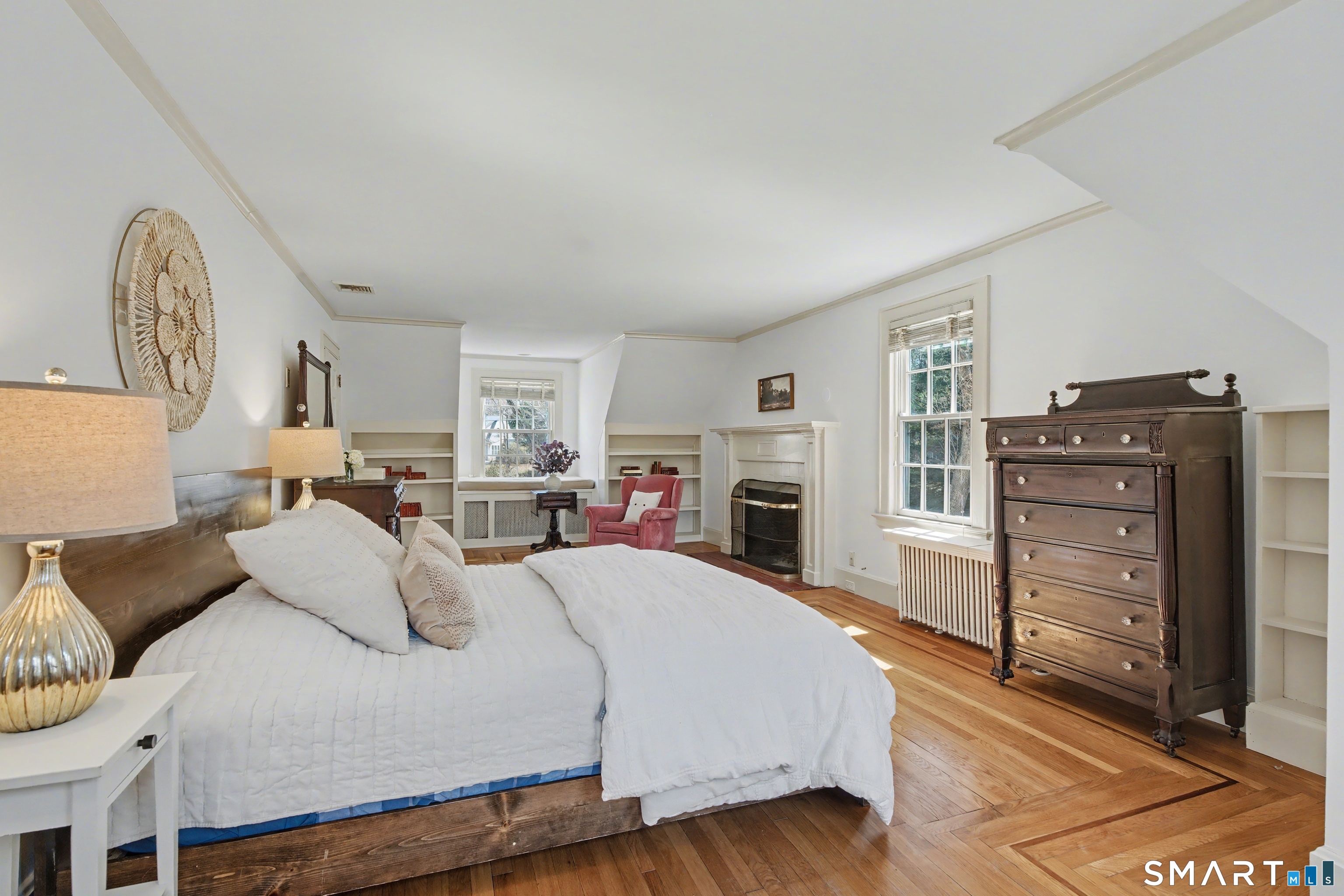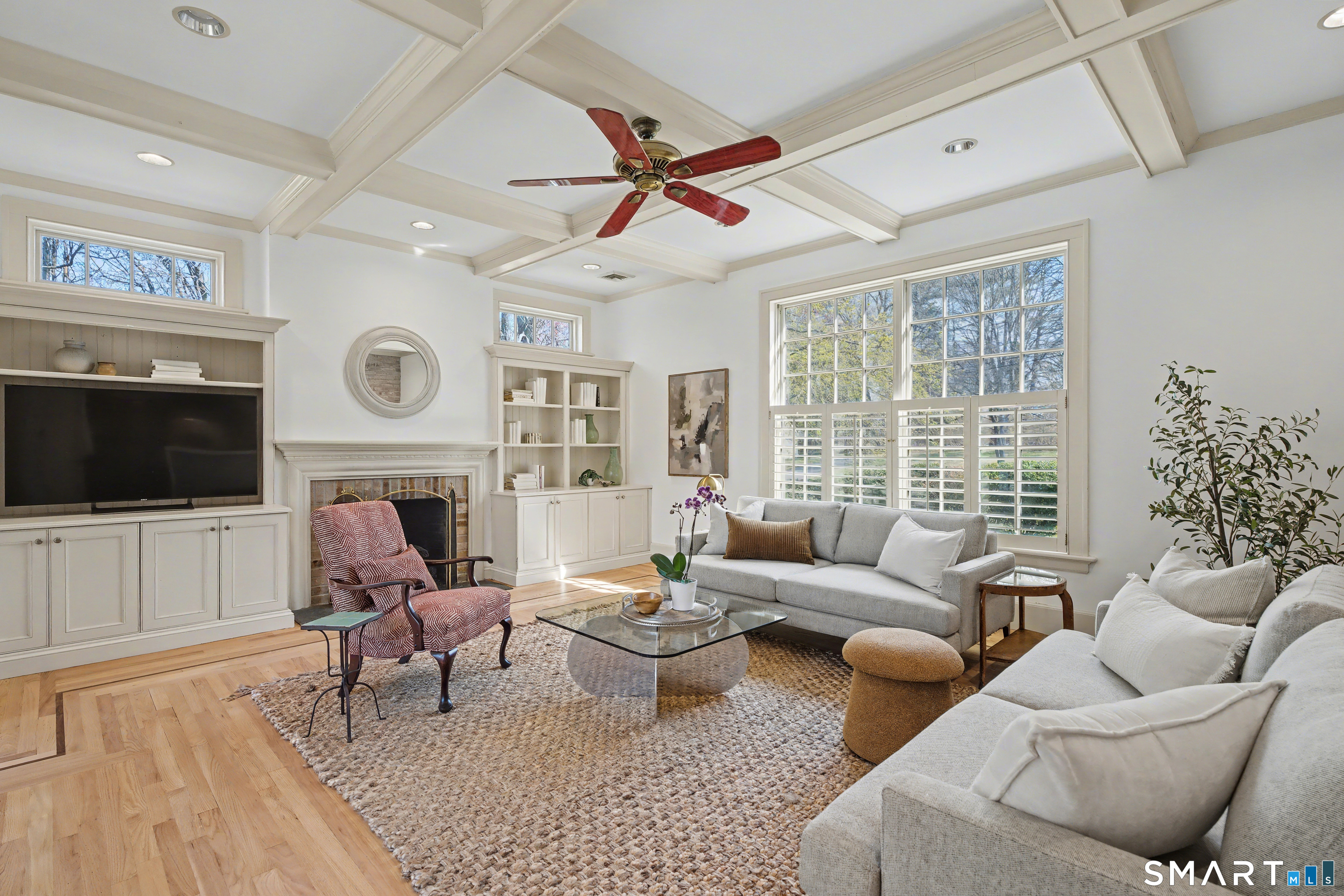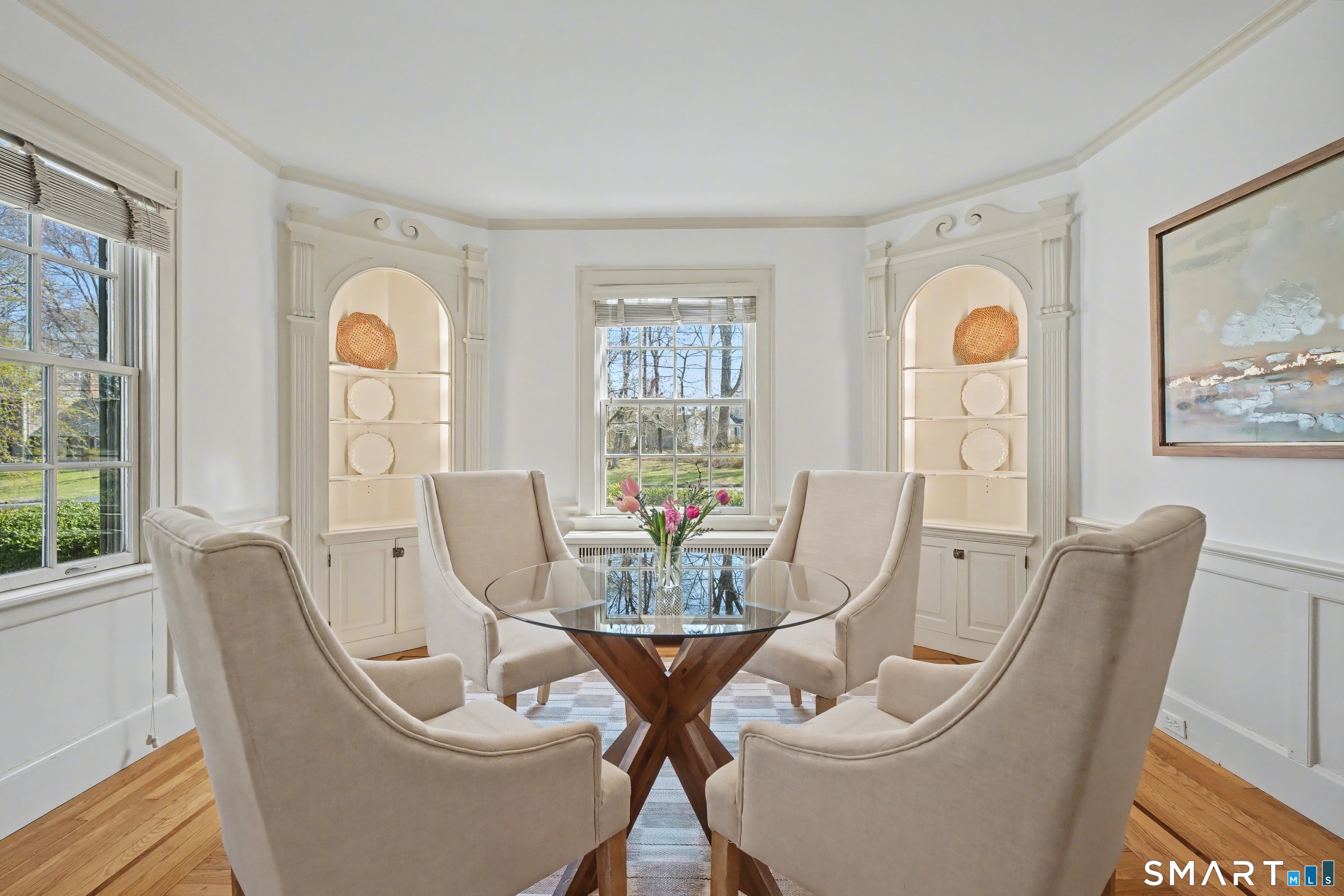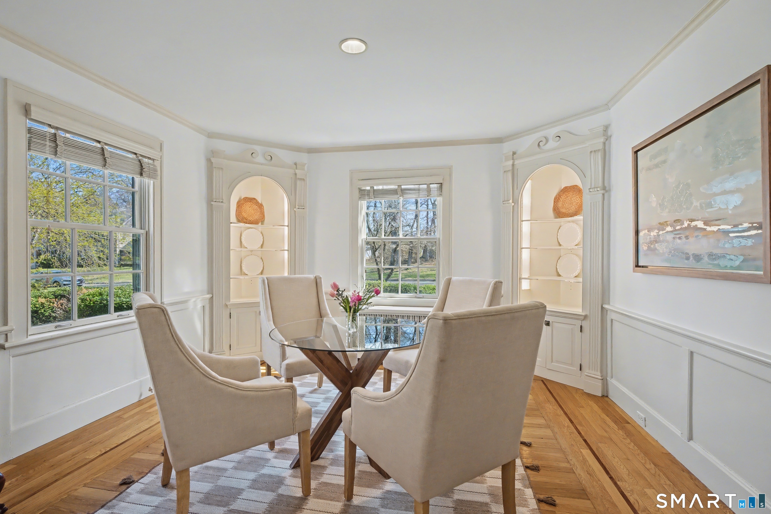 This classic 1927 brick home in the perfect Cheshire location stuns with details and design that are both elegant and practical. This nearly 3000 SQ FT house with 4 bedrooms and 2.5 baths is sited on just about an acre lot on a quiet and friendly cul-de-sac, just a short walk to the town center, library, and great restaurants and coffee shops. This home will delight year round as you enjoy your coffee on the three-season porch while the church bells ring from down the street, cozy up by the new high-efficiency wood burning insert in the living room, and entertain on the magnificent bluestone terrace overlooking the professionally landscaped backyard. Beautiful woodwork abounds with custom corner cabinets in the dining room, built-in bookcases in the living room and primary bedroom, custom cabinetry in the sunken family room, and crown moulding and hardwood floors with beautiful walnut inlays throughout the house. And even your daily routine will be enhanced by high-end details like the walk-in closet, Sub Zero refrigerator, newer induction stove, second floor laundry room with newer washer and dryer, and two car garage with EV charge plug. Recent upgrades include solar panels (purchased outright in 2024), 50-year roof shingles with copper flashing (2024), cold-weather heat pumps for heating and cooling (2024), and full exterior house paint (2025). It's easy to see why this special house has only been listed for sale a handful of times in its 100-year history.