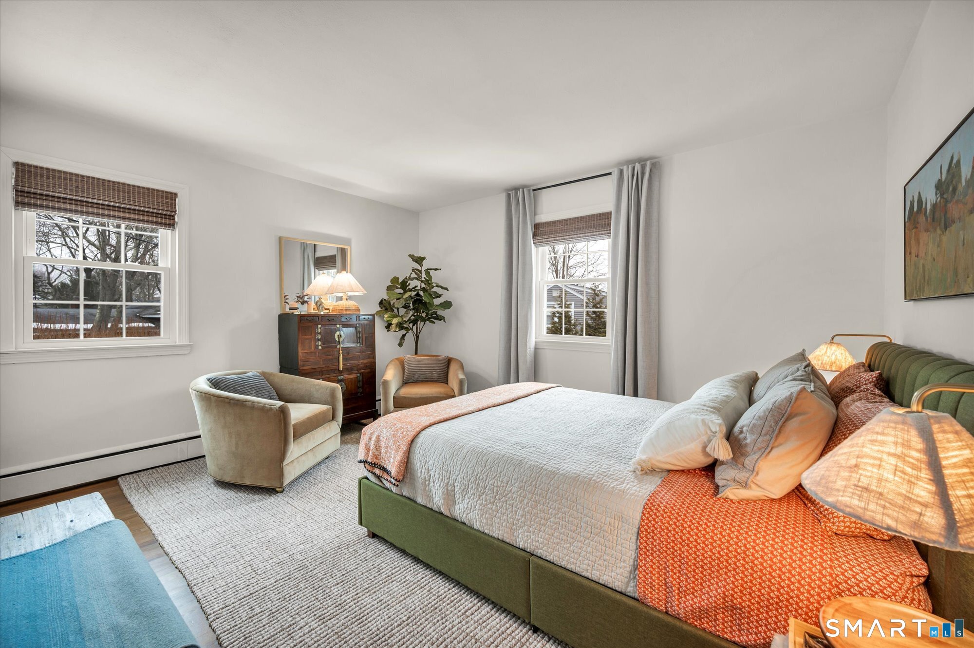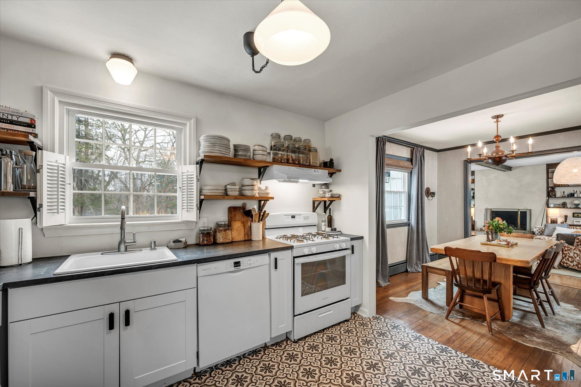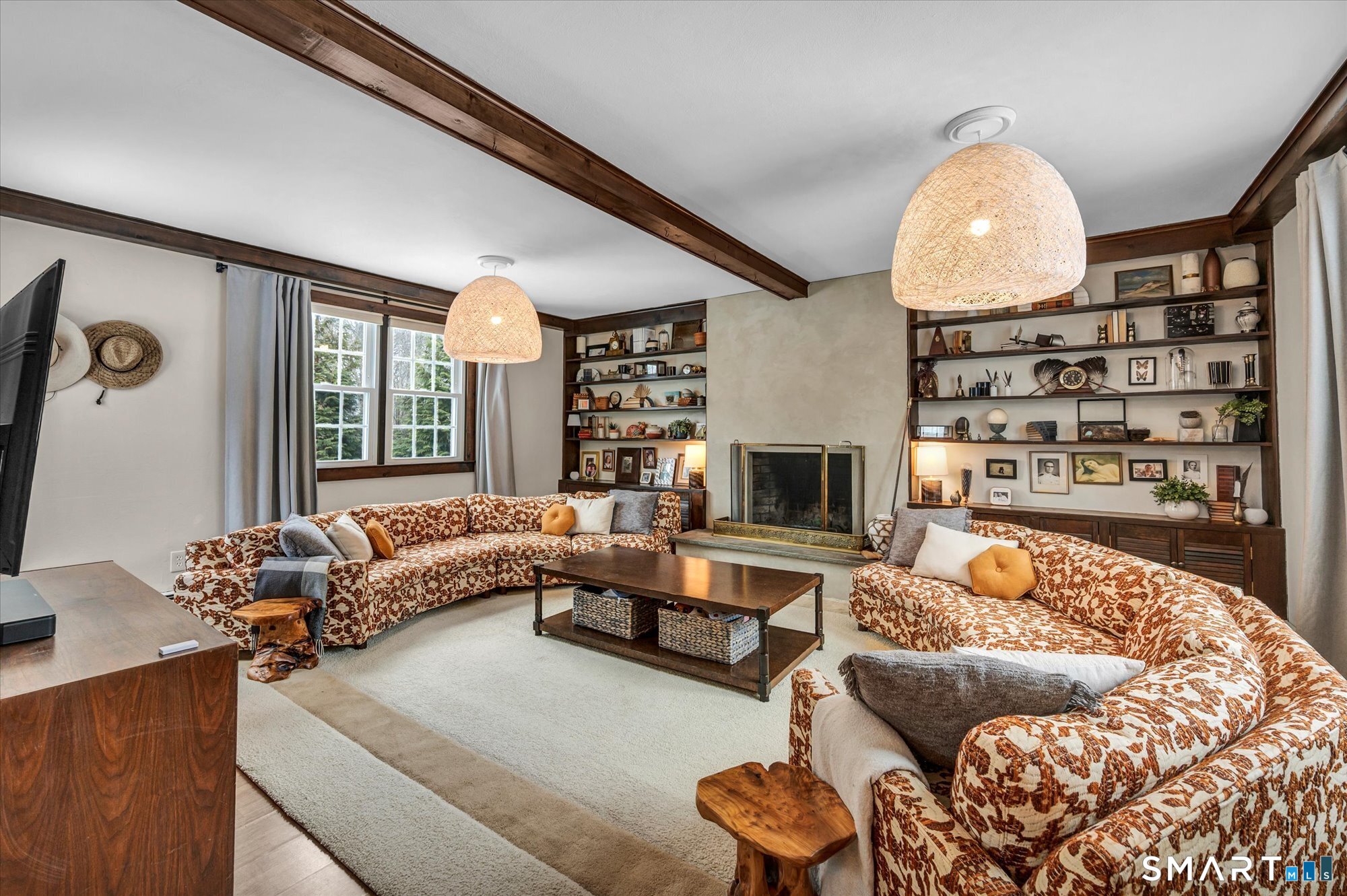 Welcome to 195 Hepburn Road, A meticulously maintained and thoughtfully updated four-bedroom, 21/2-bath home that blends timeless charm with everyday comfort. Step inside to a gracious formal living room anchored by a classic wood-burning fireplace - a warm and inviting space for gathering with family and friends. The updated kitchen showcases modern, custom finishes and flows seamlessly into the dining room and spacious family room, where a second wood-burning fireplace creates the perfect setting for relaxing or entertaining. Upstairs, you'll find three well-proportioned bedrooms along with a full bathroom. Privately situated on its own level, the primary suite offers a peaceful retreat with exceptional privacy. Timeless hardwood flooring runs throughout the home, adding warmth and character at every turn. The lower level provides flexible living space complete with a half bath, playroom, and media room - ideal for movie nights, recreation, or a home office. Outside, beautifully manicured gardens surround a welcoming fire pit area, perfect for quiet evenings or hosting guests. The Trex deck is sure to become a favorite spot during the warmer months - ideal for gatherings or simply enjoying your backyard oasis.