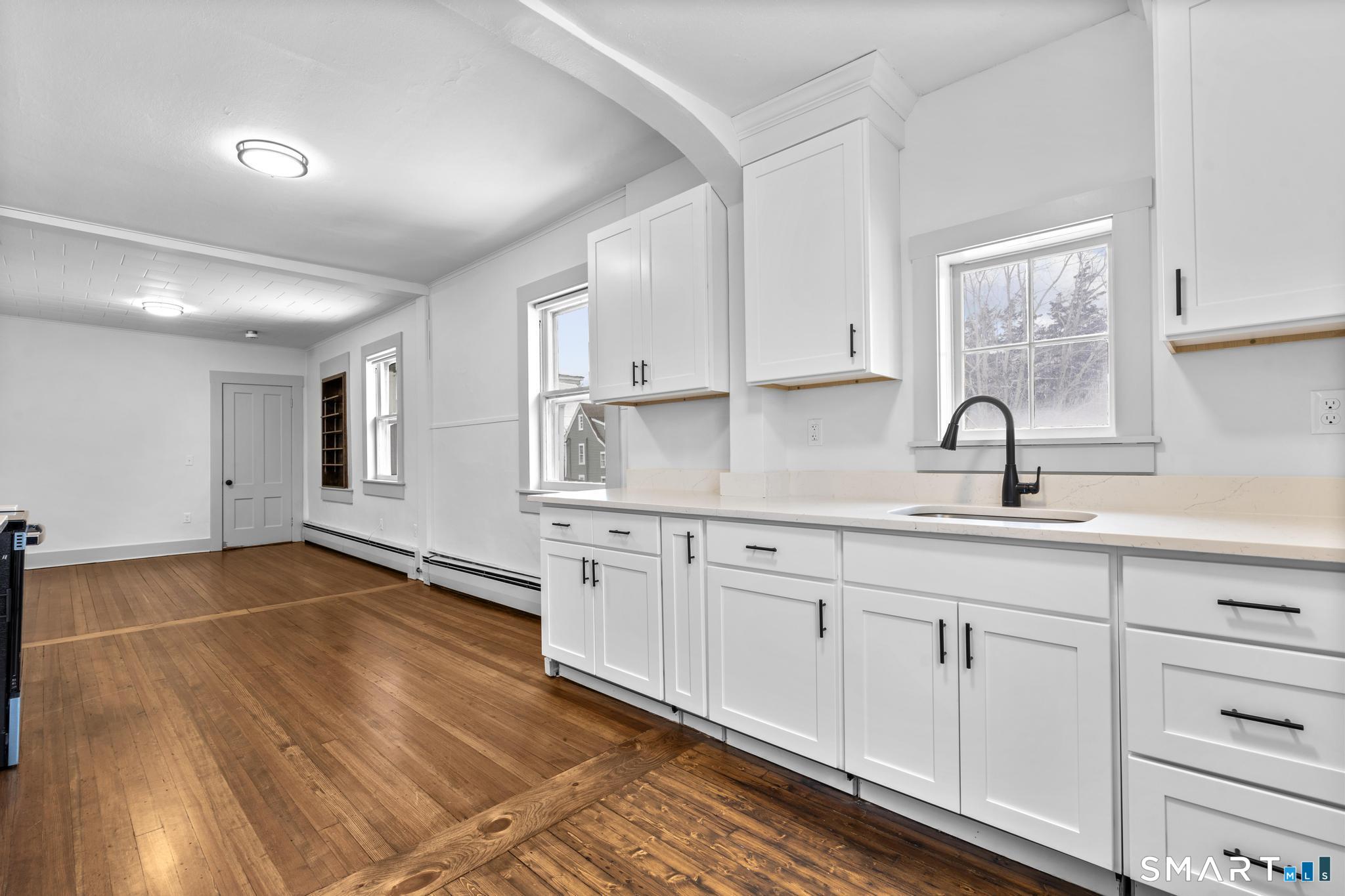 Ideally located in the heart of downtown Guilford, 26 Water Street is now officially available. Situated within the Guilford Green District, this property offers exceptional versatility with a wide range of permitted uses (see attached zoning regulations, Section 4.1). The existing use may continue as a non-conforming use if desired. The current layout is configured similarly to a multi-family residence OR single family with in law OR single family with home office as there are 2 floors each offering their own kitchens, bathrooms and separate rooms. The first floor features a renovated kitchen, open-concept living and dining area, two bedrooms, and a full bathroom. This space also presents an excellent opportunity for a first-floor home office, retail, or commercial use. The second floor mirrors the first, offering a kitchen, full bathroom, open-concept living and dining area, and two bedrooms. A walk-up attic provides additional storage. Both kitchens have been fully renovated with brand-new cabinetry, stainless steel appliances, and granite countertops. Additional updates include beautifully refinished hardwood floors throughout, fresh paint, new electrical and plumbing systems, updated flooring and fixtures, a new roof, and a new septic system. Built in 1926, the property offers over 1,800 square feet of living space, is serviced by city water, and is currently heated with oil.