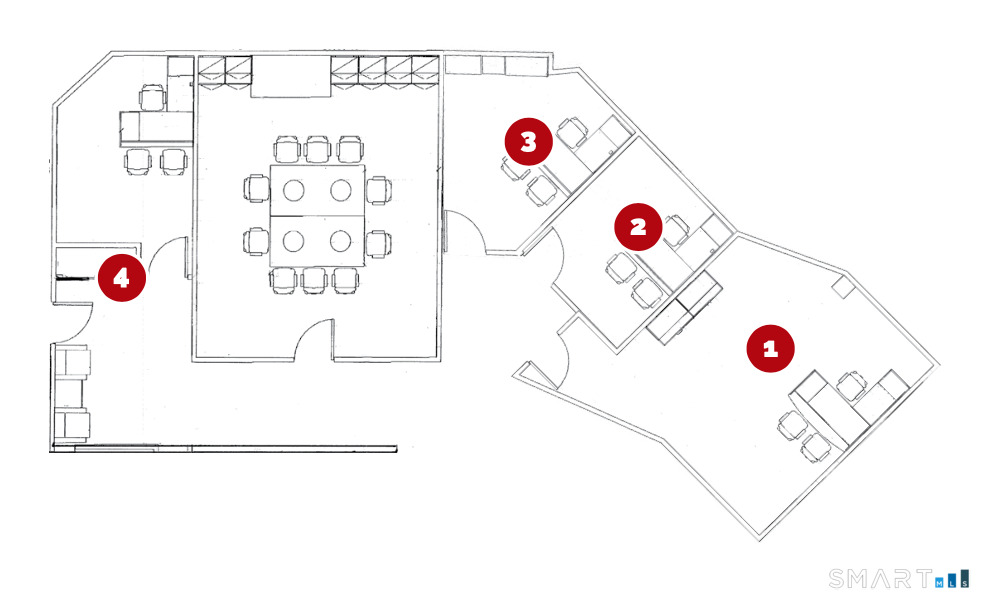 Top-level office space with shared kitchen and conference room. Delivered vacant and available in it's entirety of 1,447 SF for sale or for lease, or as individual office suites. Published pricing is for entire space, please contact listing agent for pricing on individual suites. The Executive Pavilion at 90 Grove Street is a highly regarded professional office building located in the heart of downtown Ridgefield. Just steps from Main Street, the property offers walkable access to premier restaurants, cafes, banks, retail boutiques, and municipal services, creating an exceptional environment for both tenants and clients. The building features elevator access, professional property management, and an on-site fitness center, providing convenience and added value for occupants. A diverse and established tenant mix including professional services, consultants, medical providers, and boutique firms, creates a dynamic and collaborative business atmosphere. With its central location, strong tenant community, quality amenities, and reputation as one of Ridgefield's premier business addresses, The Executive Pavilion offers an ideal setting for companies seeking both visibility and professionalism in downtown Ridgefield.