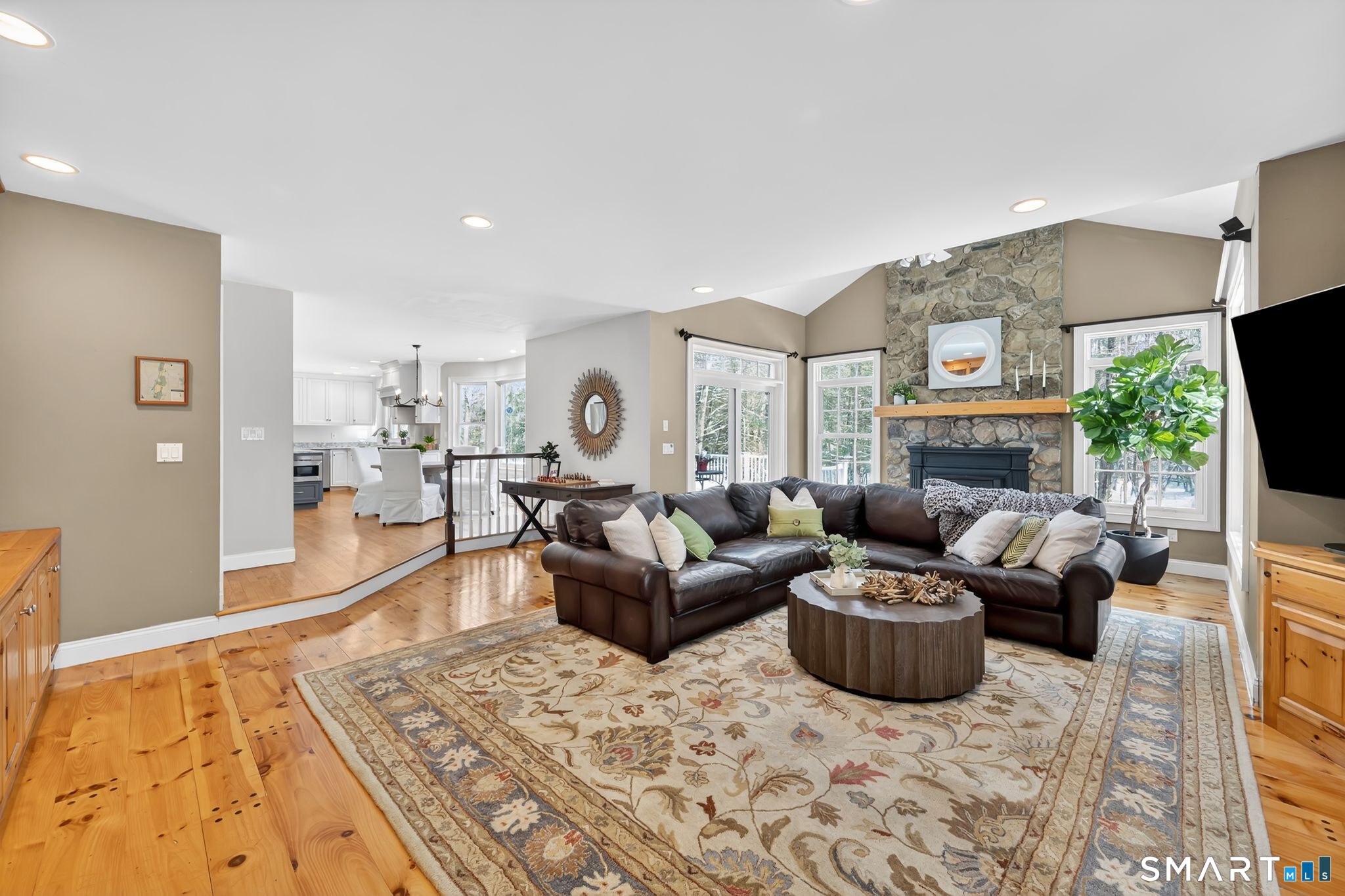 Rarely does a home strike the perfect balance between grand scale and cozy comfort-until now. Welcome to 12 The Glade, a brick and wood masterpiece nestled on a level, private lot in one of Simsbury's most desirable neighborhoods. This custom built home has been meticulously maintained, this residence invites you to recharge. The heart of the home is the updated designer kitchen, which flows seamlessly into an expansive living room anchored by floor-to-ceiling bookshelves and a magnificent stone fireplace. Entertain with ease using the dedicated beverage center or retreat to the covered three-season porch to enjoy views of the yard and lush woods with stream. Practicality meets luxury with a smartly designed mudroom/laundry suite. Upstairs, the large primary retreat features a versatile bonus space-ideal for an office, exercise/yoga -plus a spa-like bath and walk-in closet. Three additional bedrooms and two full baths and a massive media/music room complete the upper level. Situated on 1.5 acres and surrounded by hiking trails (West Mountain Trails system) and access the Mclean nature preserve. This is one home that can provide that sanctuary with all the updated amenities one hopes for. Simsbury is an award winning community with highly rated schools and a vibrant downtown center. Easy access to Bradley International airport. A special home in a very special place...The Glade!