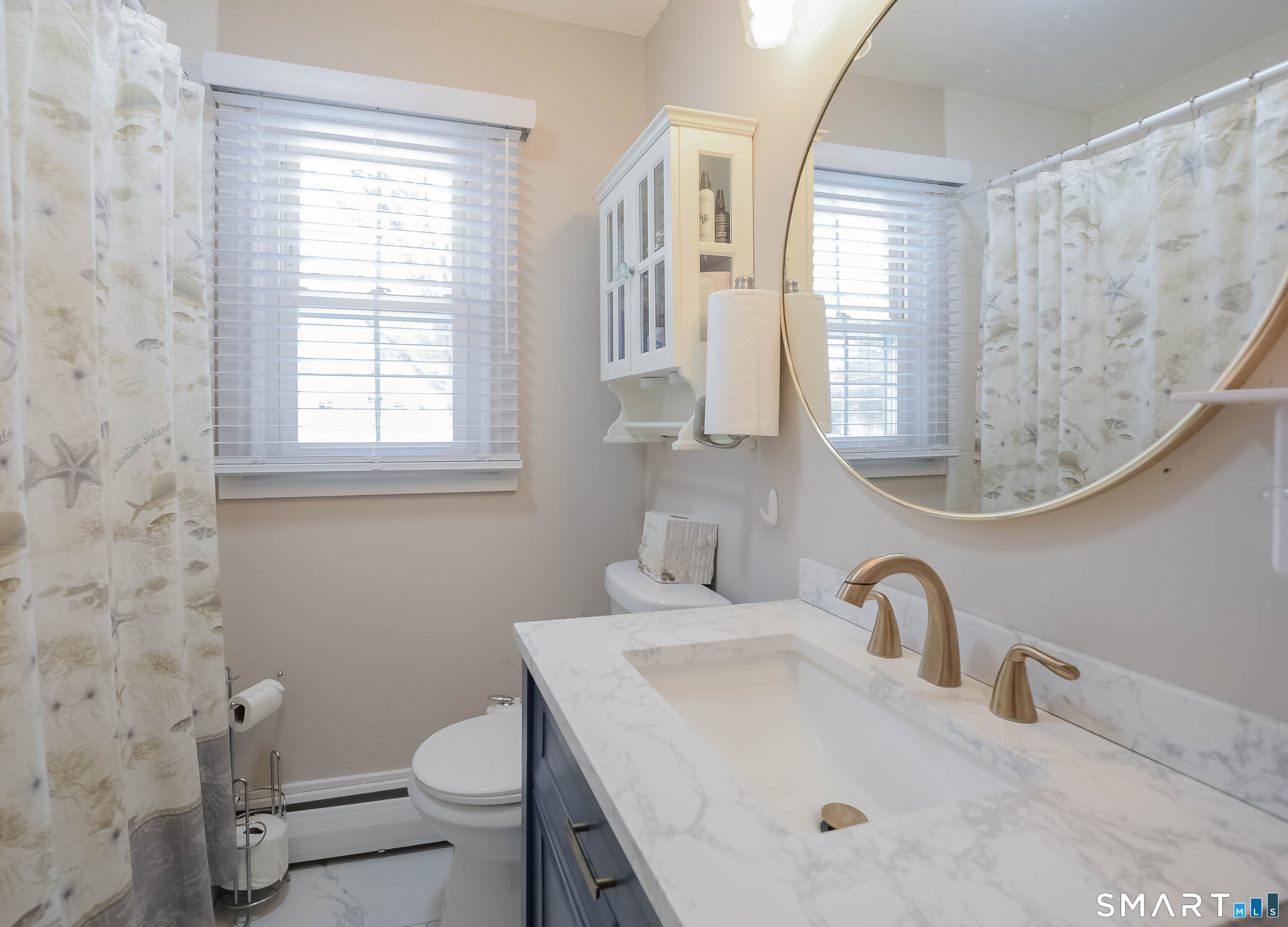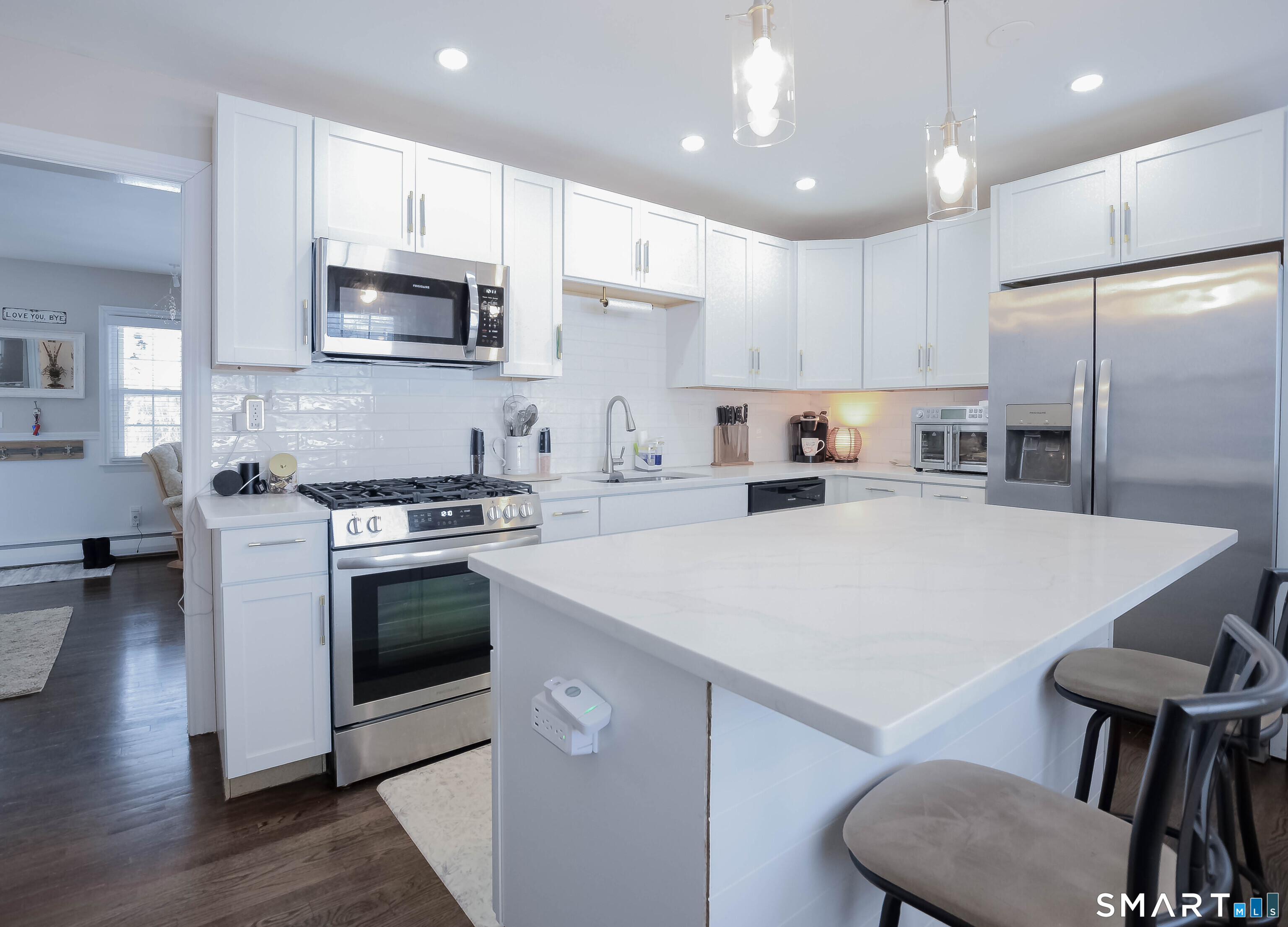 Step into this beautifully remodeled ranch-style home offering a flexible layout currently with 2 spacious bedrooms in the desirable Morris Cove neighborhood. Dining room can be converted back to a third bedroom. The show-stopping kitchen serves as the heart of the home, featuring brand-new cabinetry, a large center island, elegant quartz countertops, and stainless steel appliance, perfectly designed for both everyday living and entertaining. Gleaming hardwood floors flow throughout, adding warmth and sophistication. This home offers 1.5 updated baths and the convenience of a main-level washer and dryer one-unit combo. Enjoy outdoor living on the newer backyard deck or relax on the inviting front porch with low-maintenance Trex flooring. The expansive, open basement provides abundant storage and endless potential. With a new roof and landscaped front yard, this move-in ready home blends modern updates with timeless charm. Ideally located within walking distance to Fort Hale Park, the fishing pier, schools, and public transportation and just minutes from beaches, Yale, and I-95 and I-91. This home offers both comfort and convenience in one exceptional package.