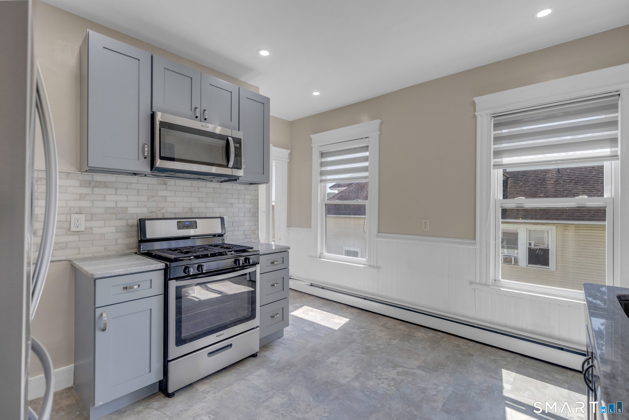 Welcome to this beautifully maintained and updated, light-filled multi-family home offering flexible living space and modern improvements throughout. Vinyl siding and insulated windows are in excellent condition, and three modern instant hot water heaters add efficiency and convenience. The first floor features a bright living room with a bay window, dining room, updated kitchen, modern bath, and hardwood floors. The second floor offers a similar layout with a living room with bay window, dining room, updated kitchen with granite countertops and stainless steel appliances, refinished hardwood floors, and an updated bath. The finished third floor provides additional living space and includes a full bath. The property is close to vibrant downtown amenities and offers an easy commute to major highways. Second floor to be vacate. A must see!
