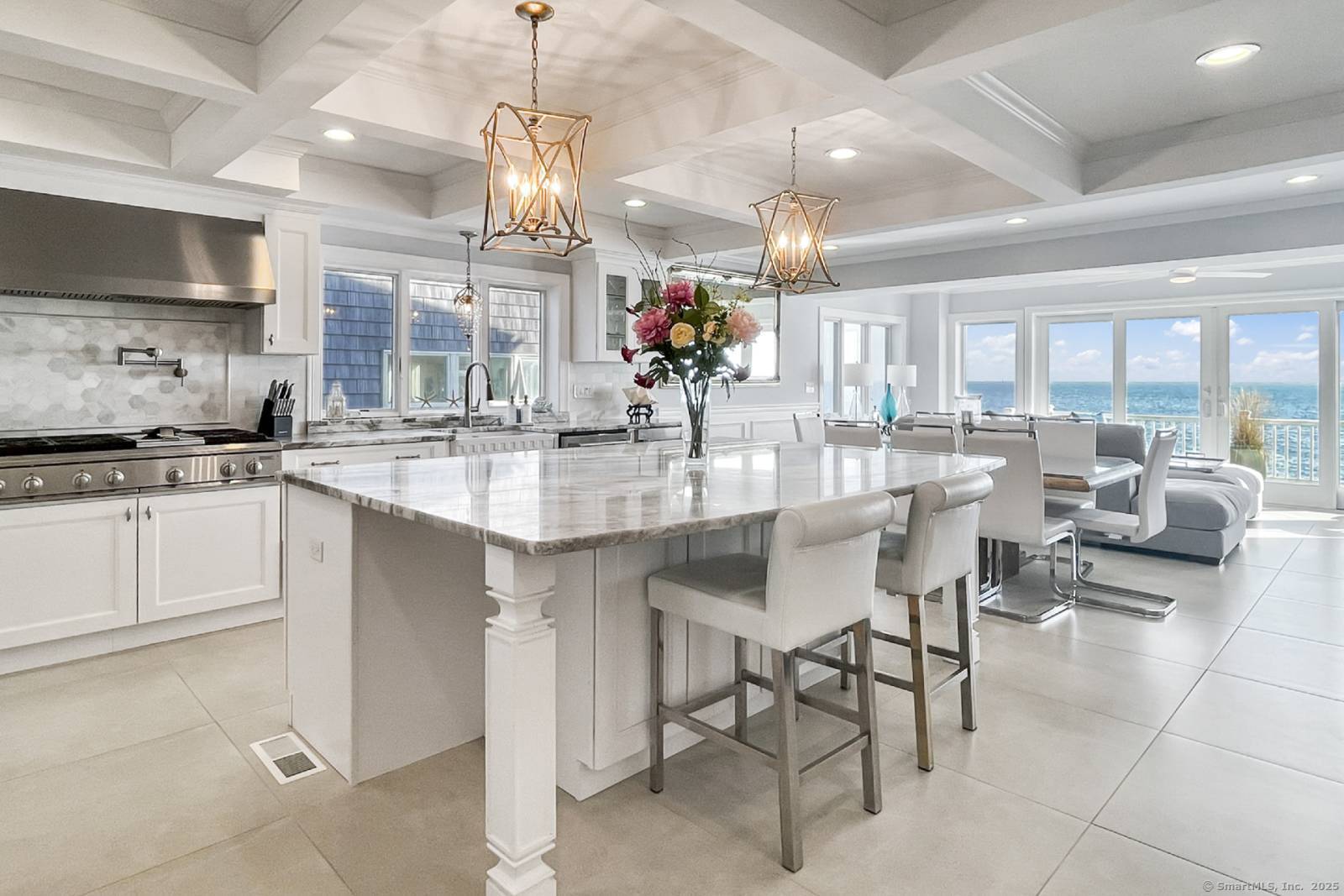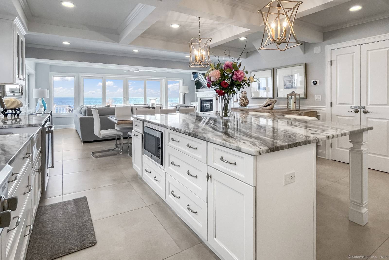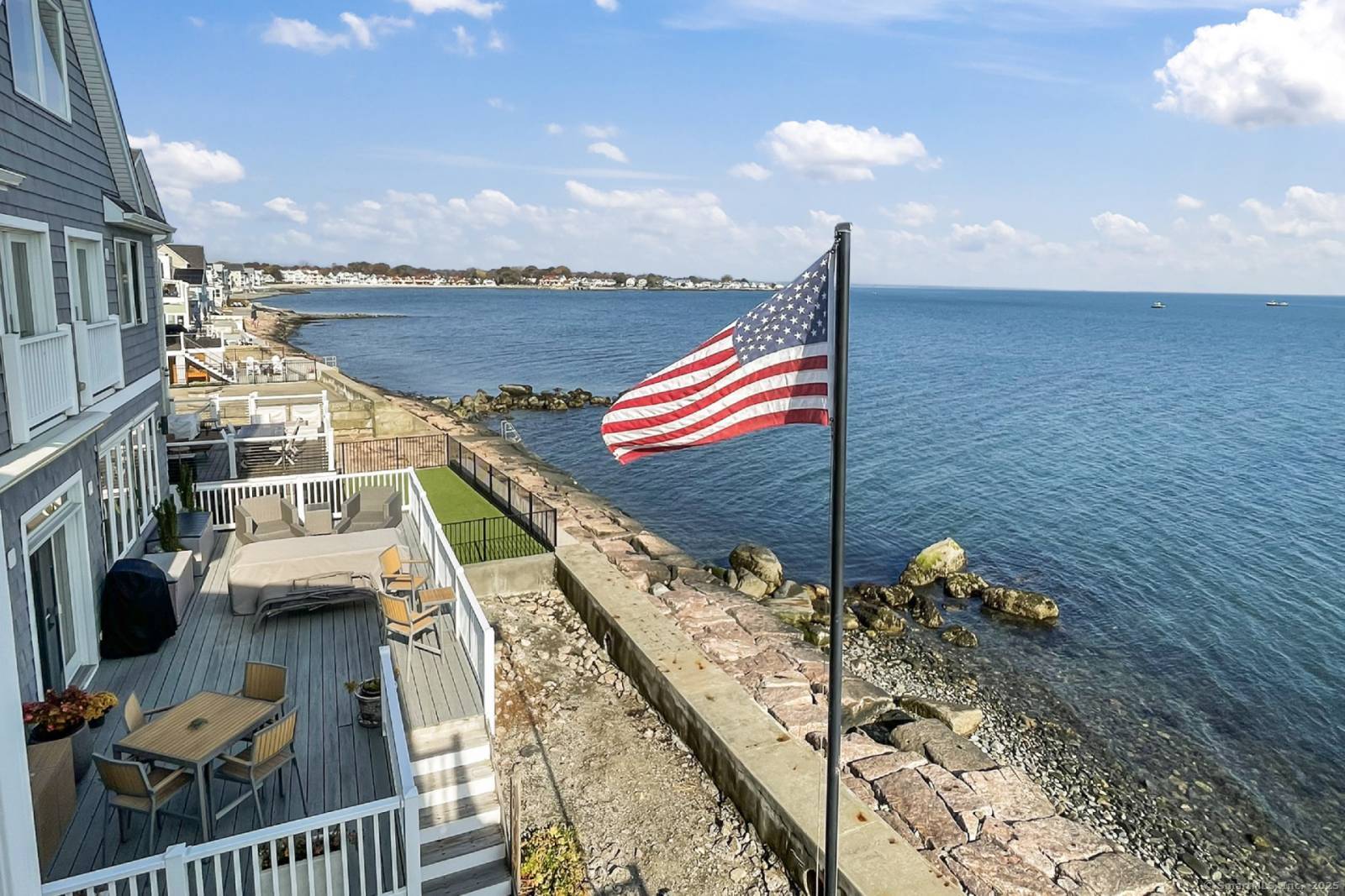 Direct Waterfront - Long Island Sound | Available June 1st Enjoy breathtaking sunrises and sunsets from this custom direct waterfront home overlooking Long Island Sound. From the moment you open the front door, you are greeted with stunning water views and a bright, open floor plan. The chef's kitchen features top-of-the-line GE Monogram stainless steel appliances, granite countertops, and an expansive center island with seating for six. Flow seamlessly into the dining area and spacious living room, highlighted by a HeatGlo gas fireplace and double sliders that open to a Trex deck-perfect for entertaining or simply relaxing while taking in the panoramic views. Upstairs, the waterfront views continue, providing a serene retreat. This home combines luxury and comfort, offering the ultimate coastal lifestyle. Has to be rented furnished