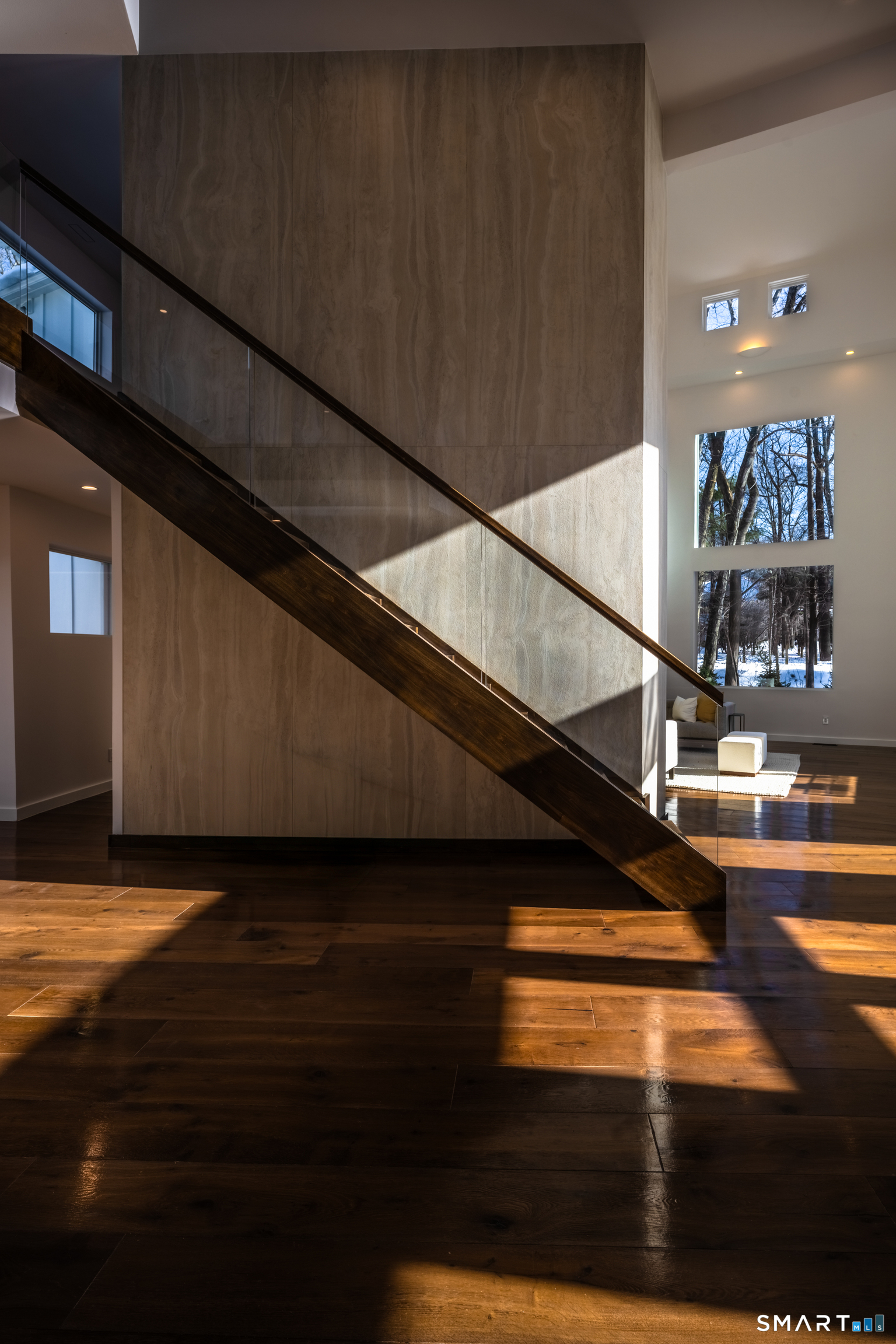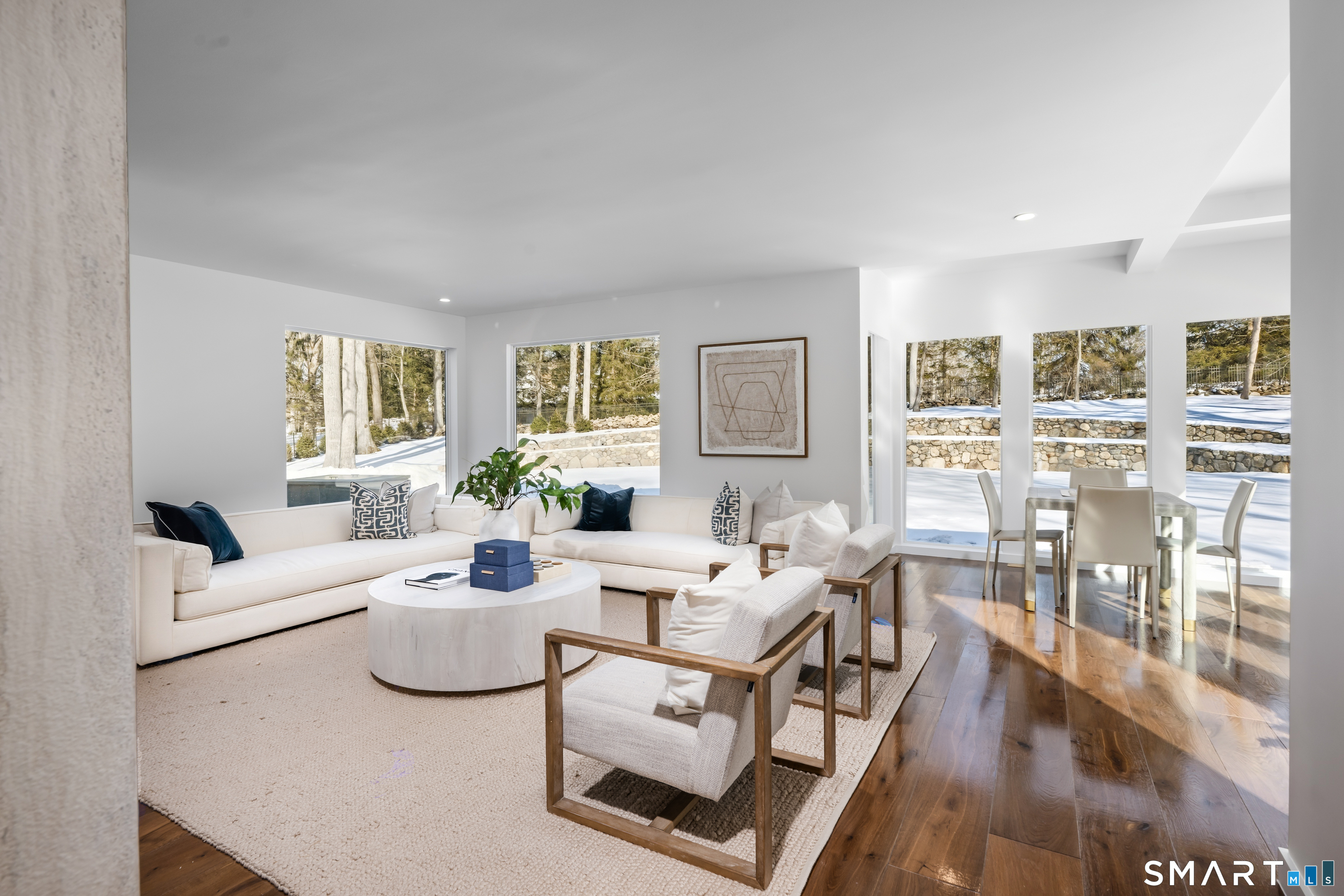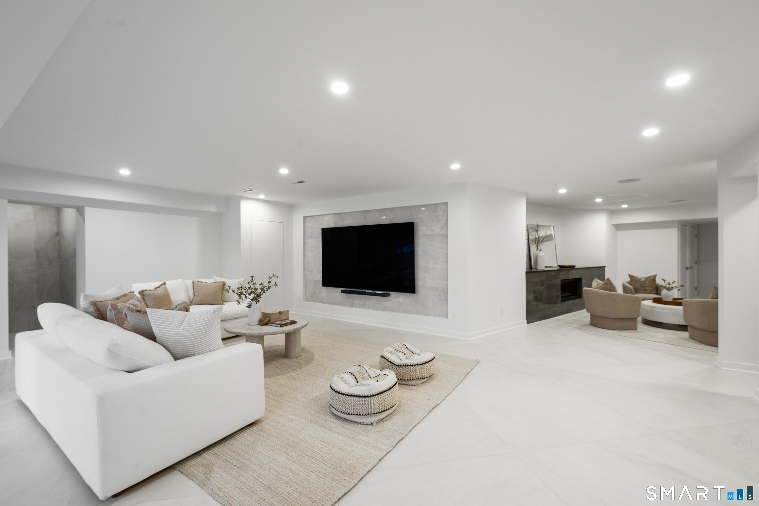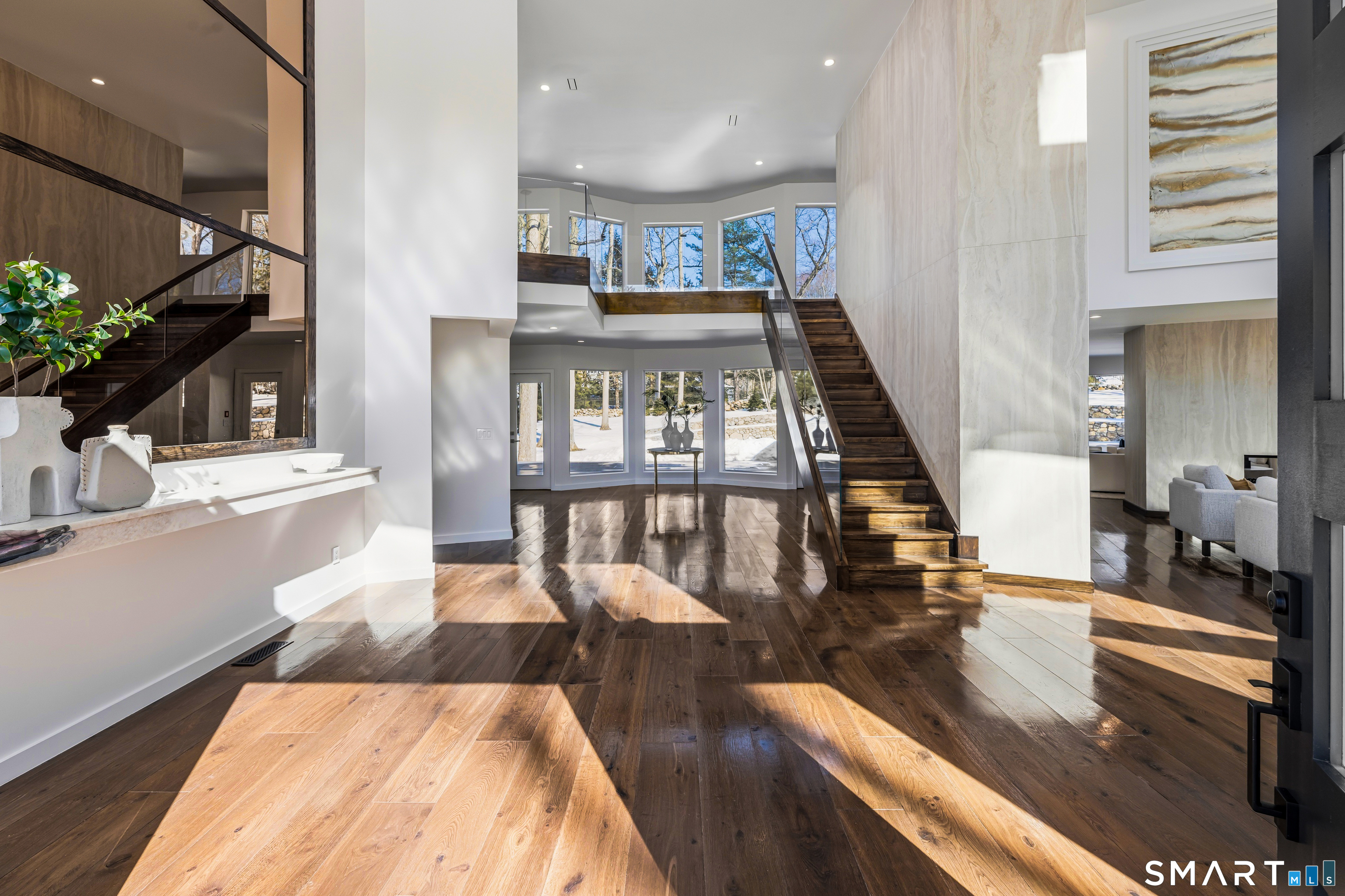 Set within The Ridge in Greenfield Hill, Fairfield's gated residential community, this residence originally designed by renowned architect Bill Blanski has been completely rebuilt and thoughtfully reimagined with the scale and finish of new construction. Spanning over 7,500 square feet, the home offers four bedrooms and six full and two half baths, with wide plank oak floors, multiple fireplaces, and expansive windows that frame tranquil pond views. A double height foyer with floating staircase introduces sunlit living spaces that move naturally from formal rooms to a chef's kitchen appointed with double Sub-Zero and Wolf appliances, quartzite surfaces, and a built-in bar adjoining the family room, while a main level suite provides flexibility for guests or a private office. Upstairs, the primary suite features vaulted ceilings, a fireplace, walk-in closets, and dual marble baths with heated floors, accompanied by two additional en suite bedrooms and a laundry room. The walkout lower level offers additional living space with a fireplace, kitchenette, wine room, full bath, and flexible areas for guests, work, or recreation. Exterior stonework, a metal roof, terraces with fire pit and built-in grill, smart home technology, generator, and all new systems complete the property, with community amenities including a staffed gatehouse, clubhouse, pool, tennis courts, and private roads minutes from Fairfield and Westport town centers, area beaches, and rail access to NYC!